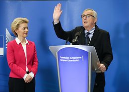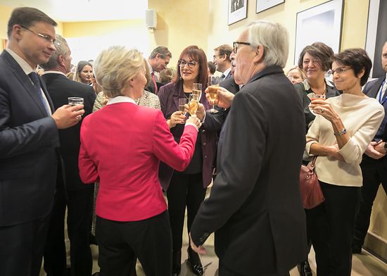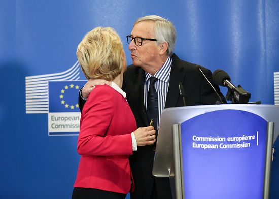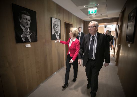 "Niemand hat sich mehr um Europa gekümmert als du", sagte die neue EU-Kommissionspräsidentin Ursula von der Leyen zu ihrem Vorgänger Jean-Claude Juncker und zeigt dem Luxemburger. wie die Chefetage unter ihr nun ausschaut.