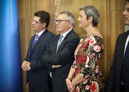 Auch die Kommissare Nicolas Schmit, früher Minister unter Jean-Claude Juncker, und Margrethe Vestager waren bei der Amtsübergabe dabei.