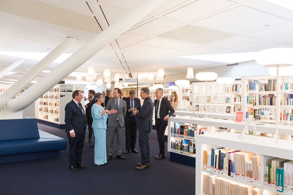 Monique Kieffer, Direktorin der Nationalbibliothek, erwähnte den Paradigmenwechsel – weg von der ehemaligen Magazinbibliothek, hin zu den offenen und frei zugänglichen Bücherschränken und Regalen. Dabei betonte die Direktorin, ihre Institution mit 21 000 eingeschriebenen Nutzern sei nicht allein den Eliten vorbehalten, sie richte sich an alle Bewohner dieses multikulturellen Landes.