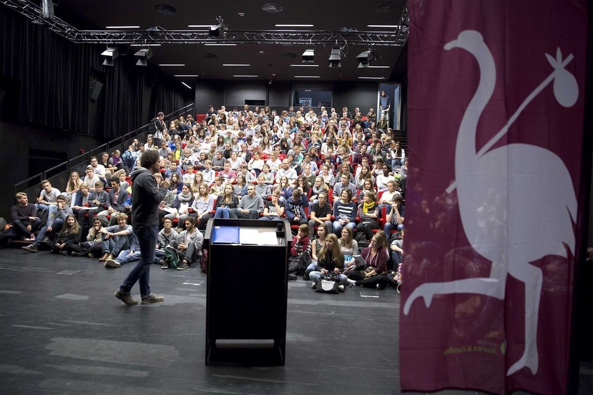 Das besondere Zusammentreffen fand im Festsaal des Lyzeums statt. Paul Galles, Verantwortlicher von „Young Caritas“, führte die Schüler an die Flüchtlingsthematik heran – ohne sie jedoch umfassend darzustellen, was verständlicherweise den knappen zeitlichen Rahmen gesprengt hätte.