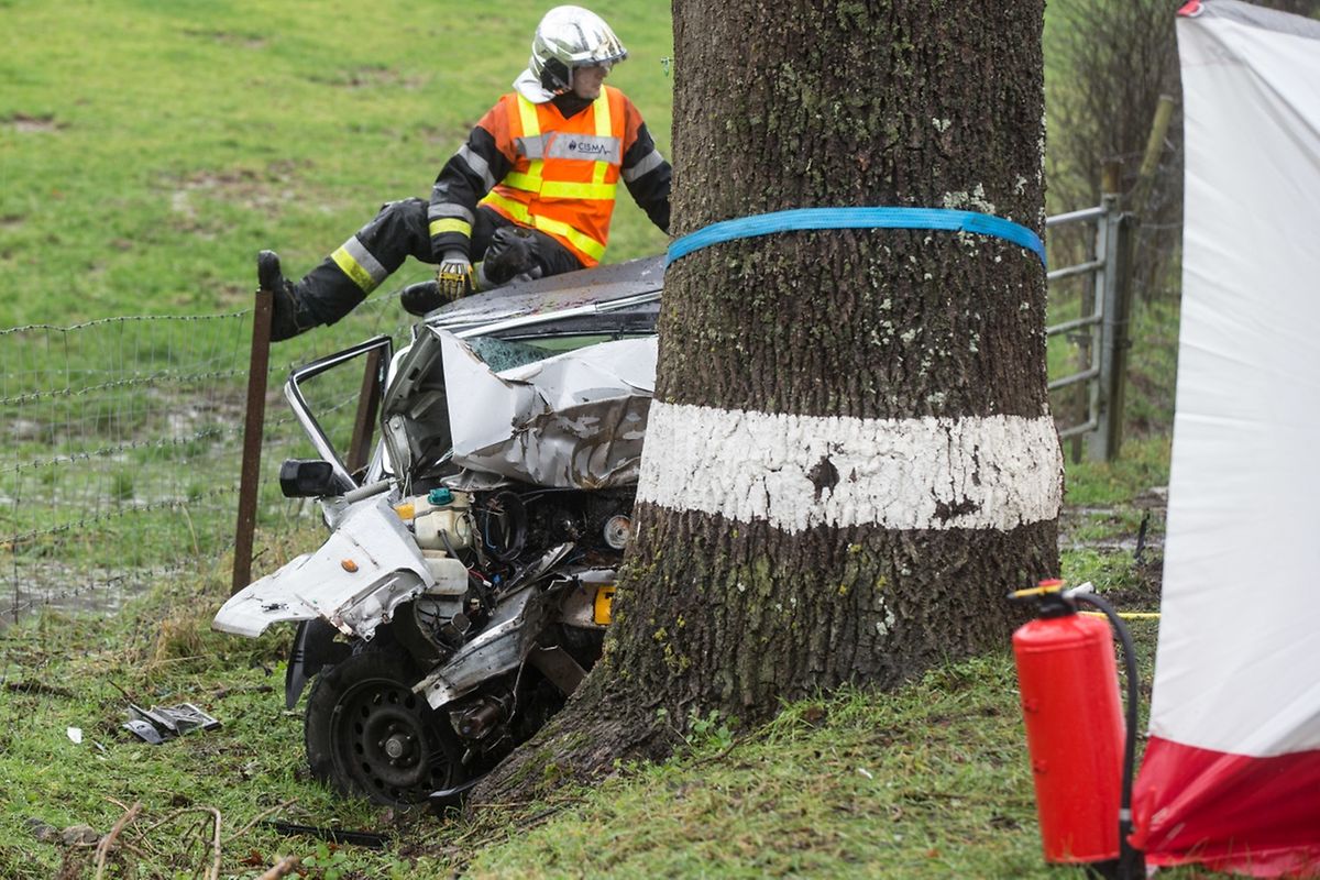 Ein Auto prallte gegen einen Baum, der Fahrer überlebte den Unfall nicht. Luxemburg zählt somit leider den ersten Verkehrstoten im Jahr 2018.