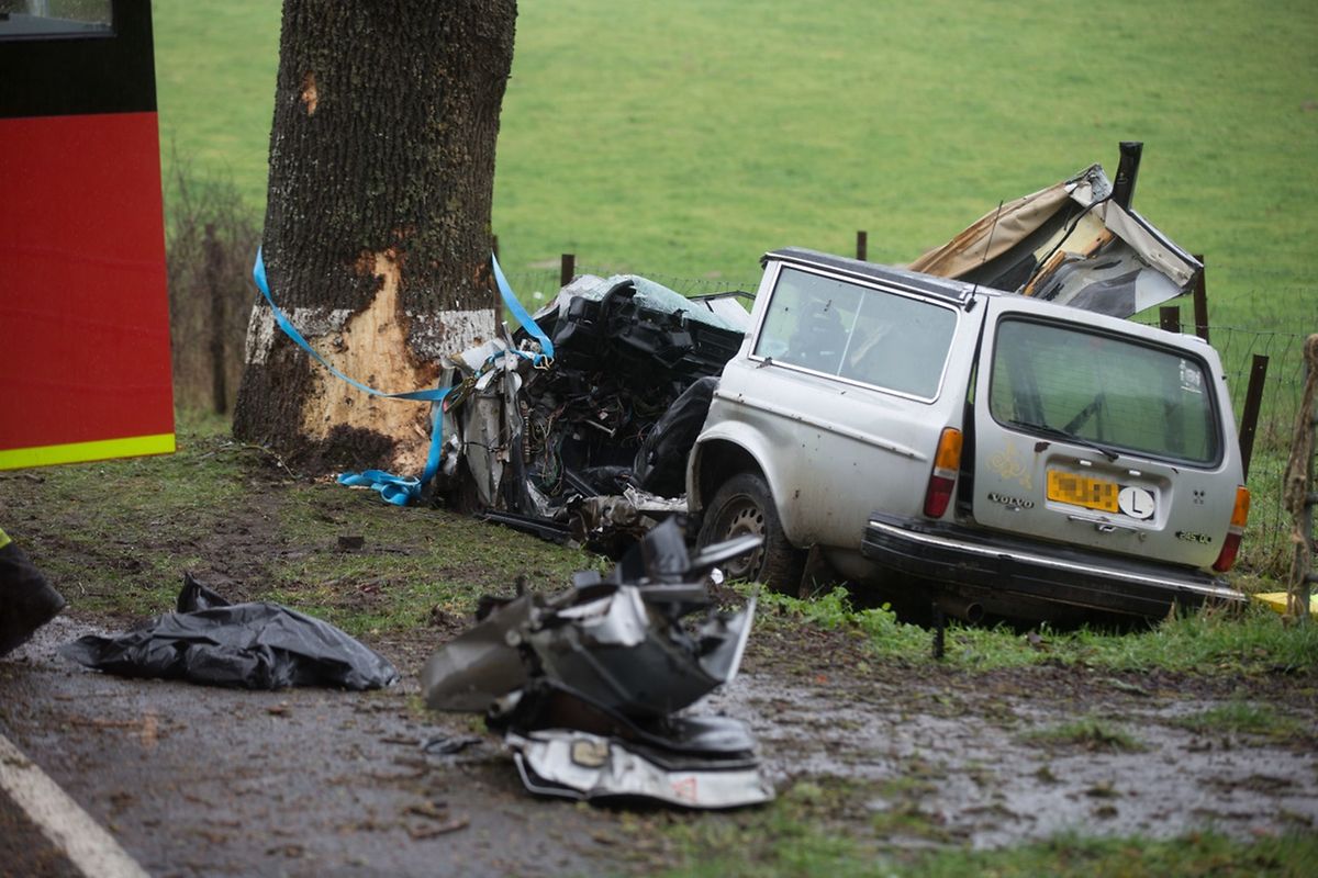 Laut Polizei war das Auto auf der N12 aus der Richtung Bour unterwegs und kam in einer Linkskurve, aus bisher unbekannter Ursache, von der Straße ab. Das Fahrzeug prallte frontal gegen einen Baum.