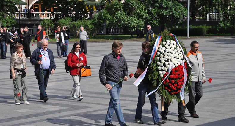 Am Freitagmorgen haben die Eurobiker sich vor dem Grab des unbekannten Soldaten - am Fuß der Mauer des Kreml - gelegen versammelt. Nach der Wachablösung legten die Präsidenten des russischen und des luxemburgischen Motorradverbandes einen Blumenkranz nieder.