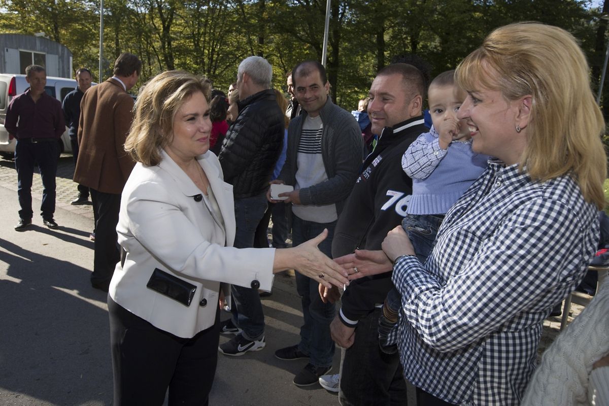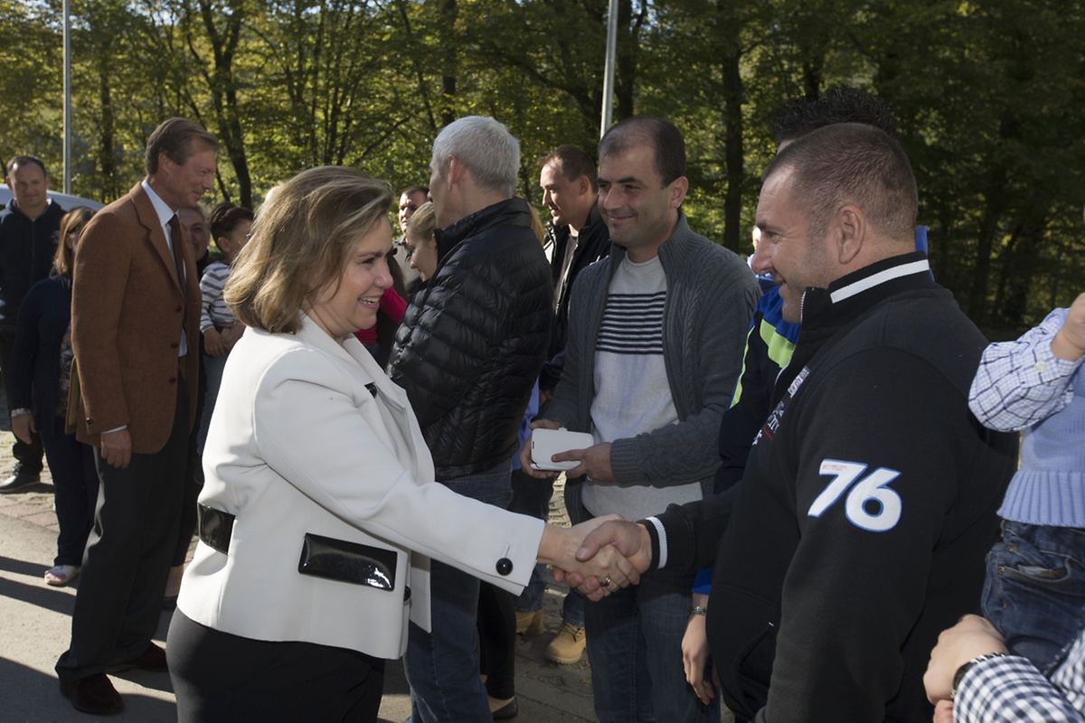 (rr) - Rund 120 Flüchtlinge aus Syrien und den Balkanländern (Kosovo, Albanien, Bosnien-Herzegowina, Montenegro und Serbien) sind derzeit im „Foyer Marienthal“ untergebracht. Am Freitagnachmittag erhielten sie Besuch von Großherzog Henri und Großherzogin Maria Teresa. Begleitet wurden sie von Integrationsministerin Corinne Cahen.