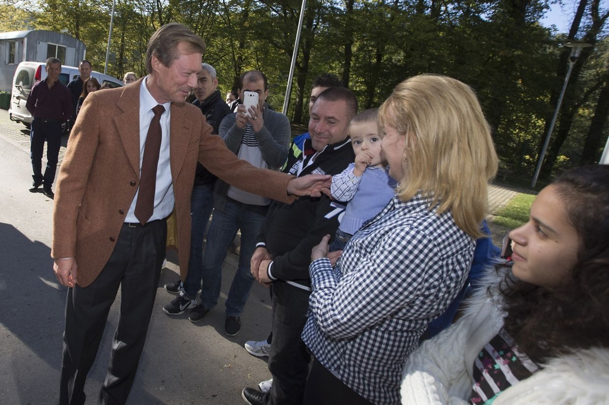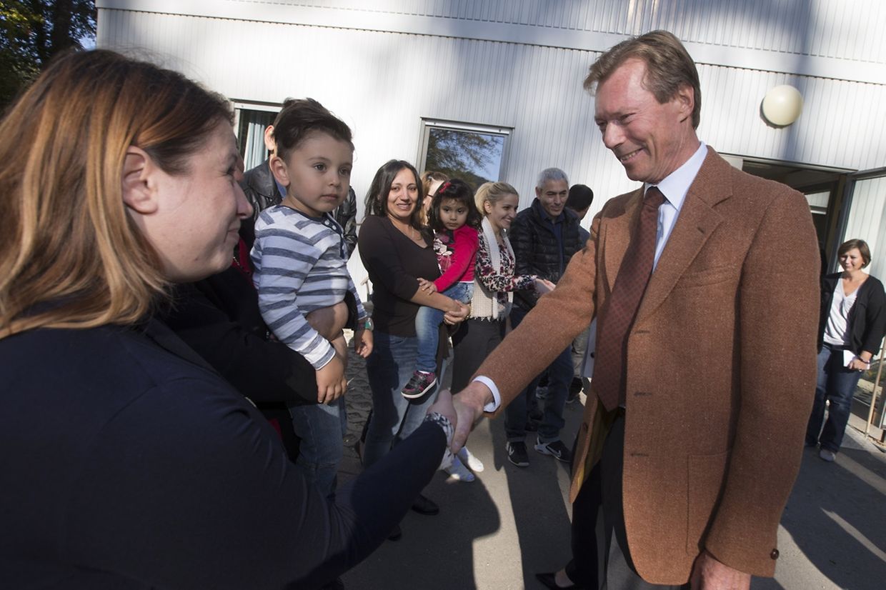 (rr) - Rund 120 Flüchtlinge aus Syrien und den Balkanländern (Kosovo, Albanien, Bosnien-Herzegowina, Montenegro und Serbien) sind derzeit im „Foyer Marienthal“ untergebracht. Am Freitagnachmittag erhielten sie Besuch von Großherzog Henri und Großherzogin Maria Teresa. Begleitet wurden sie von Integrationsministerin Corinne Cahen.
