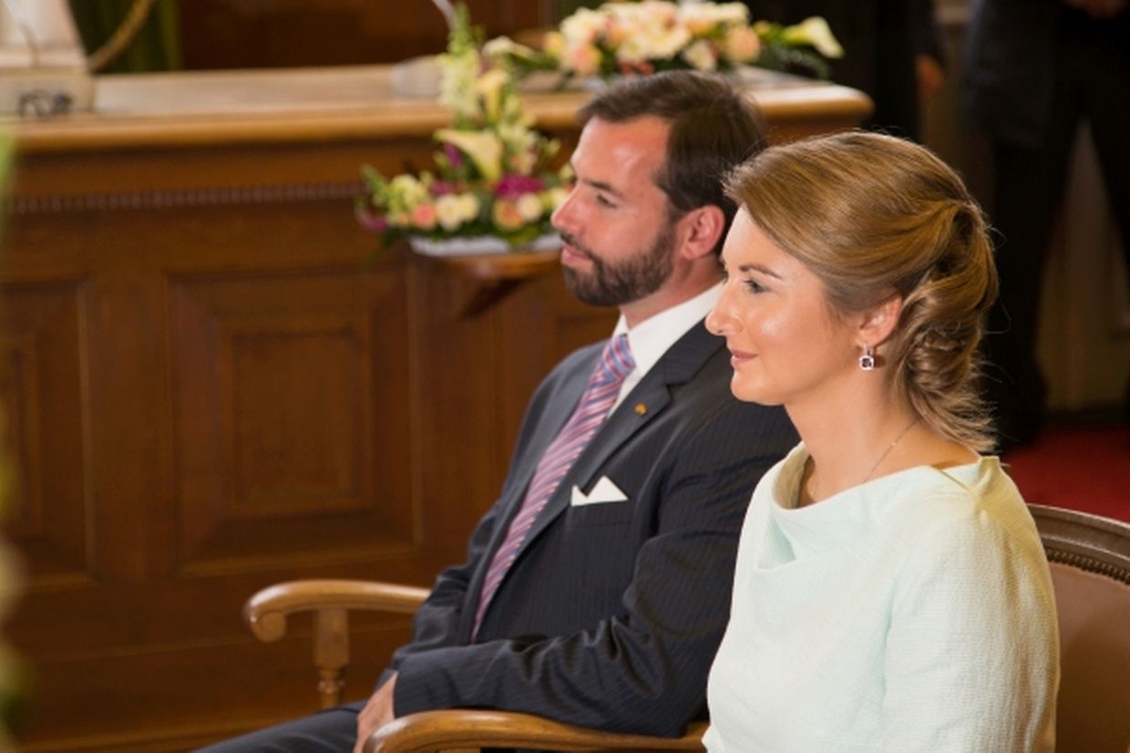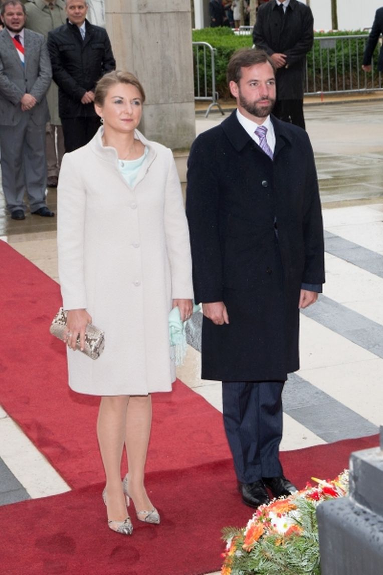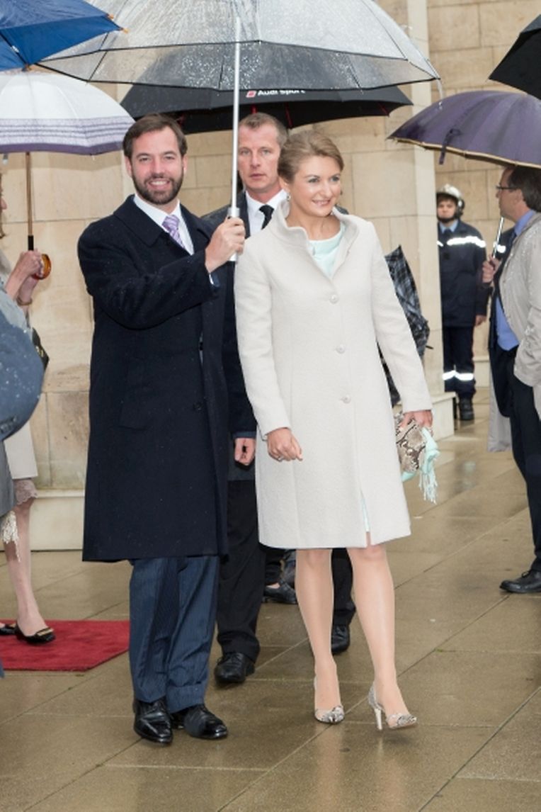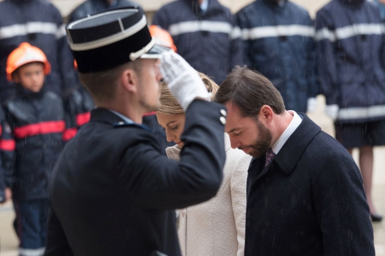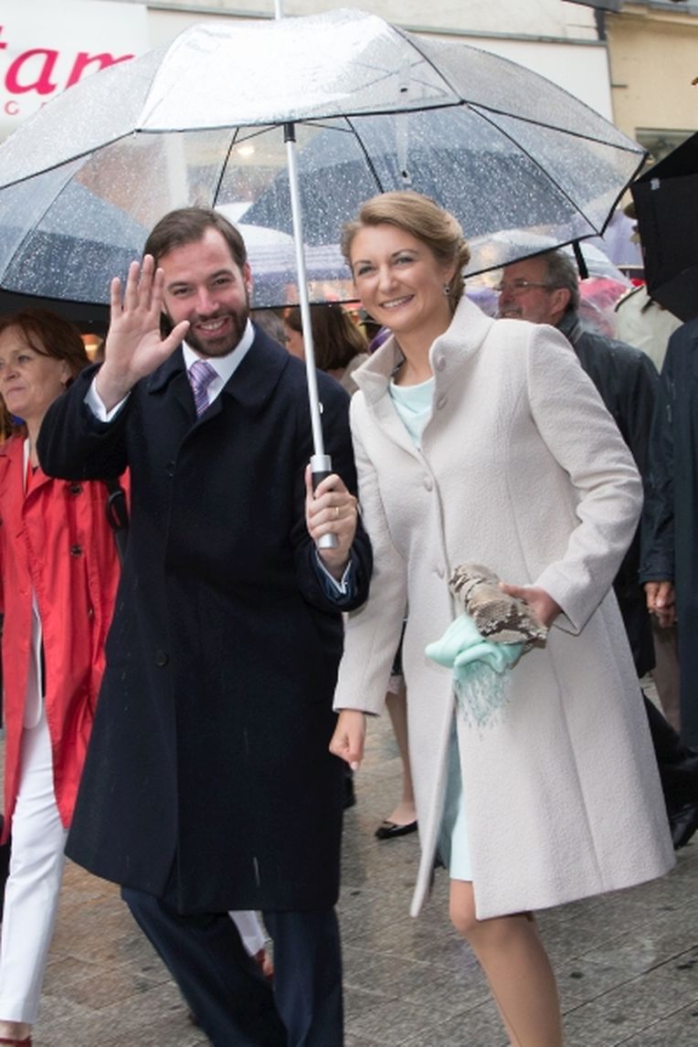 Nach ihrer Ankunft am Brillplatz legten sie beim Resistenzmuseum Blumen nieder. Wie gewohnt nahm sich das Paar viel Zeit, um Hände zu schütteln und ein Wort mit einigen der vielen Zuschauer auszutauschen. So dass der Gang bis zum Rathausplatz weitaus länger dauerte als die zwölf Minuten, die auf dem Fußgängerleitsystem angegeben sind. Vor dem Rathaus, schaute sich das sichtlich gut gelaunte Paar das Defilee der Escher Vereine an. War es bisher Tradition, dass die Stadt dem Paar ein Geschenk machte, so wurde letztes Jahr entschieden, stattdessen eine Spende an eine karitative Vereinigung aus Esch/Alzette zu überreichen. Nachdem Erbgroßherzog Guillaume und Prinzessin Stéphanie sich im goldenen Buch der Gemeinde eingetragen hatten, traten sie auf den Balkon des Rathauses, von wo aus sie den zahlreichen Menschen zuwinkten.