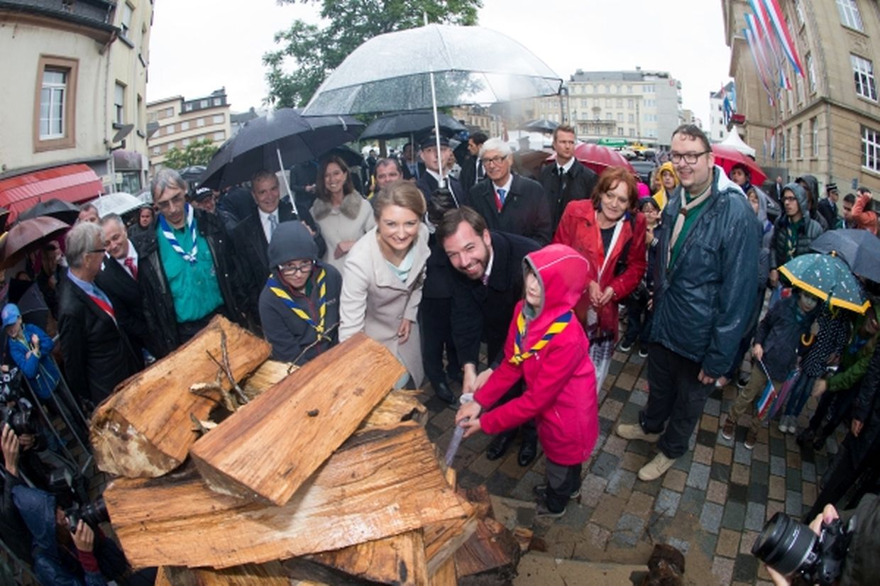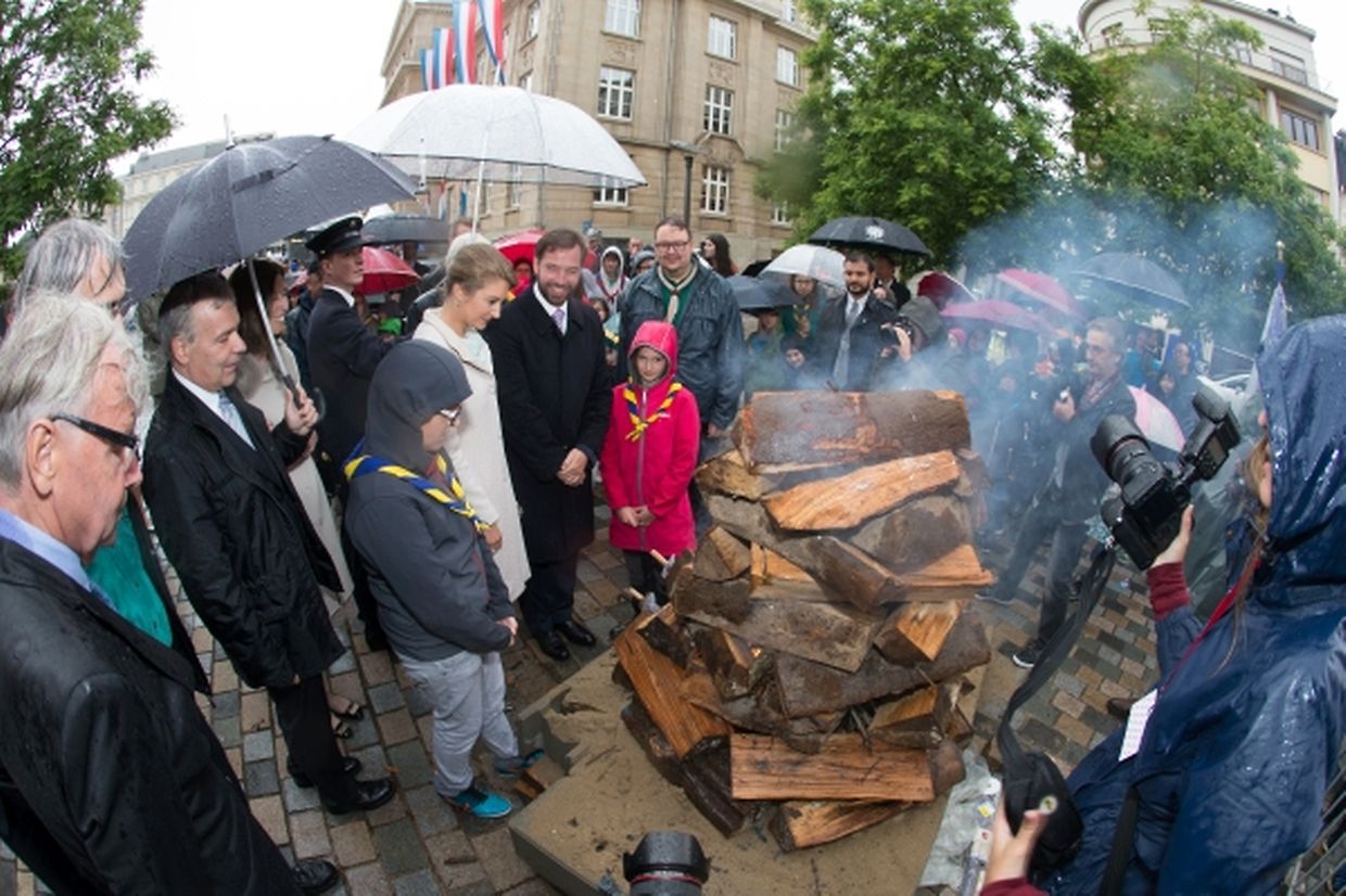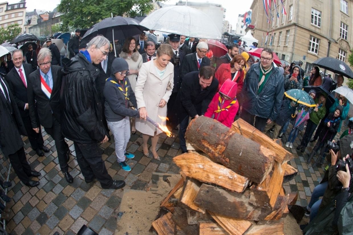 Danach nahmen sie ein Bad in die Menge und besuchten dabei die Stände Escher Vereinigungen auf dem Rathausplatz. Anschließend zündeten sie traditionsgemäß das Lagerfeuer an, bevor sie zu den Festlichkeiten in der Hauptstadt aufbrachen. In Esch/Alzette hatten zu diesem Zeitpunkt die Festlichkeiten für manche aber gerade erst begonnen. Und sollten noch bis spät in der Nacht andauern.
