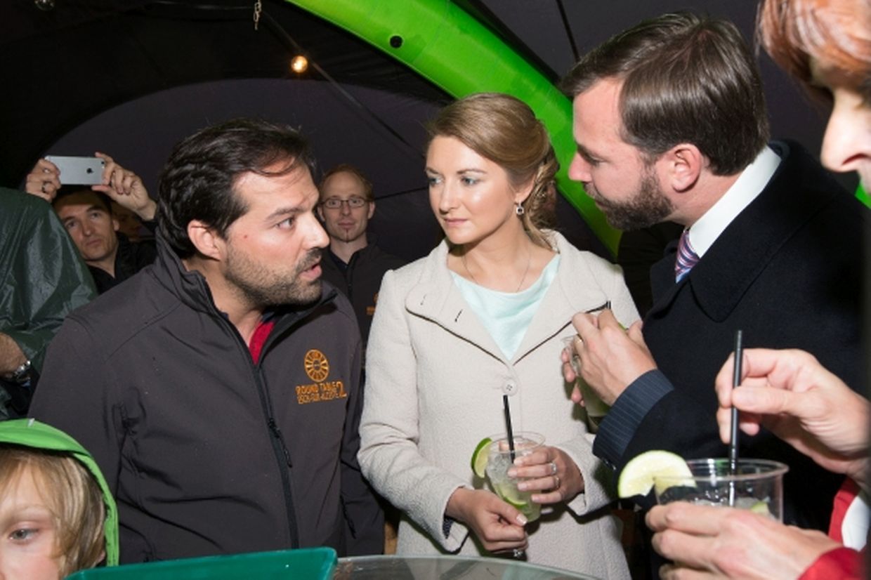 Mit Spannung wurden sie von den vielen Zuschauern erwartet. Um 17.30 Uhr war es dann endlich soweit: Die dunkle Limousine des großherzoglichen Paares fuhr vor. Empfangen wurden der Großherzog und die Großherzogin dort von Arbeitsminister Nicolas Schmit, der Wohnungsbauministerin und ehemaligen Mondorfer Bürgermeisterin, Maggy Nagel, und dem Mondorfer Bürgermeister Lex Delles.
