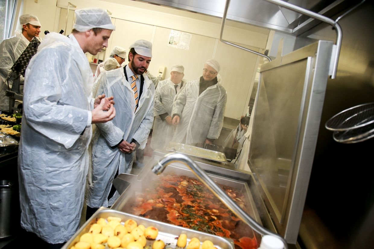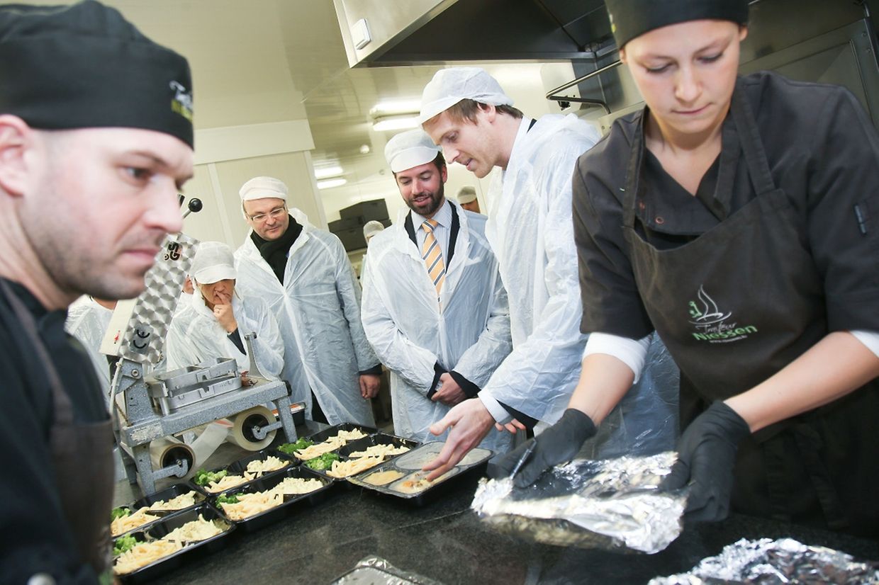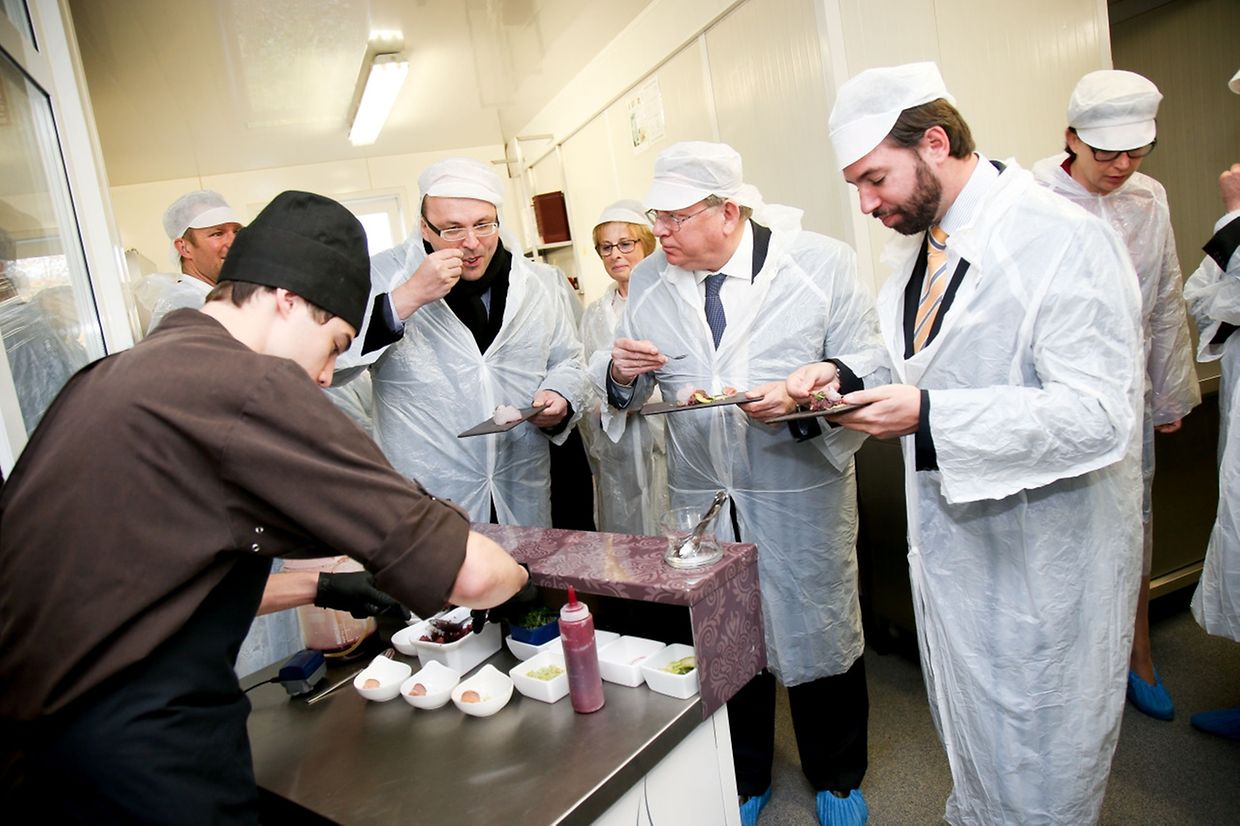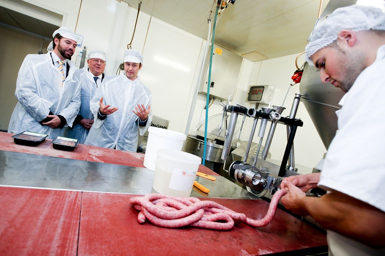 Der Erbgroßherzog wurde in Ulflingen von den beiden Inhabern des Familienbetriebs, Jean-Marie und Patrick Niessen, begrüßt und durch die modernen Anlagen geführt. In der Metzgerei erhielt er Erklärungen, wie die größtenteils aus der Region stammenden Schweine, Rinder und Lämmer zerlegt und das Fleisch für den Verkauf vorbereitet werden. In der Küche wurde ihm die Zubereitung der Tagesmenüs, Fertiggerichte und sonstigen Delikatessen gezeigt, bevor man zu einer Verköstigung überging.