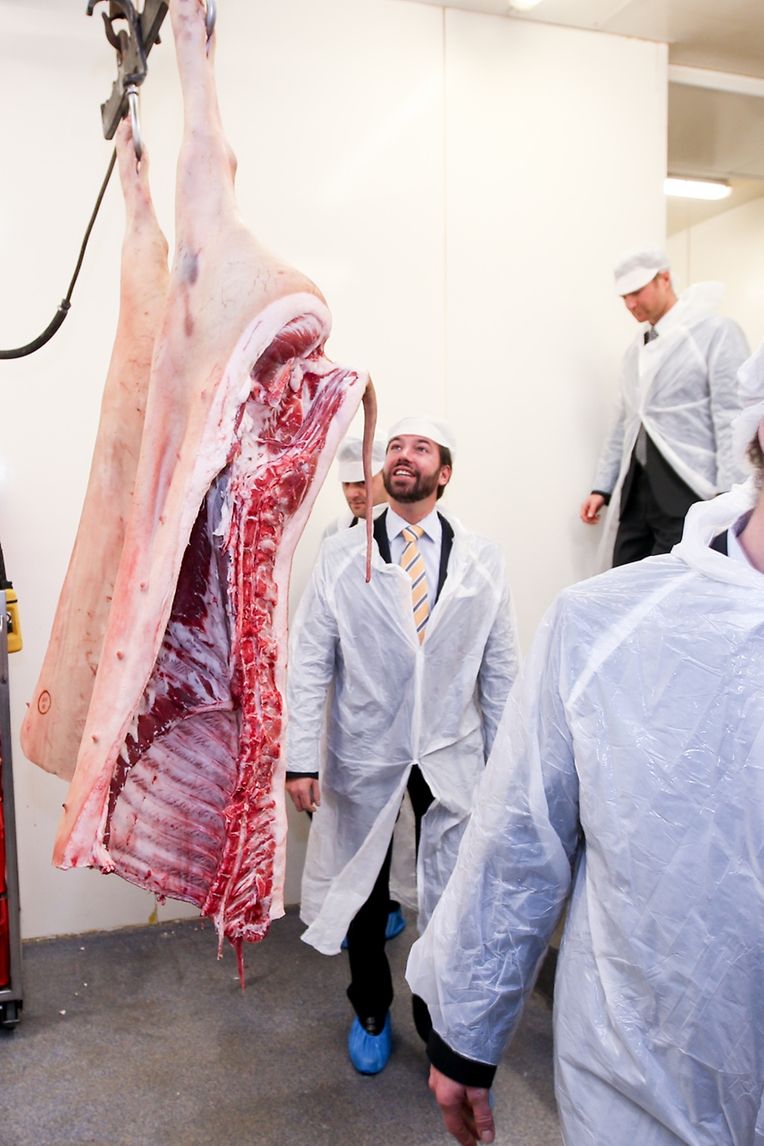 (TJ) - Erbgroßherzog Guillaume besuchte am Dienstagmorgen - auf den Tag genau drei Jahre nach seiner Hochzeit - mit der Metzgerei Niessen in Ulflingen einen mittelständischen Betrieb, der sich mit Bio-Produkten und regionalen Erzeugnissen in etwas mehr als 30 Jahren einen Namen aufgebaut hat. Damit standen für anderthalb Stunden in "hohen Norden" für einmal nicht die zahlreichen Fleischprodukte im Mittelpunkt der beiden Metzger, sondern der hohe Besuch.