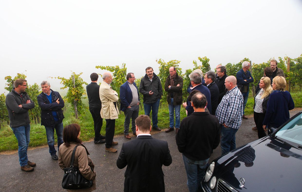 (if) - Traditionsgemäß stattet der Weinbauminister jedes Jahr während der Traubenlese den Winzern an der Mosel einen Besuch ab. Auch in diesem Jahr wurde an dieser Tradition nicht gerüttelt: Fernand Etgen informierte sich am Mittwoch bei einer Tour durch den Markusberg in Schengen und beim Besuch der Privatkellerei Krier-Bisenius in Bech-Kleinmacher über den Stand der Lese und die Traubenqualität.