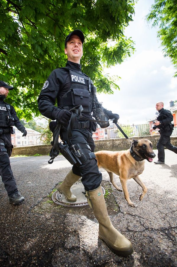 „Die Polizisten draußen im Einsatz wissen lediglich, dass es sich um eine groß angelegte Übung handelt. Sie kennen das Szenario aber nicht“, so Daniel Agostini, Kommandant der UGRM – Unité de Garde et de Réserve Mobile. Zu dieser Gruppe gehört auch die Hundestaffel. „Das bedeutet, dass sie wirklich vorgehen müssen, als sei es ein Ernstfall“, so Agostini weiter. „Realität und Übung liegen nahe beieinander.“