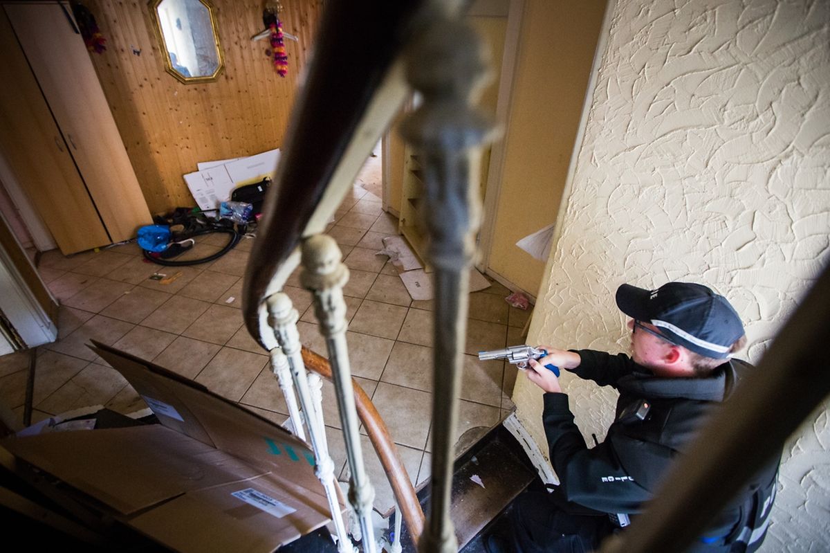 So oder so ähnlich könnten sich ein Überfall und die nachfolgenden Ermittlungen in der Wirklichkeit abspielen. Hier handelt es sich allerdings „nur“ um das Szenario eine Übung, bei der vor allem die Hundeführer und deren vierbeinige Gesellen gefragt sind. Beteiligt waren hauptsächlich Polizeieinheiten aus dem Kanton Esch.