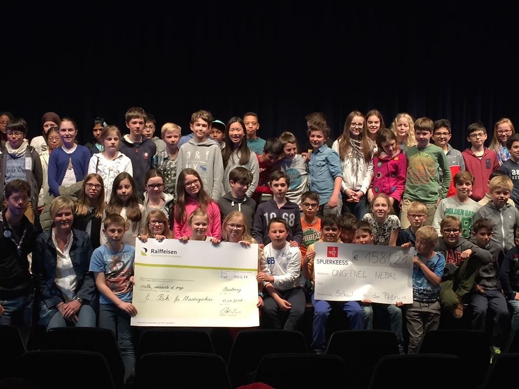 Ee grousse Merci ass un all d’Schüler, d’Elteren an un d’Enseignante gaangen, déi duerch dës Aktioun dozou bäidroen, datt méi Kanner op Madagaskar d’Méiglechkeet op eng schoulesch Ausbildung kréien.