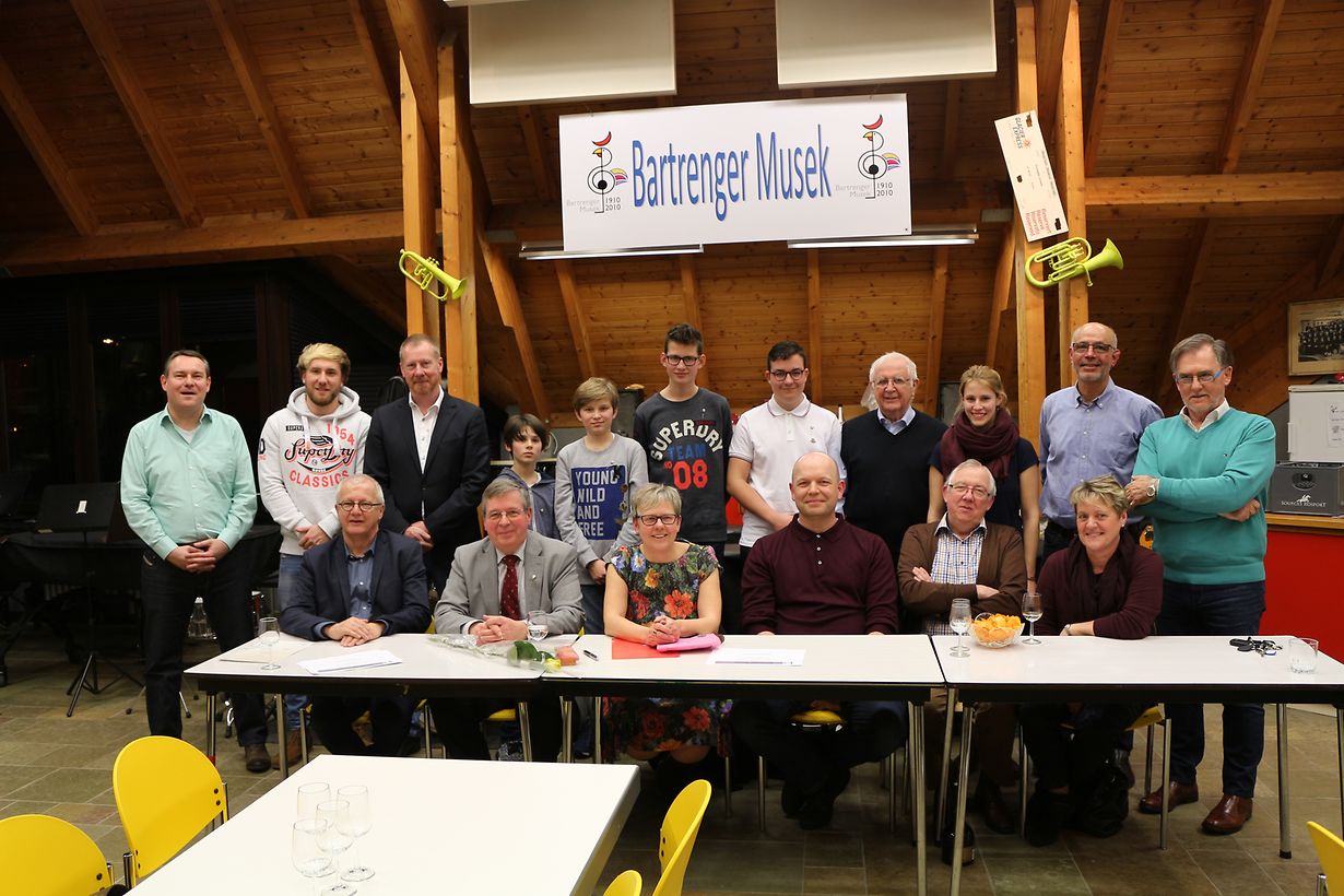 In ihrer sehr gut besuchten ordentlichen Generalversammlung ehrte die „Bartrenger Musek“ vor Kurzem unter großem Applaus ihre Sekretärin Romaine Caas für zehn Jahre aufopferungsvolle Arbeit mit einem passenden Geschenk. Romaine Caas war in diesen Jahren mit außerordentlicher Energie im Verein tätig und hat die organisatorischen Aufgaben, zusammen mit dem Dirigenten Claude Origer und den jeweiligen Vorstandsmitgliedern, hervorragend gemeistert. Sie gibt den Sekretariatsposten jetzt ab, bleibt jedoch weiterhin Mitglied des Vorstandes, zu dem ebenfalls Roger Even (Ehrenpräsident), Marie-France Bemtgen-Jost, Jessy Krier, Carlo Lux, Jang Nicolai, Niki Wagner und Guy Weirich gehören. Als Vertreter der UGDA überreichte Emile Krier das „Insigne“ für fünf Jahre Engagement an folgende Mitglieder: Nicolas Boulot Haagen, Ben Kuffer, Tom Kuffer, Baptiste Le Goff, Gianluca Martins, Tom Scheer, Guillaume Schmidt und Guy Weirich. Nachdem Schöffe Patrick Michels die Glückwünsche der Bartringer Gemeinde überbracht und die Generalversammlung ihren Abschluss gefunden hatte, klang der Abend mit einer stimmungsvollen Agape in einem Bartringer Restaurant aus.