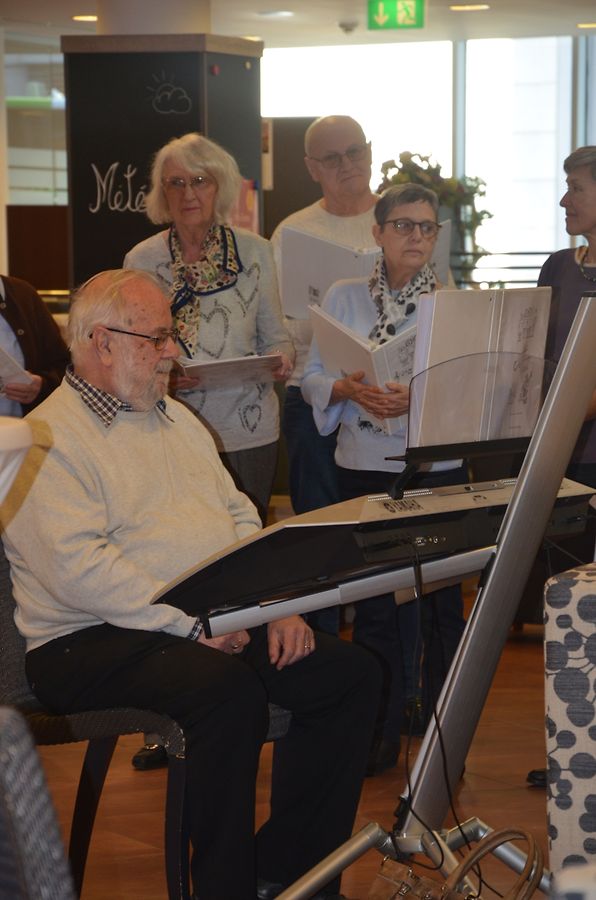 D’Sängerinnen an d’Sänger aus dem Becheler vu Bereldeng waren ageluede ginn fir ee klenge Concert ze sangen zu dem Vernissage vun der Biller-Ausstellung vum Josée Kandel-Kass, Aquarelle, an dem Léon Schweitzer , Akrilik. De Gesank, ënner der Leedung vum Jean Kandel an um Piano begleed vum Michel Winter hat Lëtzebbuerger Lidder um Programm an esou woar et net ee Concert ma éischter een „Zesumme sangen“. Bei „Dicksiana“, „Téiwesbuer“, „Kättche, Kättchen“ oder „Ech drénke gäer mäi Pättchen“ an anerer waren all Bewunner an hir Famill a Frënn hell begeeschtert an hunn häerzhaft gelaacht iwwer d’Witzen vum Jean Kandel. Och manner bekannt Lidder, wéi „ de Wäimarsch“, „Am Himmel soll et schéi sinn“ an „d’Becheler-Lidd“ si mat vill Applaus belueft ginn. Ee klengen „Tapéitewiessel“ fir d’Aen an d’Oueren huet de Bewunner vun „Elisabeth am Park“ gutt gedon, a bei engem gudde Pättchen hu mir nach eng Weilchen zesumme gesiess a gepotert !