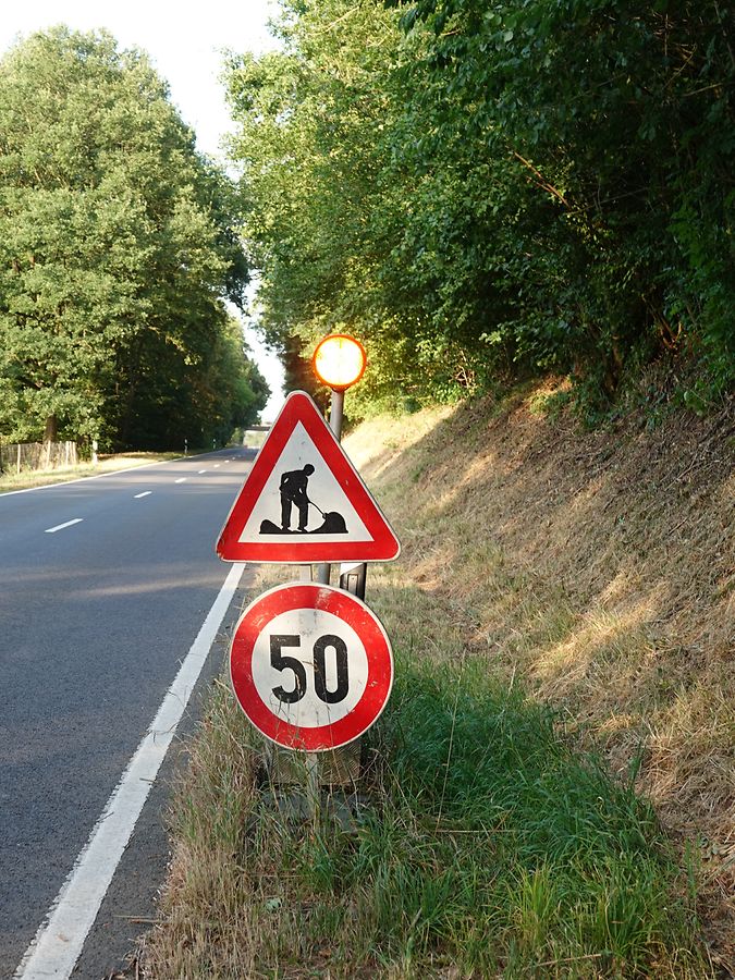 Etwa einen Kilometer oberhalb des Ortsendes von Erpeldingen an der Sauer zur Zone d'activités ZANO steht seit längerer Zeit das Verkehrsschid D,1a, laut Code de la route "Vorgeschriebene Fahrtrichtung", Auf dem Rücken des Schildes steht der Name eines Bauunternehmers. An diesem Schild fahren tagtäglich bei glühender Hitze unzählige Fahrzeuge vorbei, Poiizeiwagen, Ambulanzen, Linienbusse und Lkws. Zum Glück missachten alle dieses falsche Schild, (durch eine dichte Staubwolke hindurch) sonst würde die Fahrt abrupt in einer Wiese oder gär in der einspurigen Abfahrt vom SIDEc in Richtung Erpeldingen an der Sauer. Ein schlimmer Frontalcrash wäre die Folge.