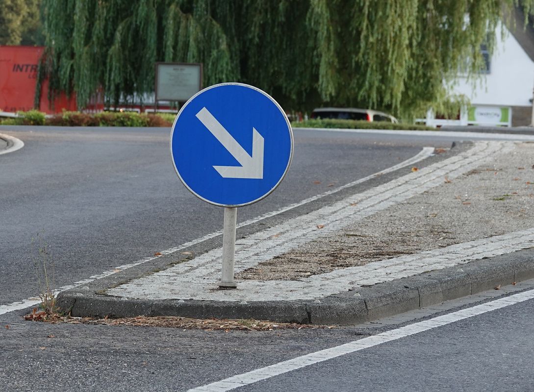 .Da gehört möglichst schnell das Verkehrszeichen D,2 hin (schräger Pfeil mit Spitze nach unten).