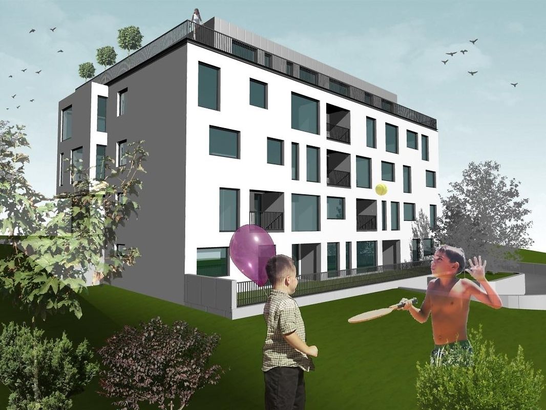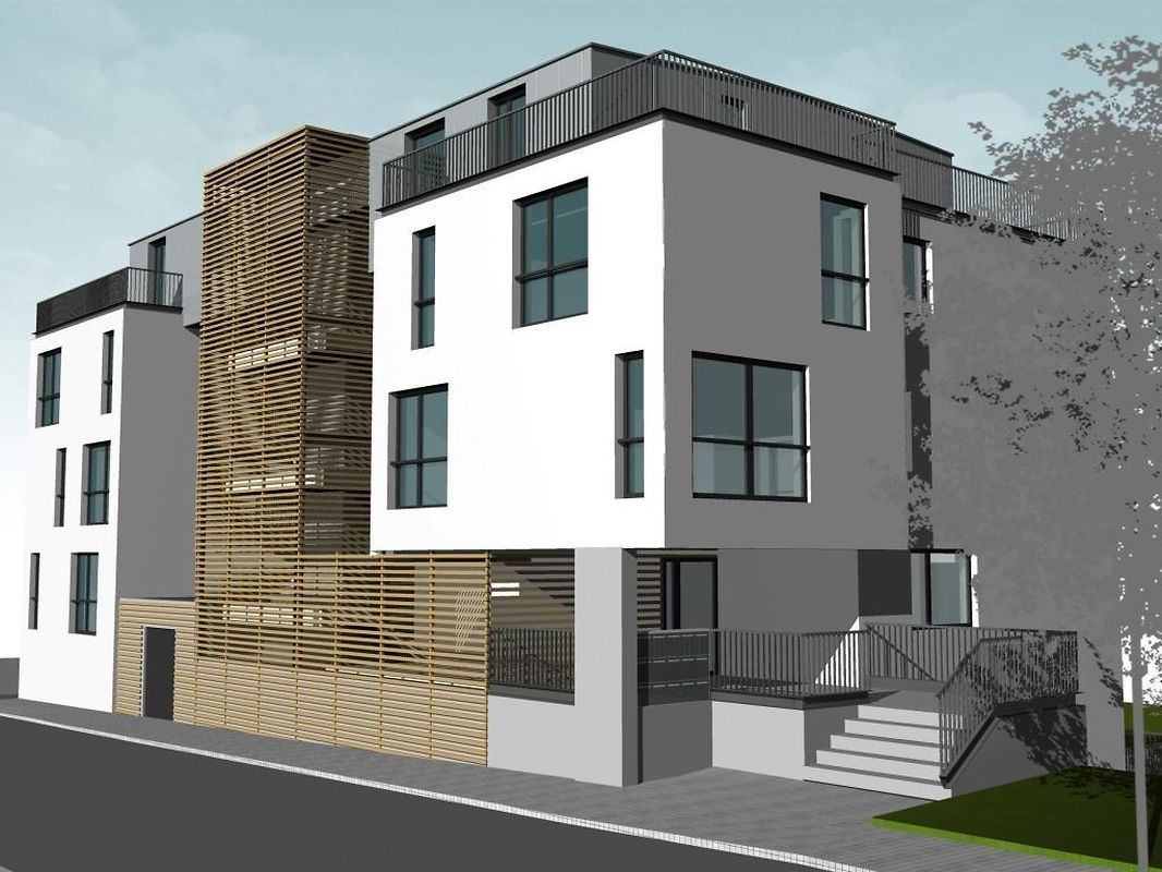 L'immeuble construit se compose de 13 appartements de 1 à 3 chambres à coucher répartis sur 4 niveaux. L’orientation et l'organisation des appartements permettent un ensoleillement maximal de tous les logements. La déclivité naturelle de la parcelle a permis la création d’un au rez-de-jardin supplémentaire, orienté plein sud.