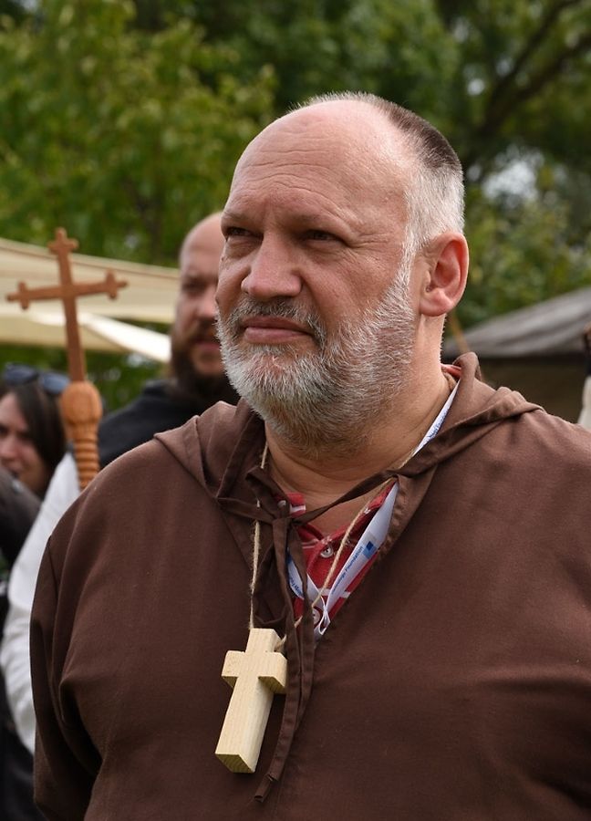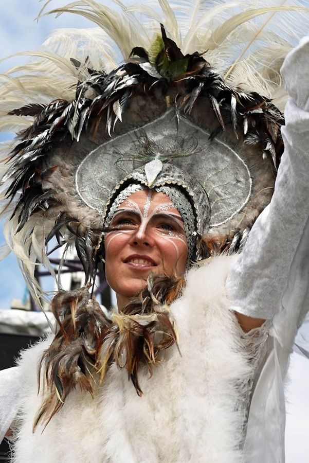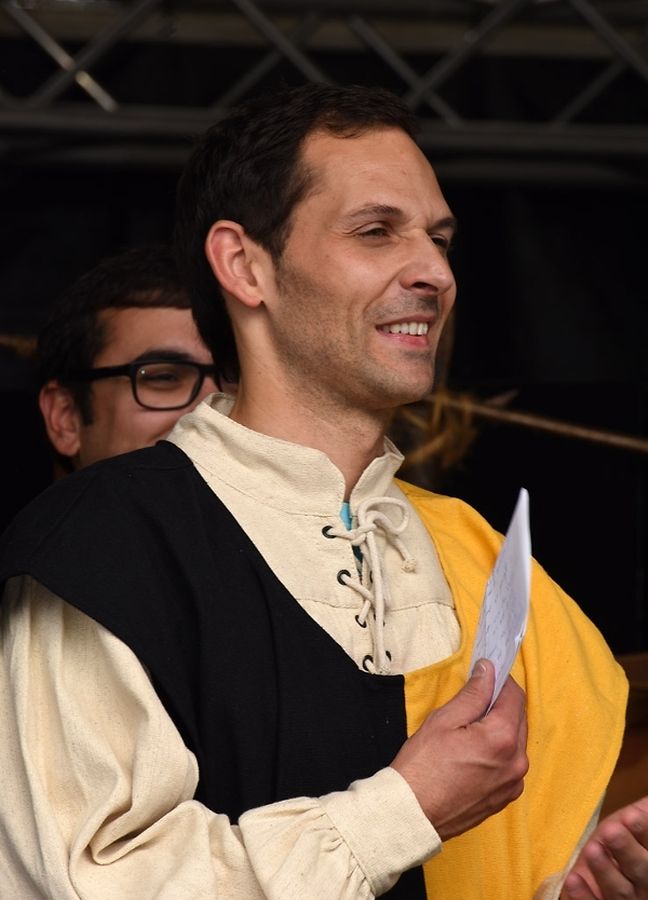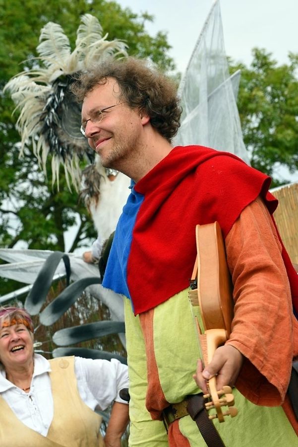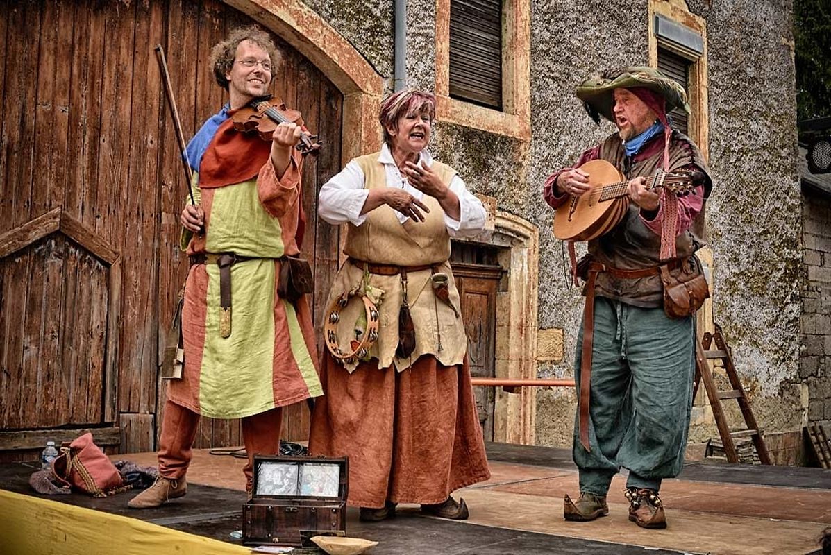 No der Mëttesstonn war en Cortège deen bis op d'Haaptbühn gaangen ass. Do sinn op typesch mëttelalterlech Manéier all d'Kënschtler déi do waren, - an et waren der nawell vill - virgestallt ginn. De Buergermeeschter Dan Biancalana esou wéi seng zwee Virgänger Mars Di Bartolomeo an den Alex Bodry waren och vun der Partie. Si waren och an engem mëttelalterlechen Outfit komm. An d'Wieder huet sech nawell och gutt gehalen an dat war gutt fir déi vill Participant'en déi op der Plaz waren, awer och fir déi immens vill Visiteuren déi do waren. Et ass een bal net méi laanschteneen komm, esou struppevoll war d'Rue de la Chapelle.