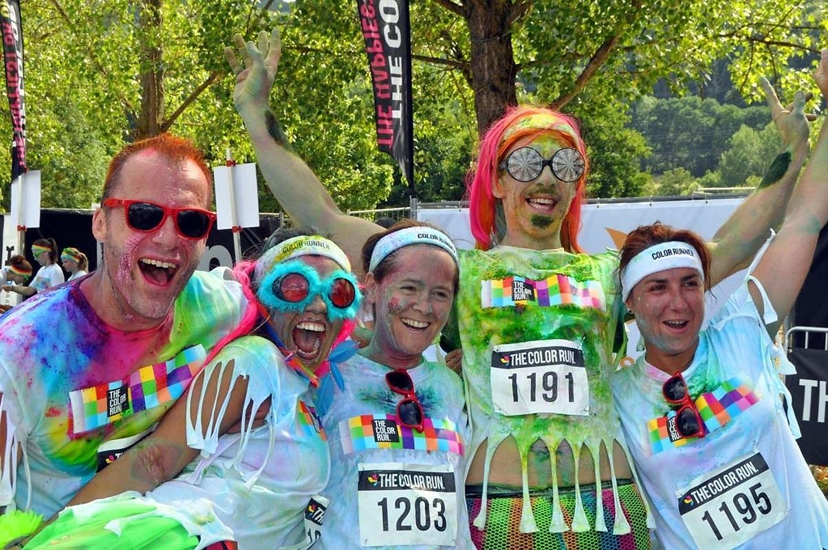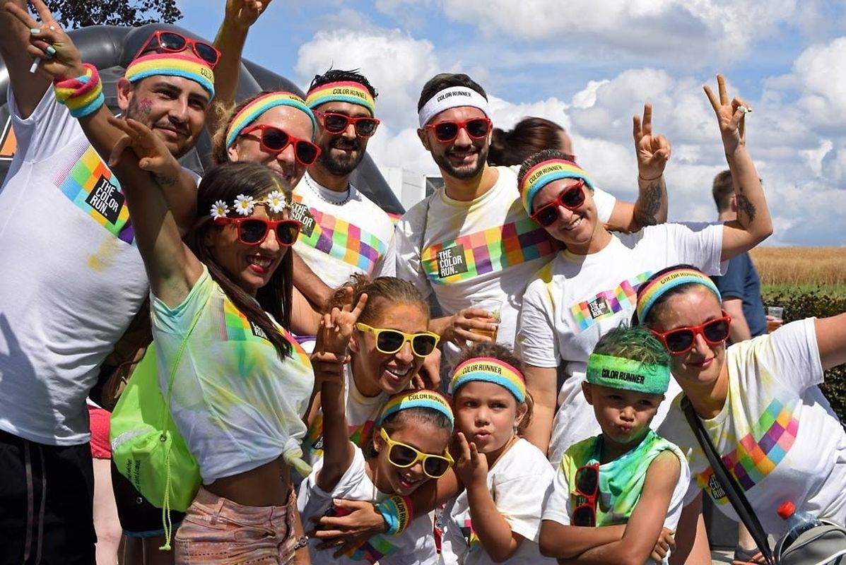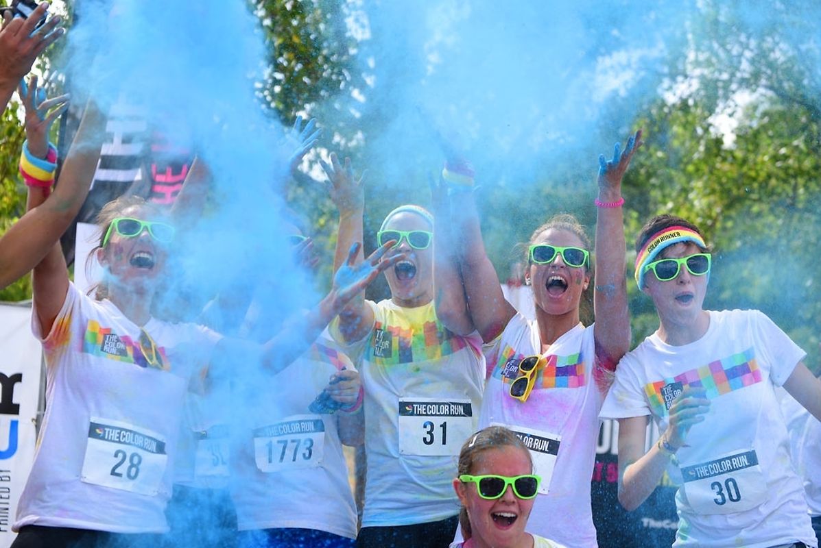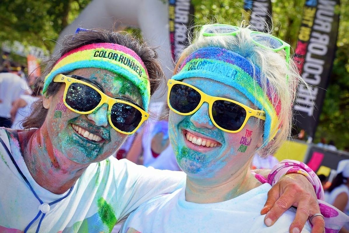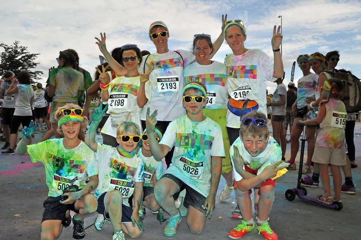 Iwwert 3000 Leefer haten sech afonnt fir beim Color Run 2015 mat ze maachen. Schonns befiert et lass gaangen ass - et waren 6 Starten mat all kéiers ca 300 Leit - waren déi meeschten mat faarwegem Pudder bemoolt. Op der Streck sinn si nach méi fuerweg ginn an op der Arrivée ass de Spaass dann esou richteg lass gaangen. Et gouf eppes ze drénken an dann ass et an de Village gaangen wou fir eng Bommestëmmung gesuergt ginn ass. Musek, Animatioun a Stëmmung pur. Jiddereen huet matgemaach a Faarf ass iwwerall dorëmmer geflunn. Um Enn ass et nach besser ginn, d'Leit kruten nach eng naass Erfrëschung aus dem Schlauch wat keen gestéiert huet. D'Wieder huet och matgespillt an esou huet een beim Organisateur a bei de Participanten nëmmen zefridden a glécklech Gesiichter gesinn. Dat war een Event deen d'Leit brauchen an deen alles anescht an de Vergiess geschéckt huet. Tip Top an nëmmen ze empfeelen.