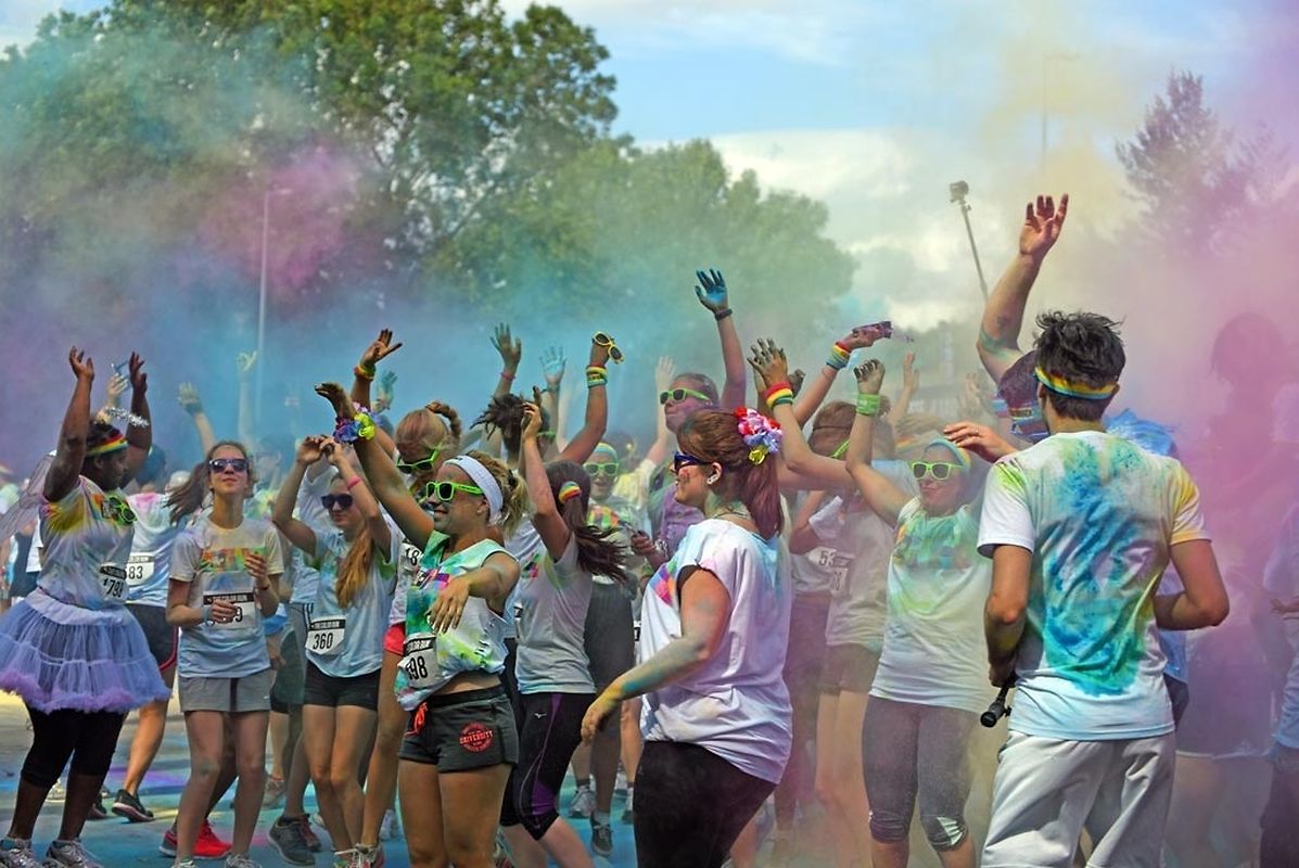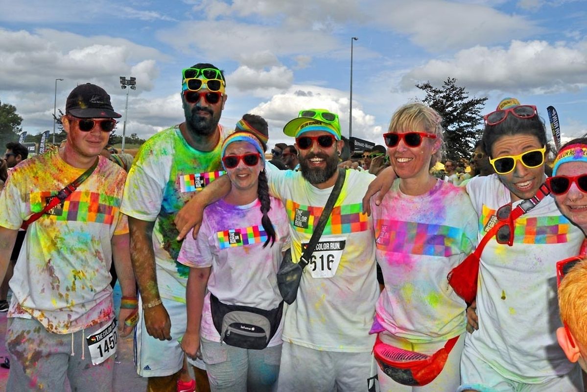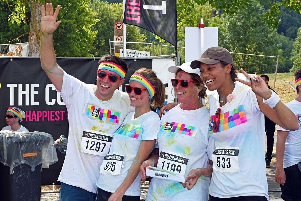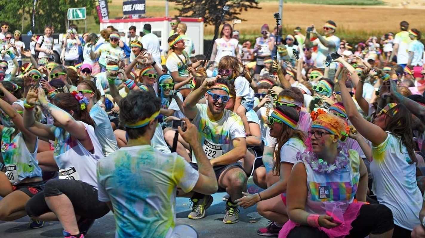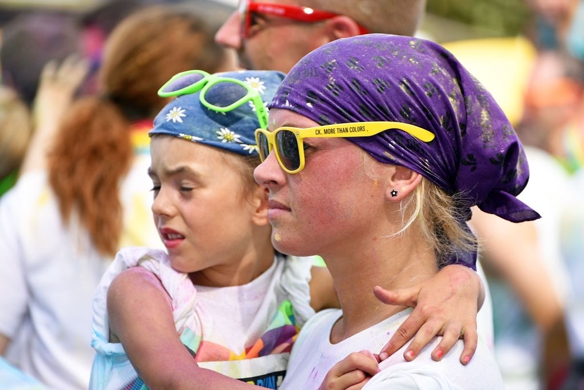Iwwert 3000 Leefer haten sech afonnt fir beim Color Run 2015 mat ze maachen. Schonns befiert et lass gaangen ass - et waren 6 Starten mat all kéiers ca 300 Leit - waren déi meeschten mat faarwegem Pudder bemoolt. Op der Streck sinn si nach méi fuerweg ginn an op der Arrivée ass de Spaass dann esou richteg lass gaangen. Et gouf eppes ze drénken an dann ass et an de Village gaangen wou fir eng Bommestëmmung gesuergt ginn ass. Musek, Animatioun a Stëmmung pur. Jiddereen huet matgemaach a Faarf ass iwwerall dorëmmer geflunn. Um Enn ass et nach besser ginn, d'Leit kruten nach eng naass Erfrëschung aus dem Schlauch wat keen gestéiert huet. D'Wieder huet och matgespillt an esou huet een beim Organisateur a bei de Participanten nëmmen zefridden a glécklech Gesiichter gesinn. Dat war een Event deen d'Leit brauchen an deen alles anescht an de Vergiess geschéckt huet. Tip Top an nëmmen ze empfeelen.