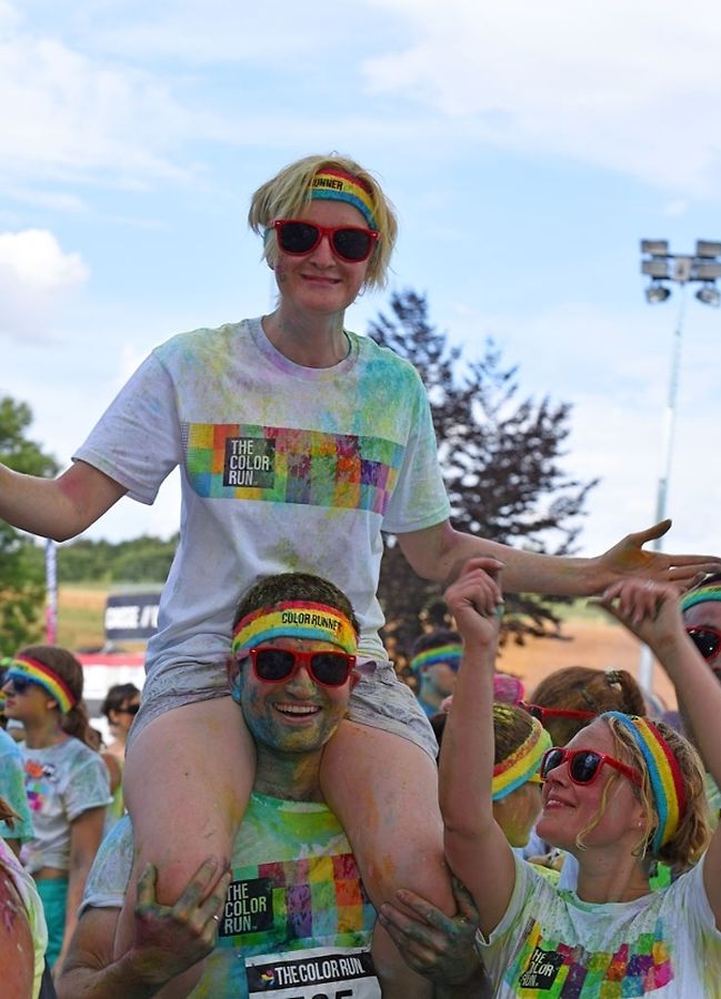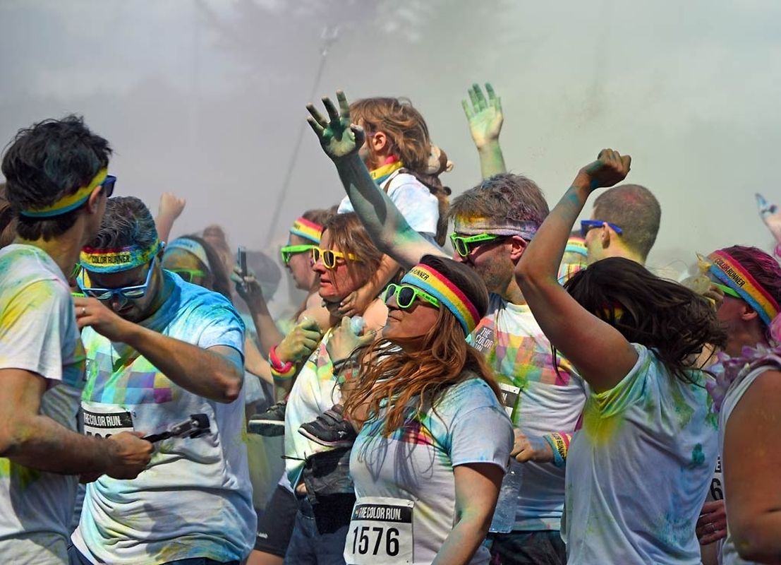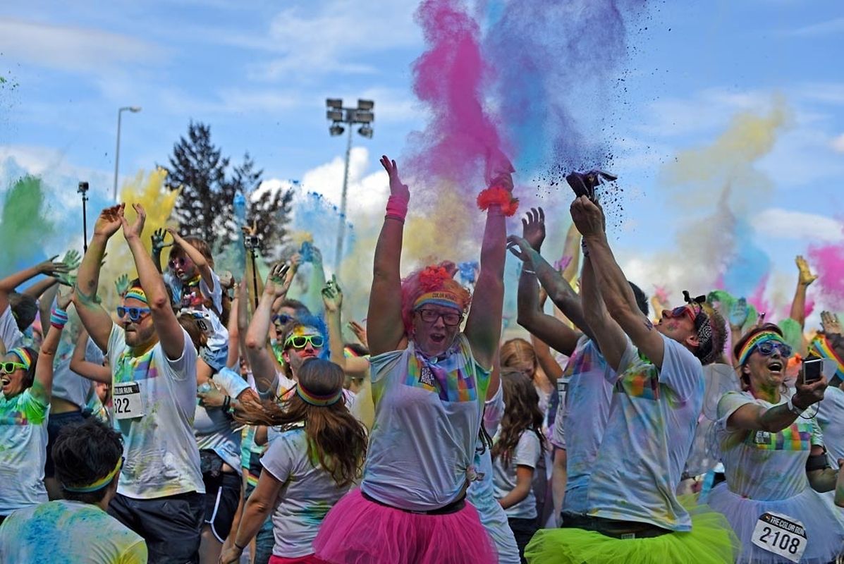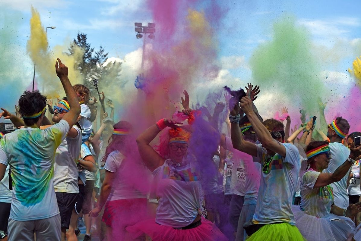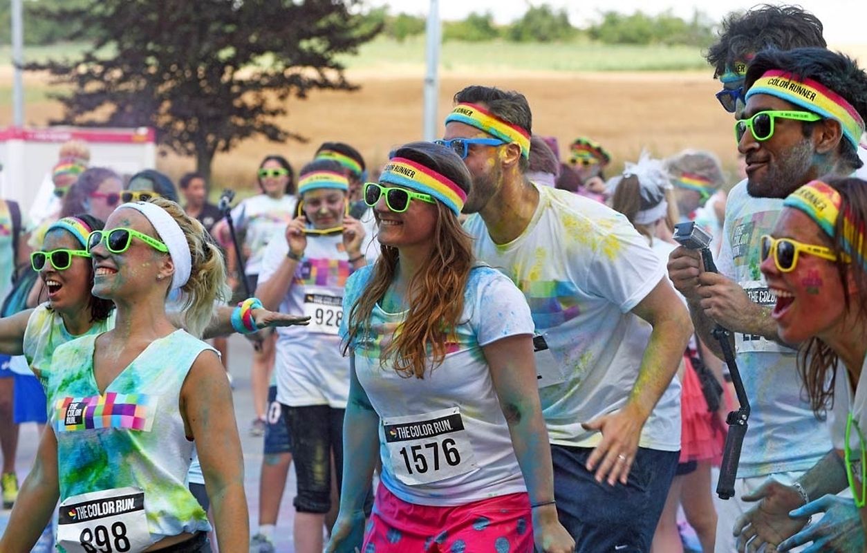 Iwwert 3000 Leefer haten sech afonnt fir beim Color Run 2015 mat ze maachen. Schonns befiert et lass gaangen ass - et waren 6 Starten mat all kéiers ca 300 Leit - waren déi meeschten mat faarwegem Pudder bemoolt. Op der Streck sinn si nach méi fuerweg ginn an op der Arrivée ass de Spaass dann esou richteg lass gaangen. Et gouf eppes ze drénken an dann ass et an de Village gaangen wou fir eng Bommestëmmung gesuergt ginn ass. Musek, Animatioun a Stëmmung pur. Jiddereen huet matgemaach a Faarf ass iwwerall dorëmmer geflunn. Um Enn ass et nach besser ginn, d'Leit kruten nach eng naass Erfrëschung aus dem Schlauch wat keen gestéiert huet. D'Wieder huet och matgespillt an esou huet een beim Organisateur a bei de Participanten nëmmen zefridden a glécklech Gesiichter gesinn. Dat war een Event deen d'Leit brauchen an deen alles anescht an de Vergiess geschéckt huet. Tip Top an nëmmen ze empfeelen.