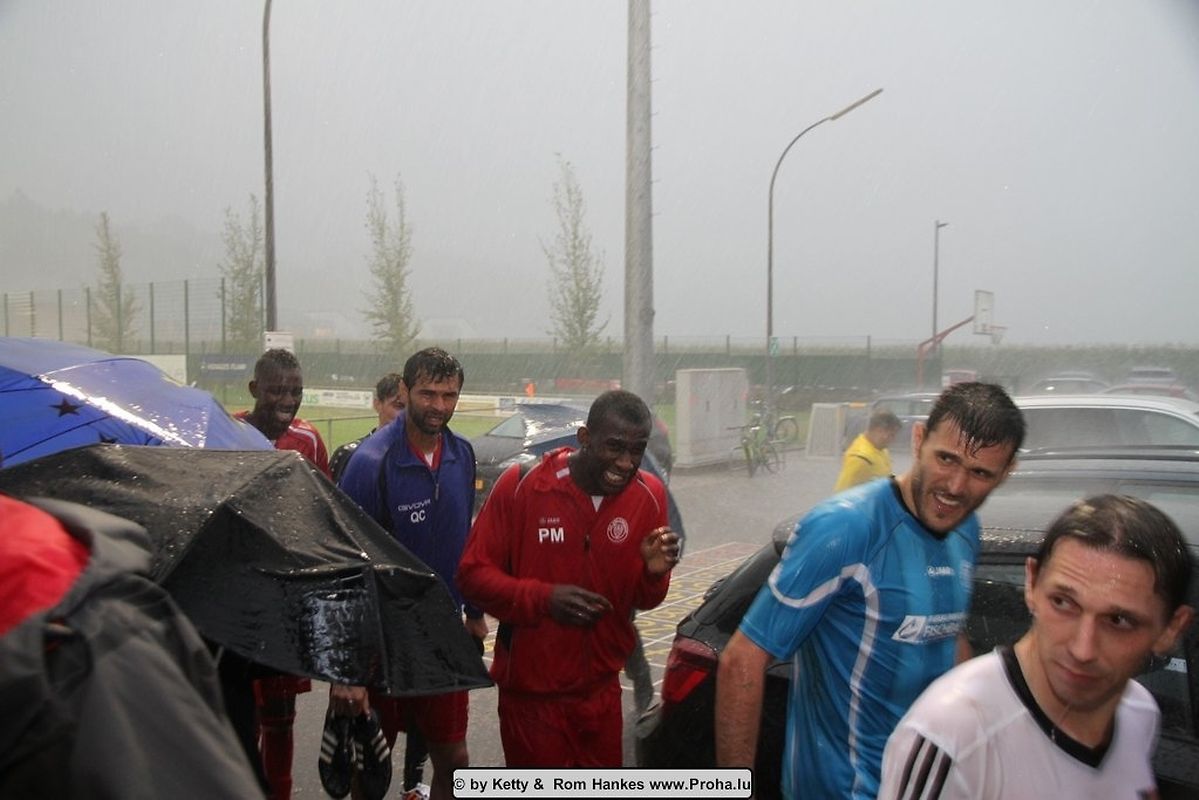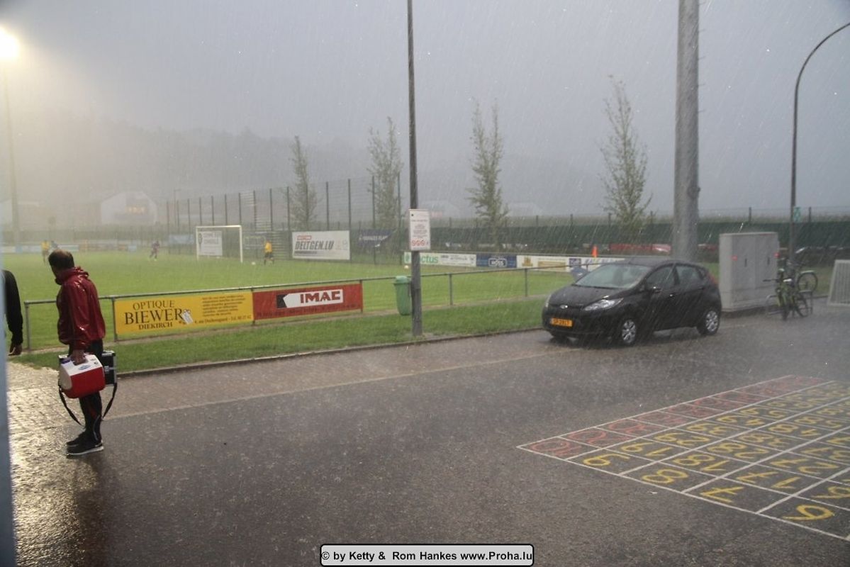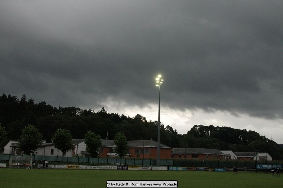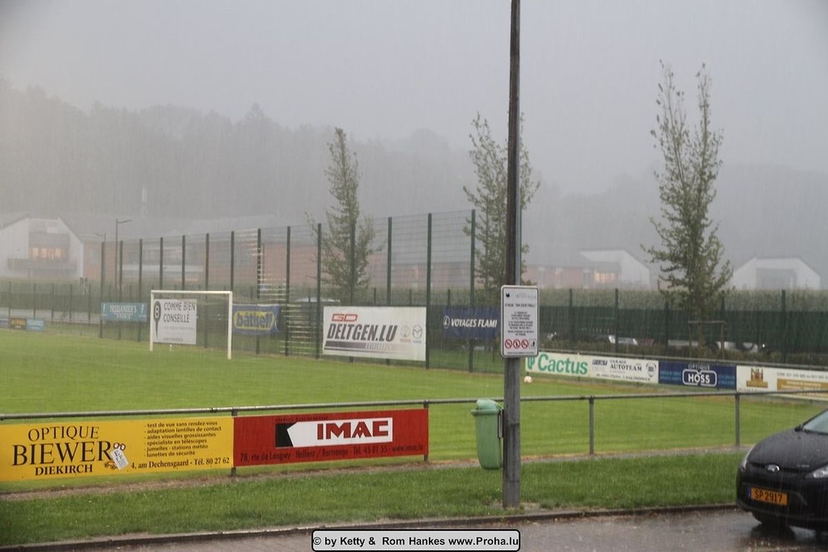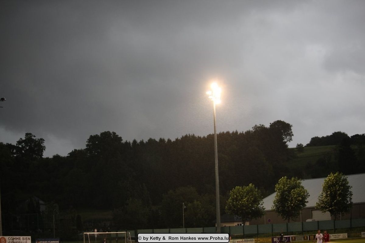 Déi 2 Maetcher vun den Eliminatoiren goufen an der Woch bei guddem Wieder gespillt , mä e Sonnden huet dee ville Reen den Oflaf vun de Finale nawell staark gestéiert an et huet misse bëssen improviséiert ginn.
