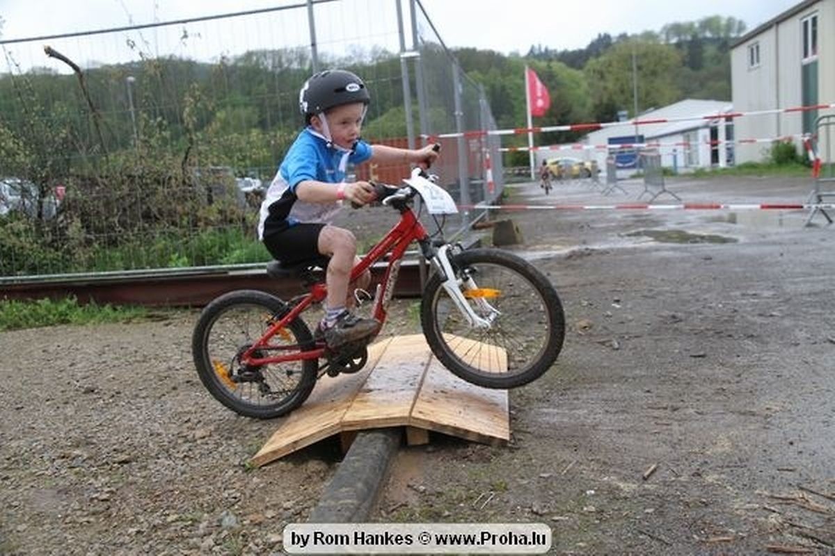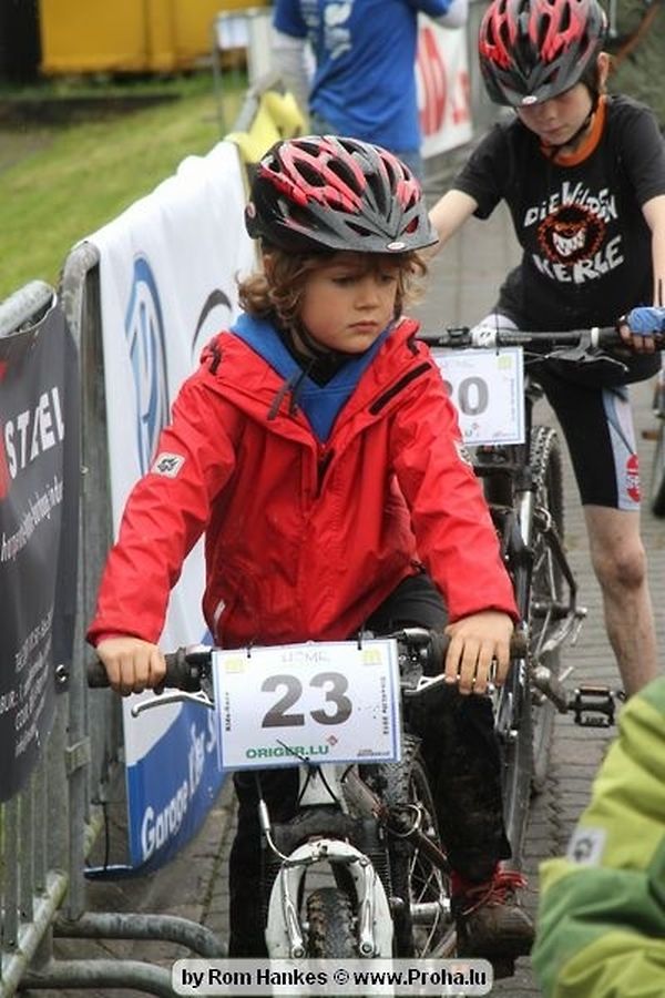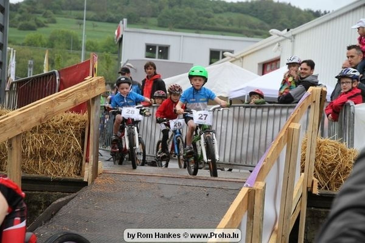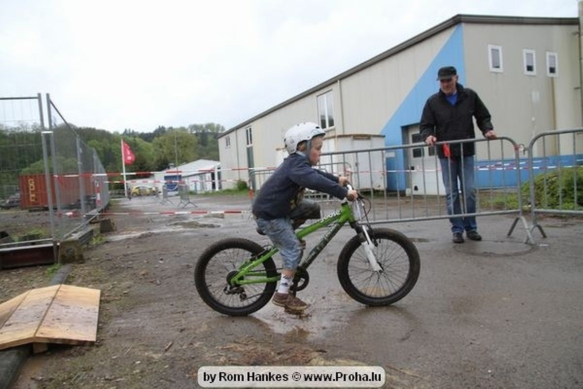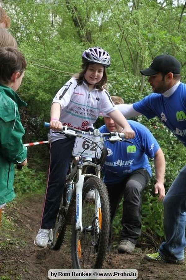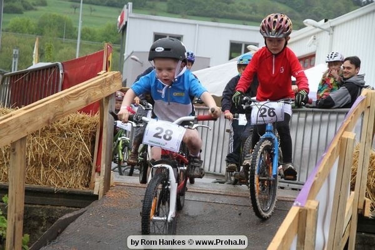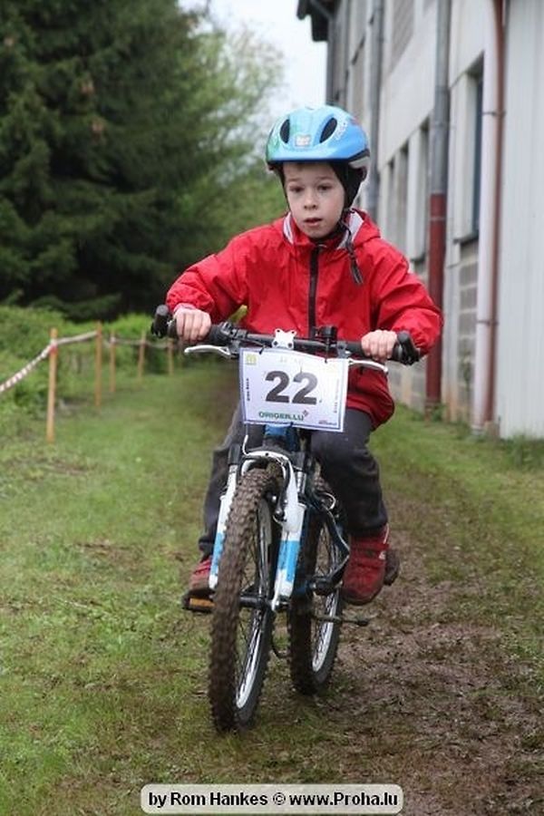 Den 5.mee war nees den Bike 4 Life dest Joer vir 4 Kéier, ausser datt Wieder net matgespillt huet war awer de Rest perfekt. Vir Iessen, Drenken an gut Stemmung war bestens gesuergt an wéi een et vun den Mennien gewinnt as huet déi ganz Organisatioun bis an de klengsten Détail geklappt. 58 Kanner waren bei de Kannercoursen um départ, 69 Teams an dorenner 13 Eenzelfuerer. En haarden Samsteg sollt op se duer komm wéi se den Départ bis gehol haaten. Moies sin d´Kanner mat vill Eifer an Spaass hier Ronnen gedréint och wann d´Wieder et net esou gutt mat hinnen gemengt huet, huet dat Kanner awer guer net gestéiert, si haaten hieren Spaass mat de Féiss duerch de Bulli ze fatzen oder mat den Turnschlappen an de Puddel ze sprangen. Me och déi, déi mam Velo do waren haaten net vill manner Spaass, et war e Genoss hinnen nozekuken wou se sech duerch de Bulli gedreckt hun an deen hinnen bis op den Helm gesprutzt huet. Si haaten hieren furri an d´Elteren hun se lanscht d´Steck richteg ungefeiert an motivéiert.