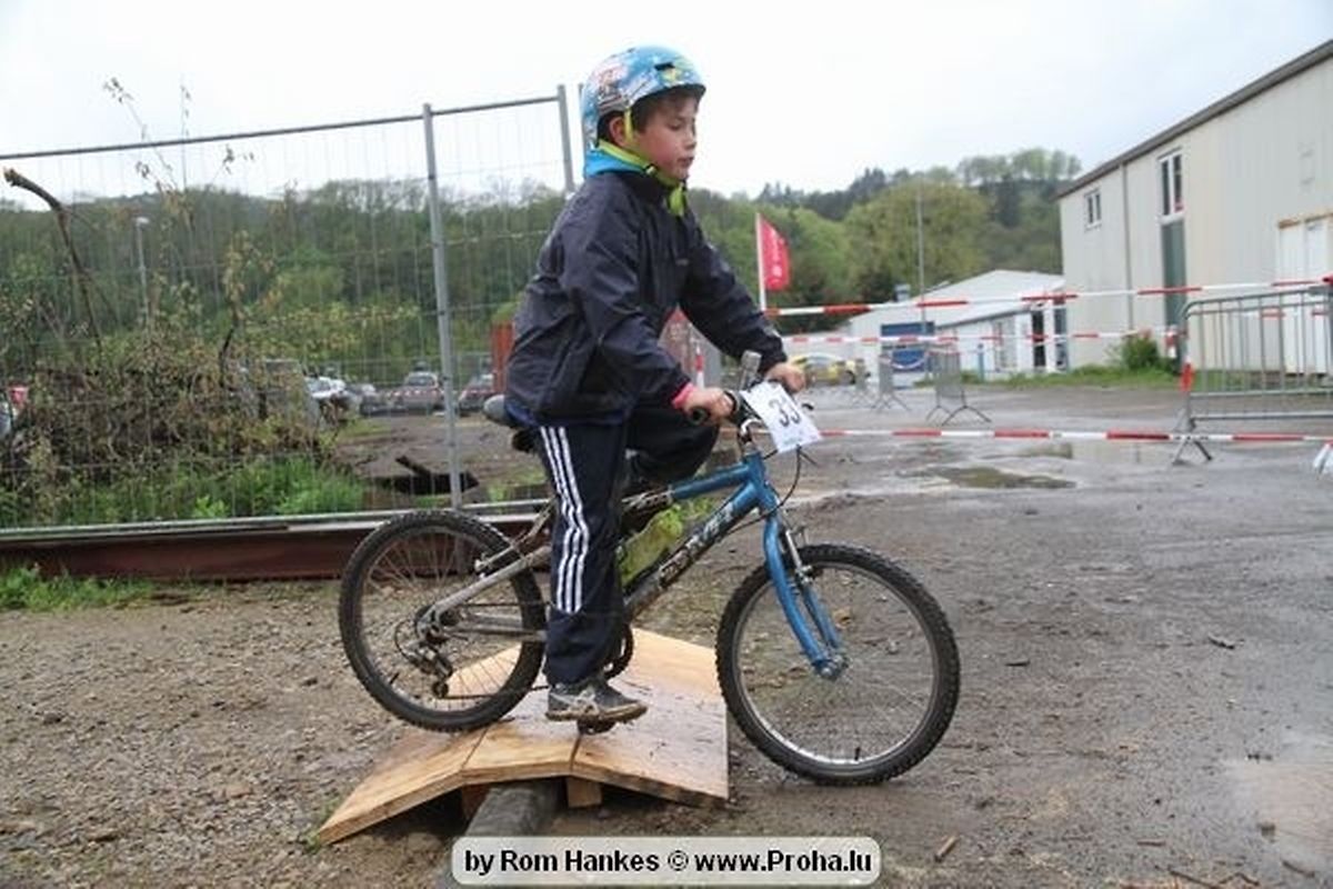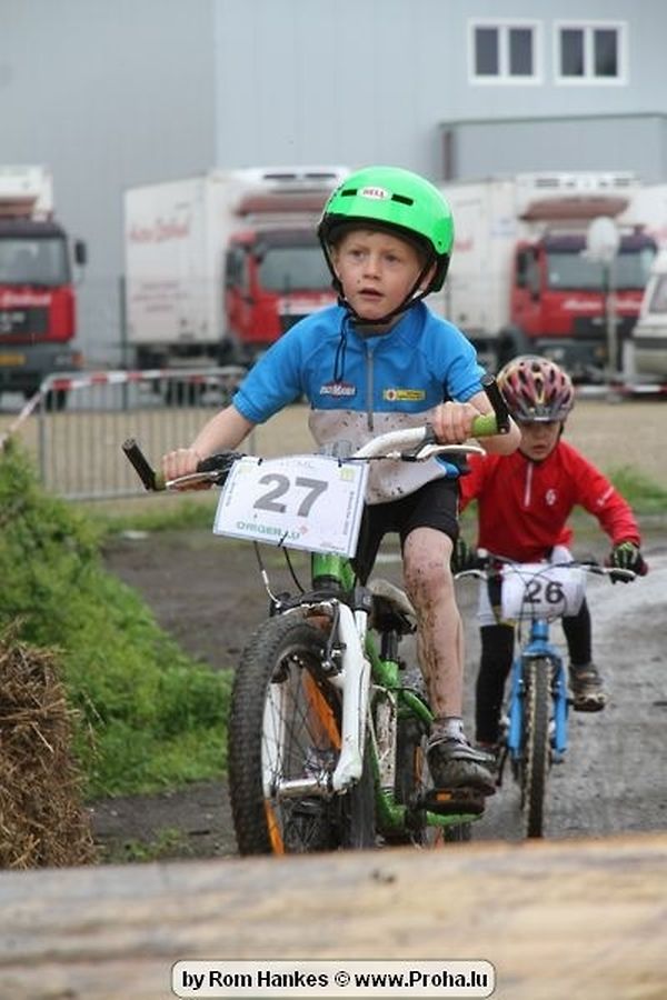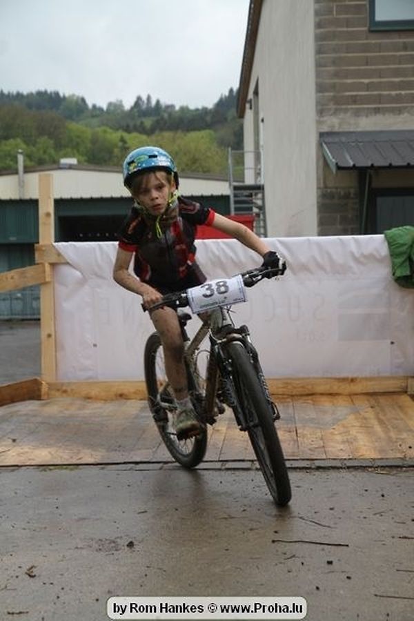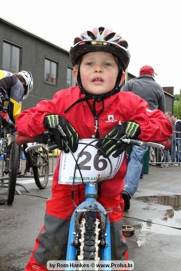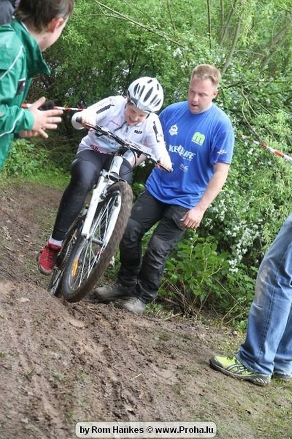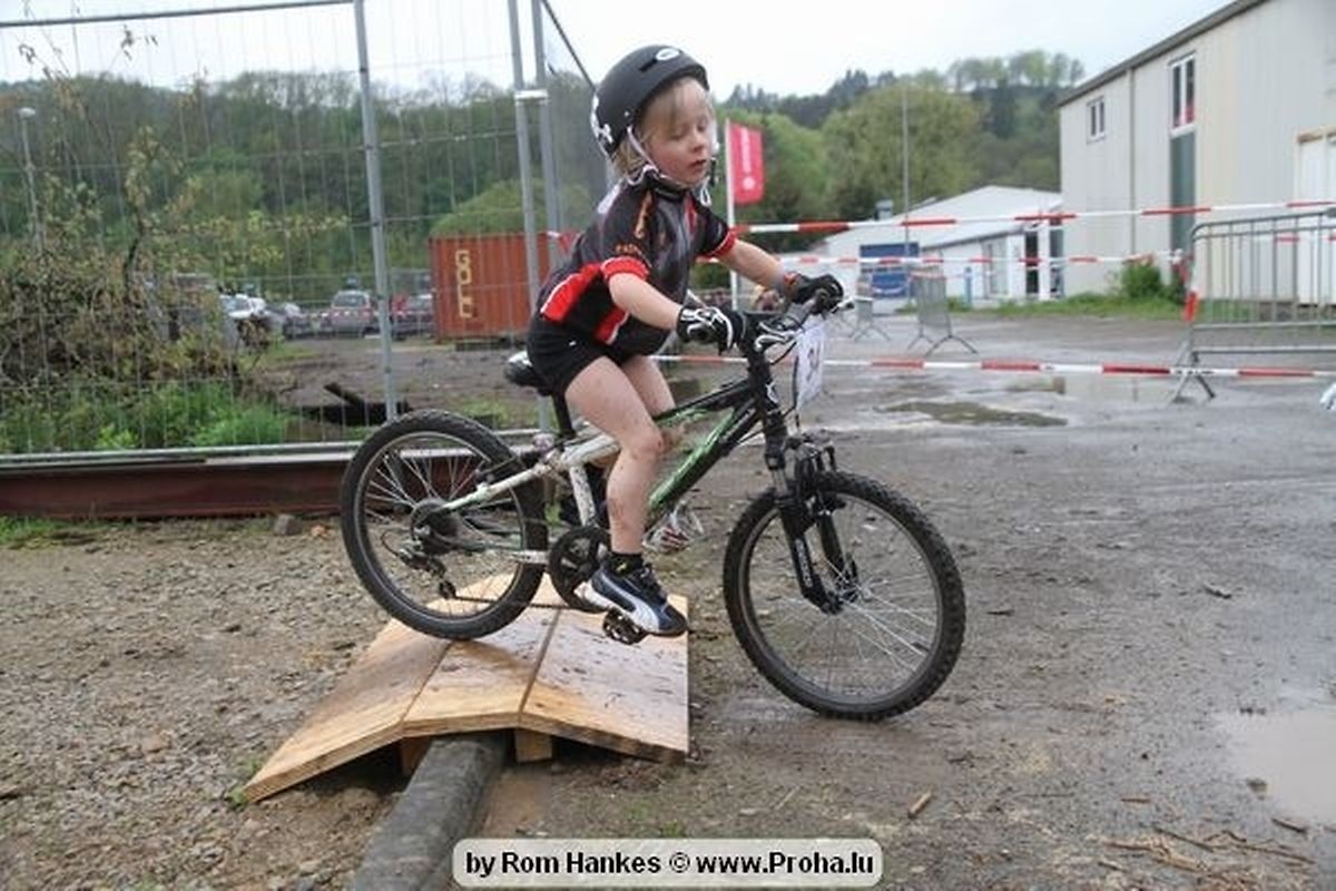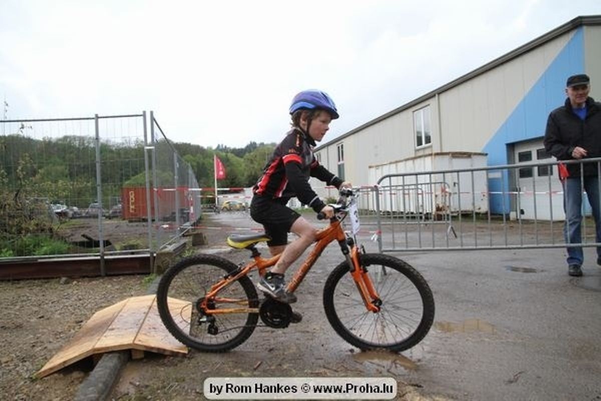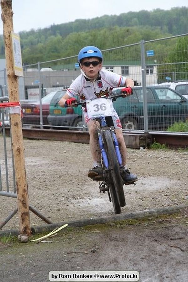 Den 5.mee war nees den Bike 4 Life dest Joer vir 4 Kéier, ausser datt Wieder net matgespillt huet war awer de Rest perfekt. Vir Iessen, Drenken an gut Stemmung war bestens gesuergt an wéi een et vun den Mennien gewinnt as huet déi ganz Organisatioun bis an de klengsten Détail geklappt. 58 Kanner waren bei de Kannercoursen um départ, 69 Teams an dorenner 13 Eenzelfuerer. En haarden Samsteg sollt op se duer komm wéi se den Départ bis gehol haaten. Moies sin d´Kanner mat vill Eifer an Spaass hier Ronnen gedréint och wann d´Wieder et net esou gutt mat hinnen gemengt huet, huet dat Kanner awer guer net gestéiert, si haaten hieren Spaass mat de Féiss duerch de Bulli ze fatzen oder mat den Turnschlappen an de Puddel ze sprangen. Me och déi, déi mam Velo do waren haaten net vill manner Spaass, et war e Genoss hinnen nozekuken wou se sech duerch de Bulli gedreckt hun an deen hinnen bis op den Helm gesprutzt huet. Si haaten hieren furri an d´Elteren hun se lanscht d´Steck richteg ungefeiert an motivéiert.