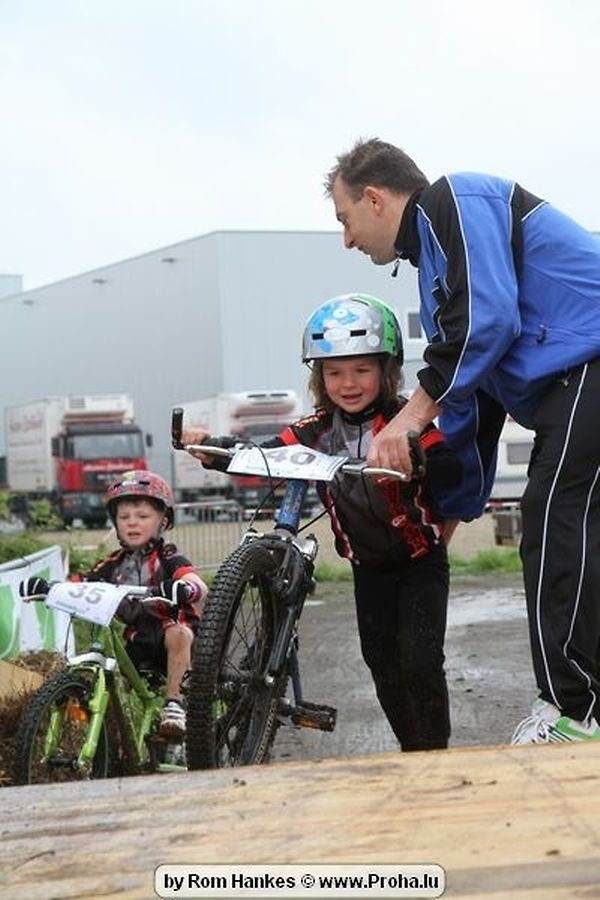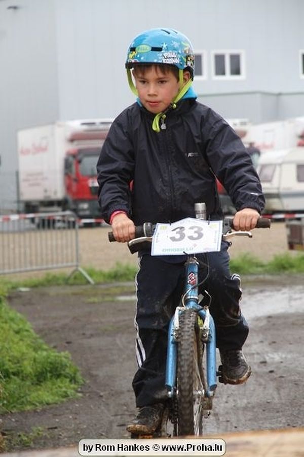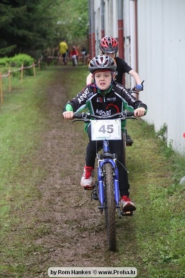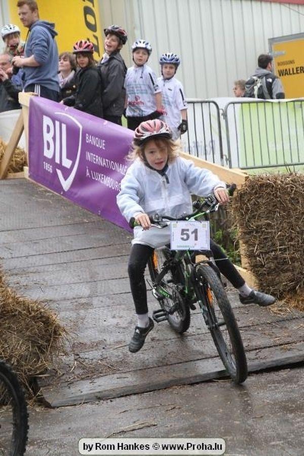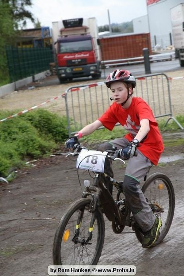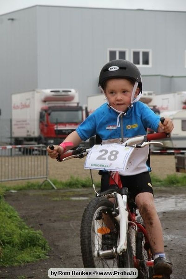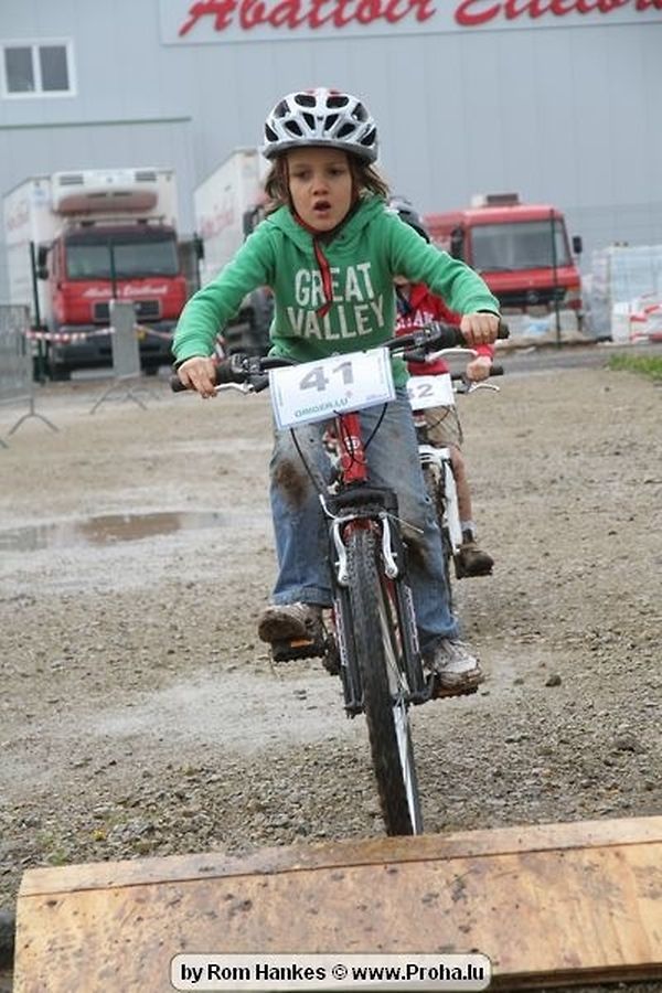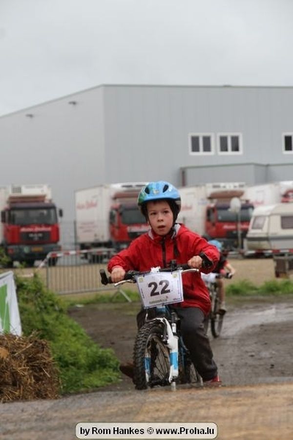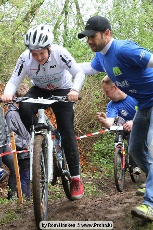 Den 5.mee war nees den Bike 4 Life dest Joer vir 4 Kéier, ausser datt Wieder net matgespillt huet war awer de Rest perfekt. Vir Iessen, Drenken an gut Stemmung war bestens gesuergt an wéi een et vun den Mennien gewinnt as huet déi ganz Organisatioun bis an de klengsten Détail geklappt. 58 Kanner waren bei de Kannercoursen um départ, 69 Teams an dorenner 13 Eenzelfuerer. En haarden Samsteg sollt op se duer komm wéi se den Départ bis gehol haaten. Moies sin d´Kanner mat vill Eifer an Spaass hier Ronnen gedréint och wann d´Wieder et net esou gutt mat hinnen gemengt huet, huet dat Kanner awer guer net gestéiert, si haaten hieren Spaass mat de Féiss duerch de Bulli ze fatzen oder mat den Turnschlappen an de Puddel ze sprangen. Me och déi, déi mam Velo do waren haaten net vill manner Spaass, et war e Genoss hinnen nozekuken wou se sech duerch de Bulli gedreckt hun an deen hinnen bis op den Helm gesprutzt huet. Si haaten hieren furri an d´Elteren hun se lanscht d´Steck richteg ungefeiert an motivéiert.