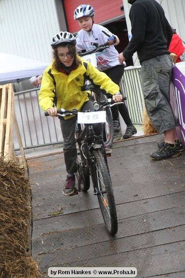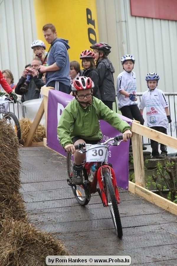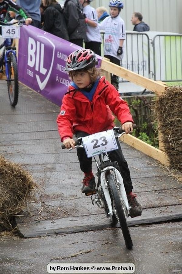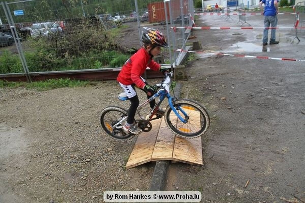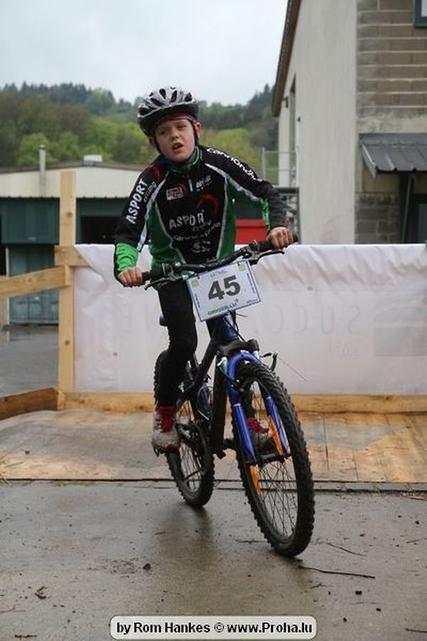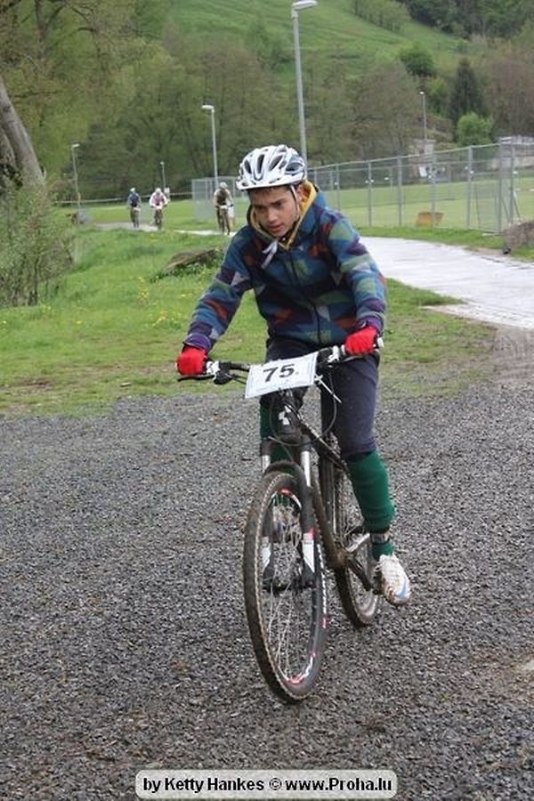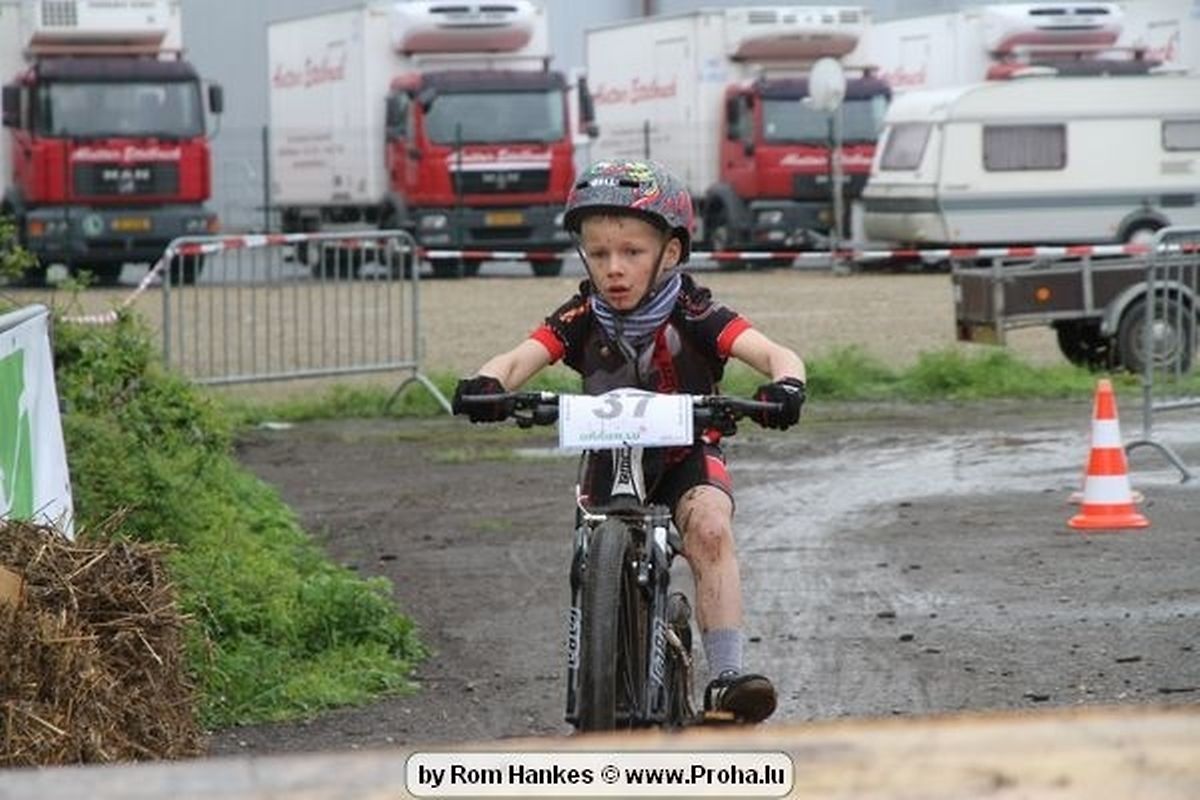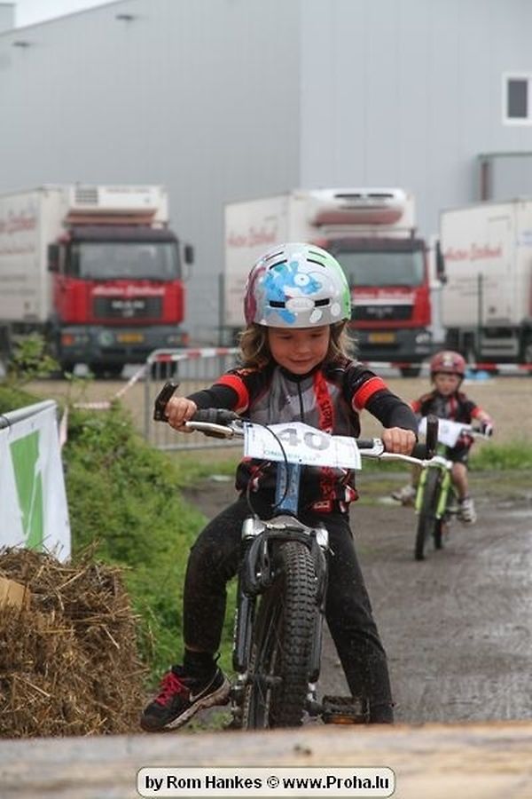 Den 5.mee war nees den Bike 4 Life dest Joer vir 4 Kéier, ausser datt Wieder net matgespillt huet war awer de Rest perfekt. Vir Iessen, Drenken an gut Stemmung war bestens gesuergt an wéi een et vun den Mennien gewinnt as huet déi ganz Organisatioun bis an de klengsten Détail geklappt. 58 Kanner waren bei de Kannercoursen um départ, 69 Teams an dorenner 13 Eenzelfuerer. En haarden Samsteg sollt op se duer komm wéi se den Départ bis gehol haaten. Moies sin d´Kanner mat vill Eifer an Spaass hier Ronnen gedréint och wann d´Wieder et net esou gutt mat hinnen gemengt huet, huet dat Kanner awer guer net gestéiert, si haaten hieren Spaass mat de Féiss duerch de Bulli ze fatzen oder mat den Turnschlappen an de Puddel ze sprangen. Me och déi, déi mam Velo do waren haaten net vill manner Spaass, et war e Genoss hinnen nozekuken wou se sech duerch de Bulli gedreckt hun an deen hinnen bis op den Helm gesprutzt huet. Si haaten hieren furri an d´Elteren hun se lanscht d´Steck richteg ungefeiert an motivéiert.
