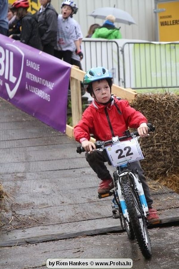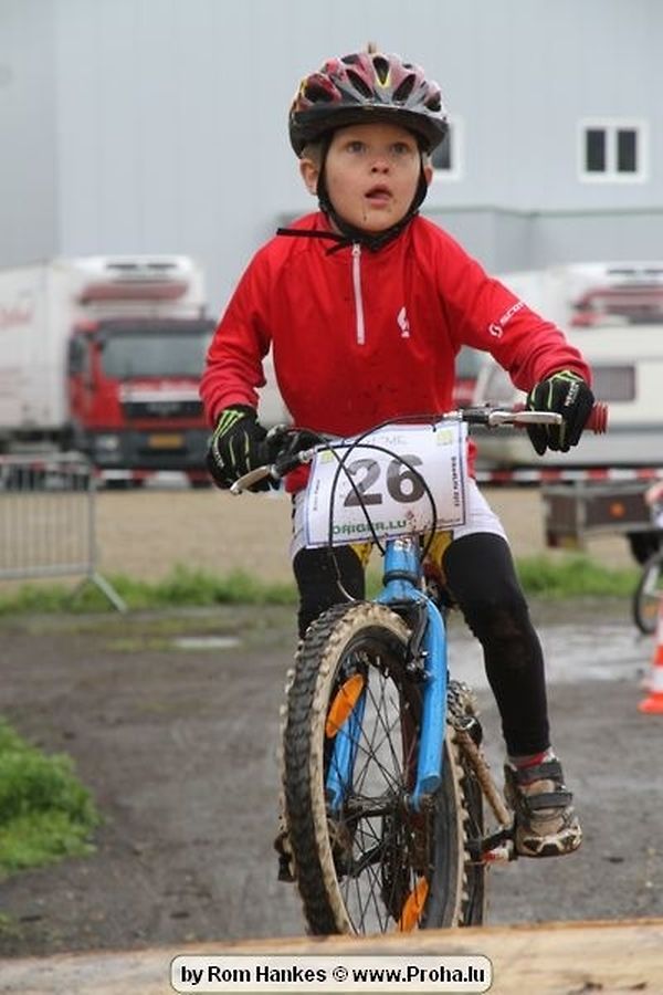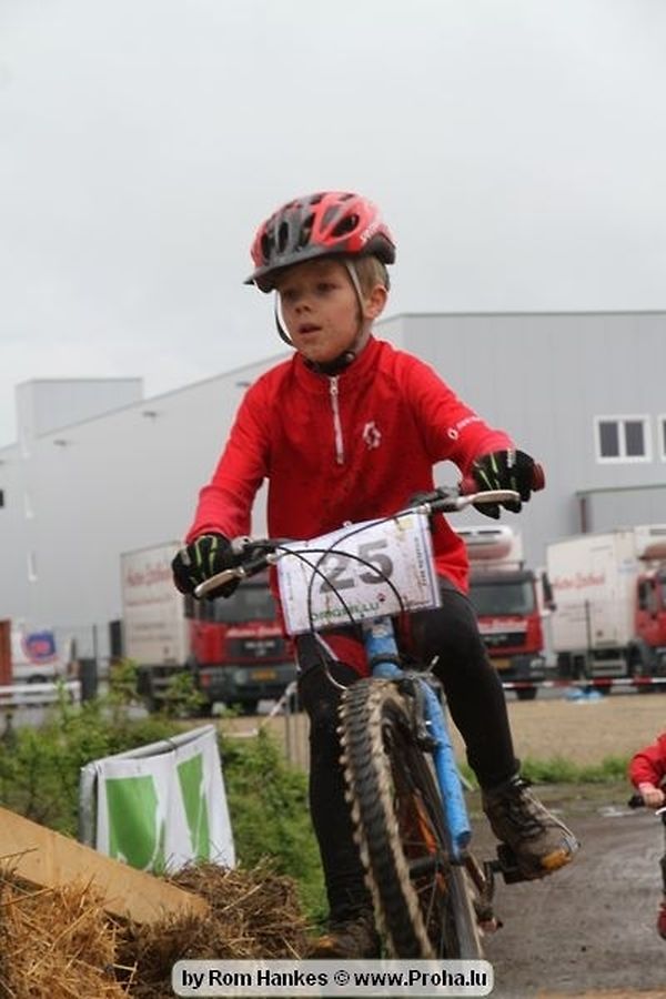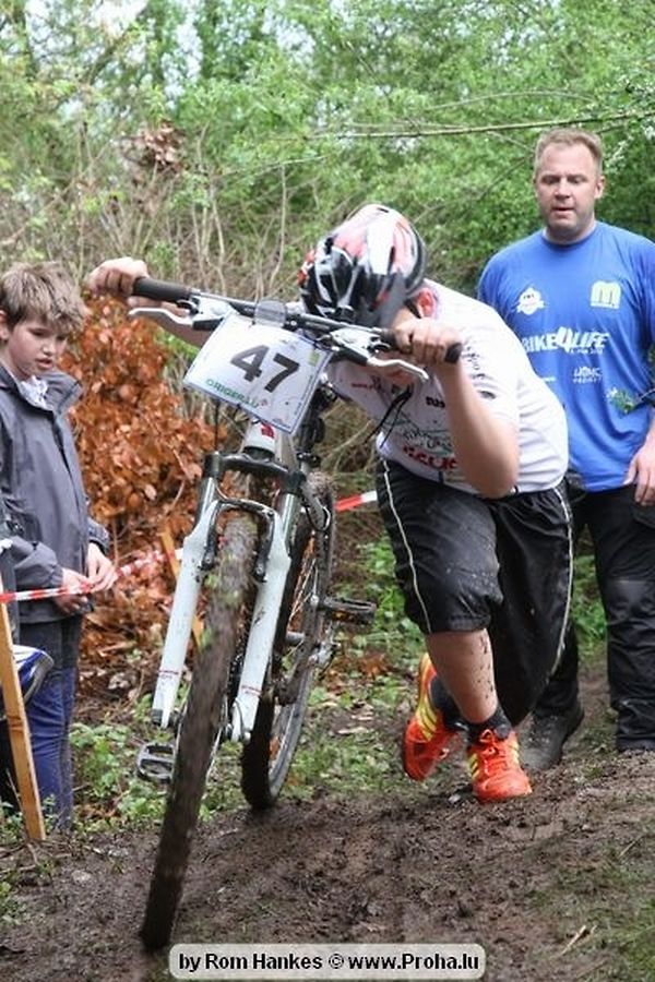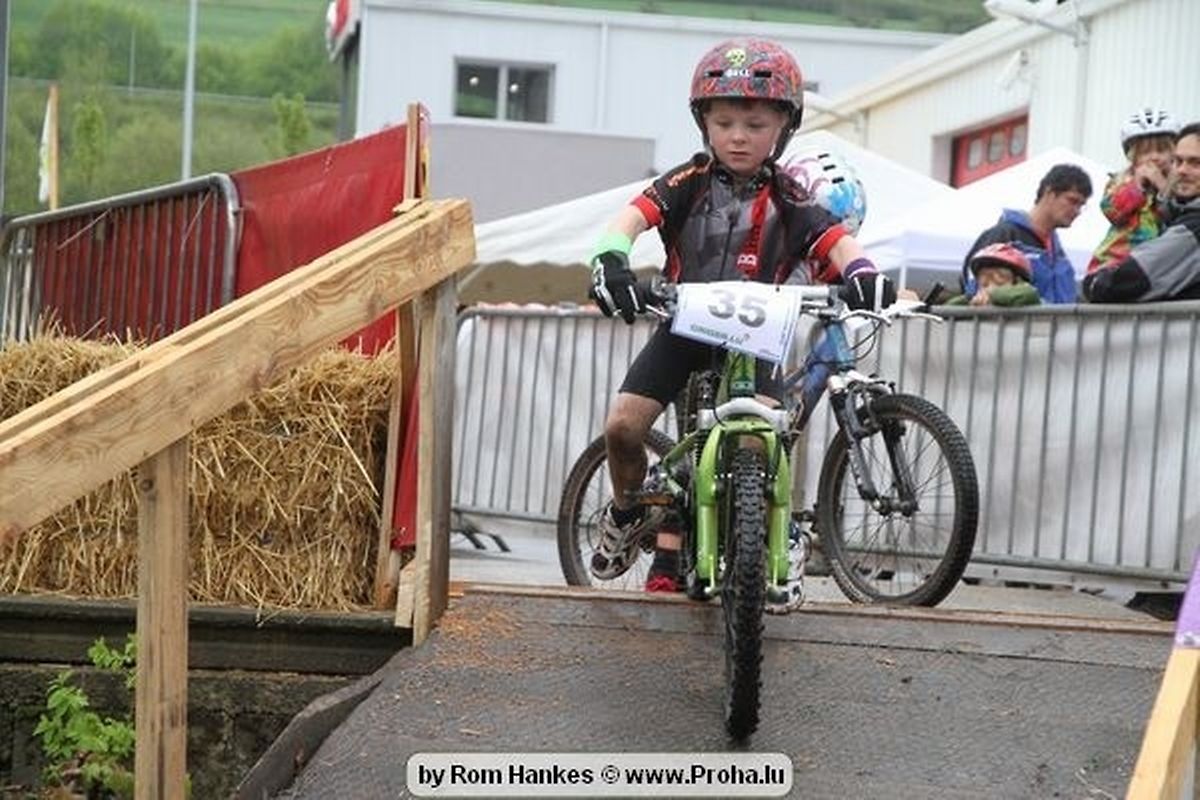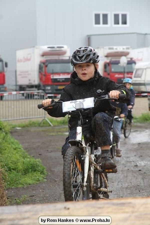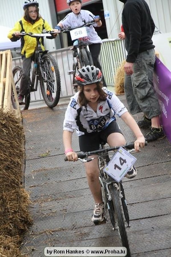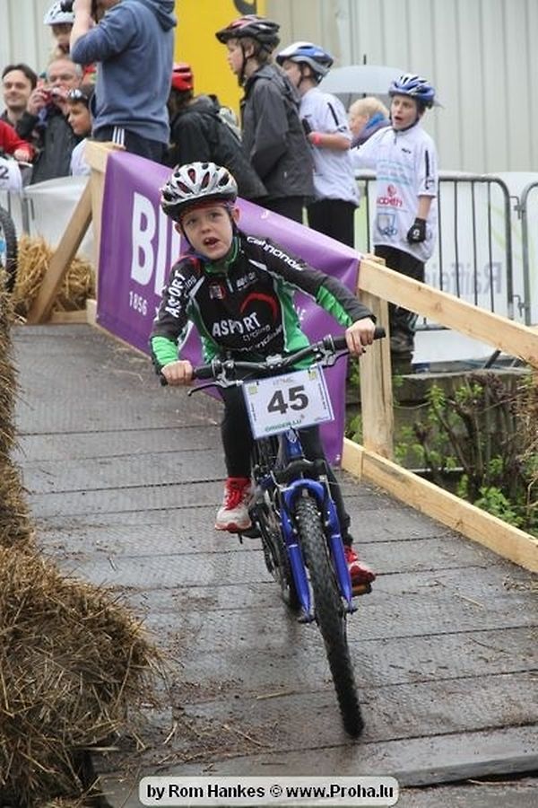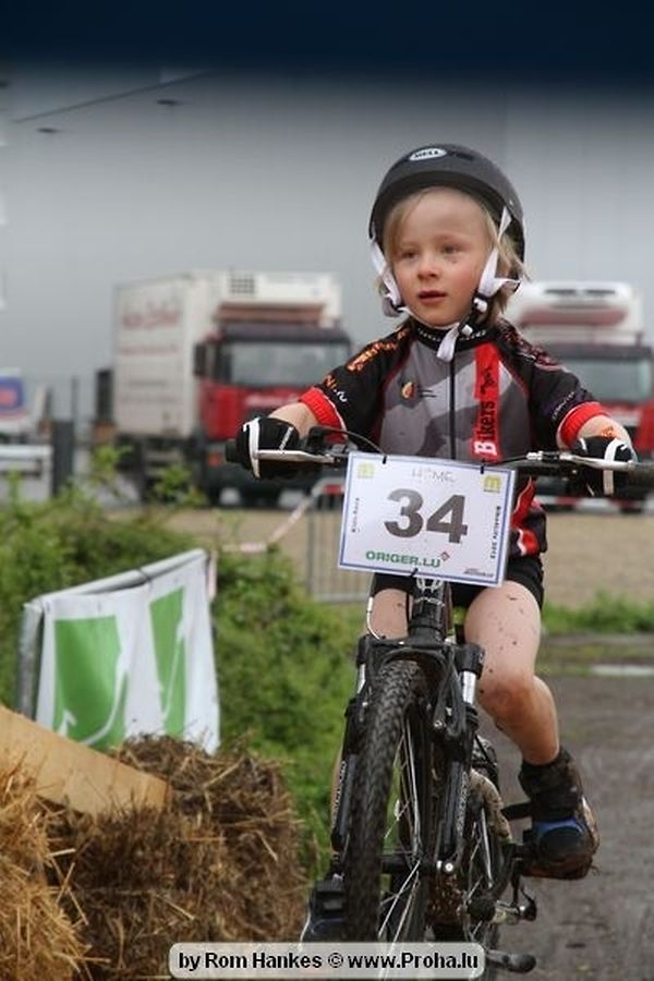 Den 5.mee war nees den Bike 4 Life dest Joer vir 4 Kéier, ausser datt Wieder net matgespillt huet war awer de Rest perfekt. Vir Iessen, Drenken an gut Stemmung war bestens gesuergt an wéi een et vun den Mennien gewinnt as huet déi ganz Organisatioun bis an de klengsten Détail geklappt. 58 Kanner waren bei de Kannercoursen um départ, 69 Teams an dorenner 13 Eenzelfuerer. En haarden Samsteg sollt op se duer komm wéi se den Départ bis gehol haaten. Moies sin d´Kanner mat vill Eifer an Spaass hier Ronnen gedréint och wann d´Wieder et net esou gutt mat hinnen gemengt huet, huet dat Kanner awer guer net gestéiert, si haaten hieren Spaass mat de Féiss duerch de Bulli ze fatzen oder mat den Turnschlappen an de Puddel ze sprangen. Me och déi, déi mam Velo do waren haaten net vill manner Spaass, et war e Genoss hinnen nozekuken wou se sech duerch de Bulli gedreckt hun an deen hinnen bis op den Helm gesprutzt huet. Si haaten hieren furri an d´Elteren hun se lanscht d´Steck richteg ungefeiert an motivéiert.