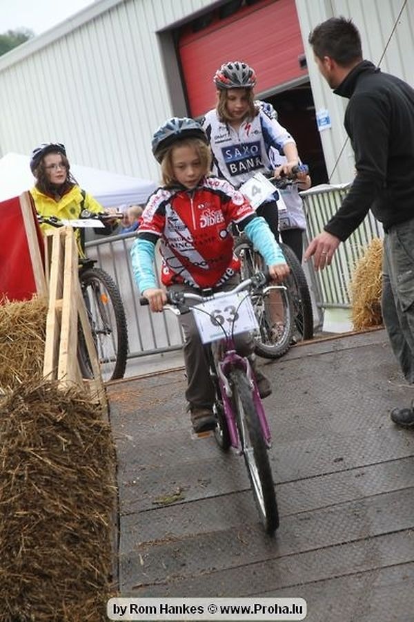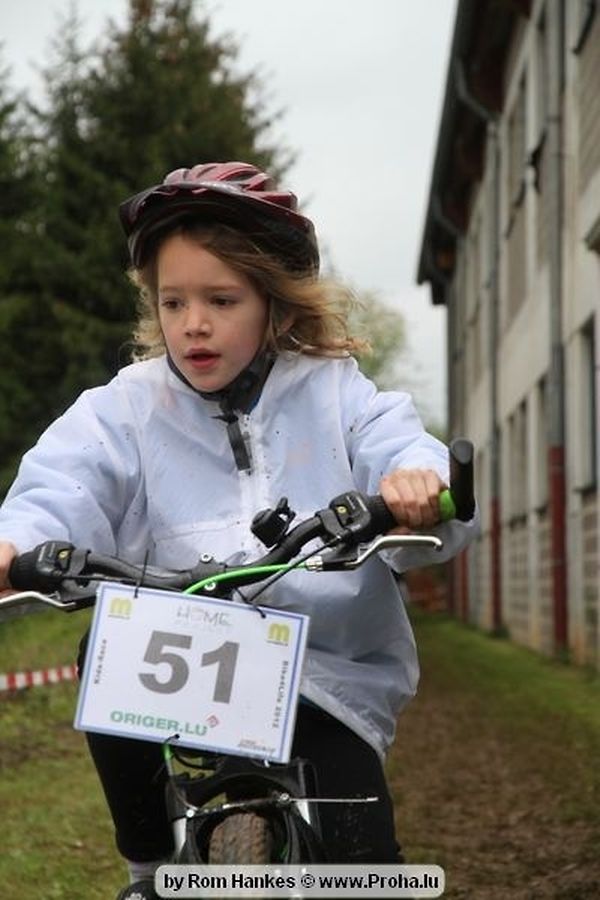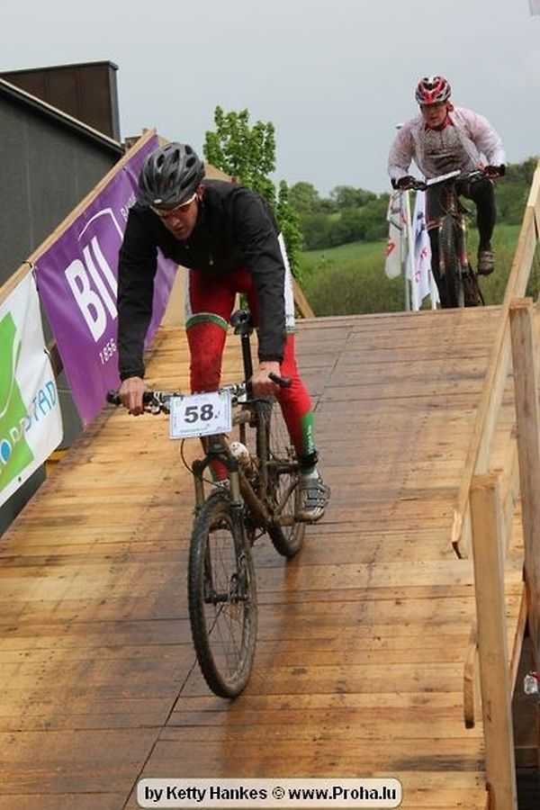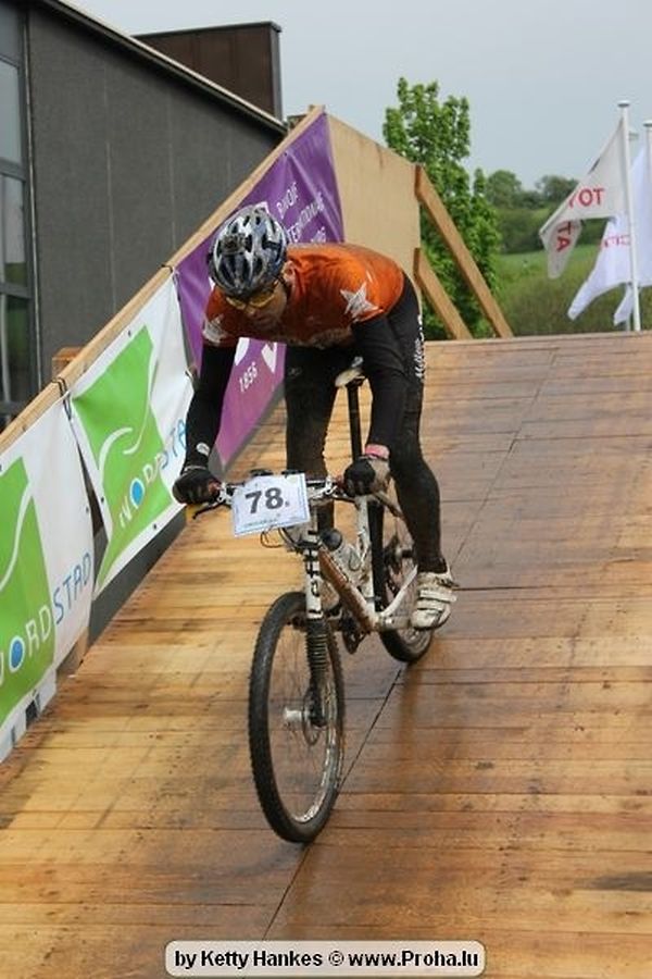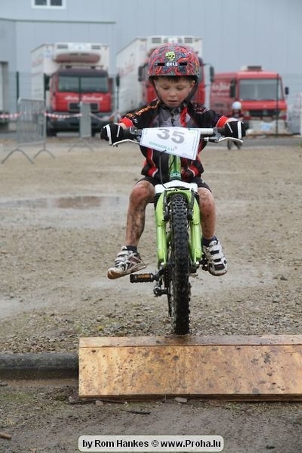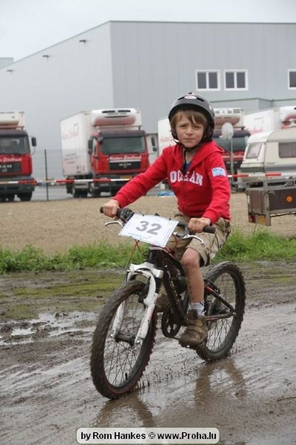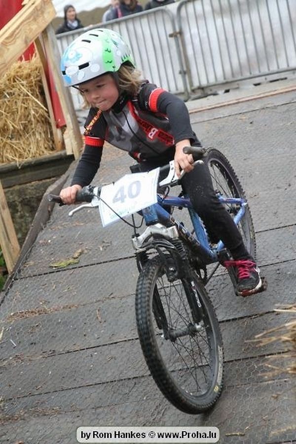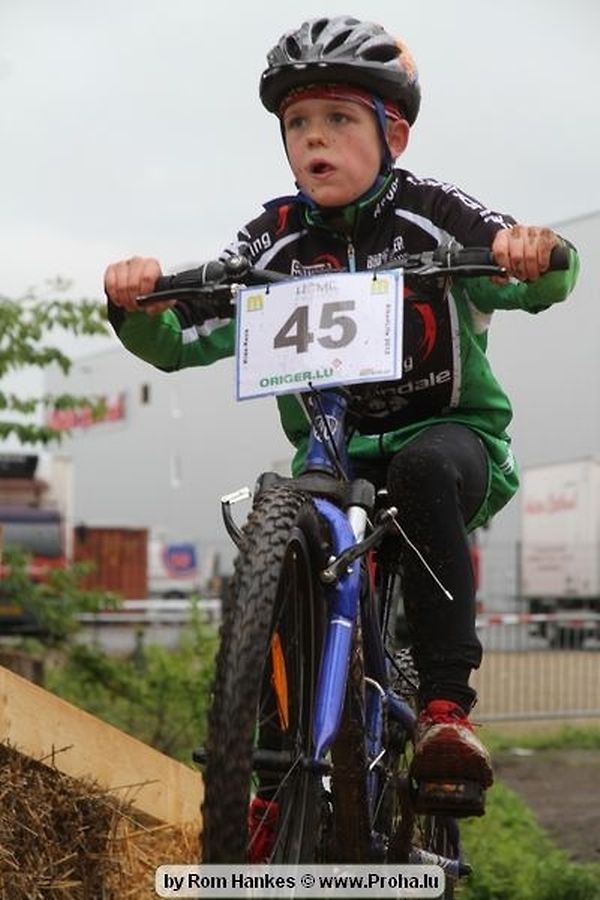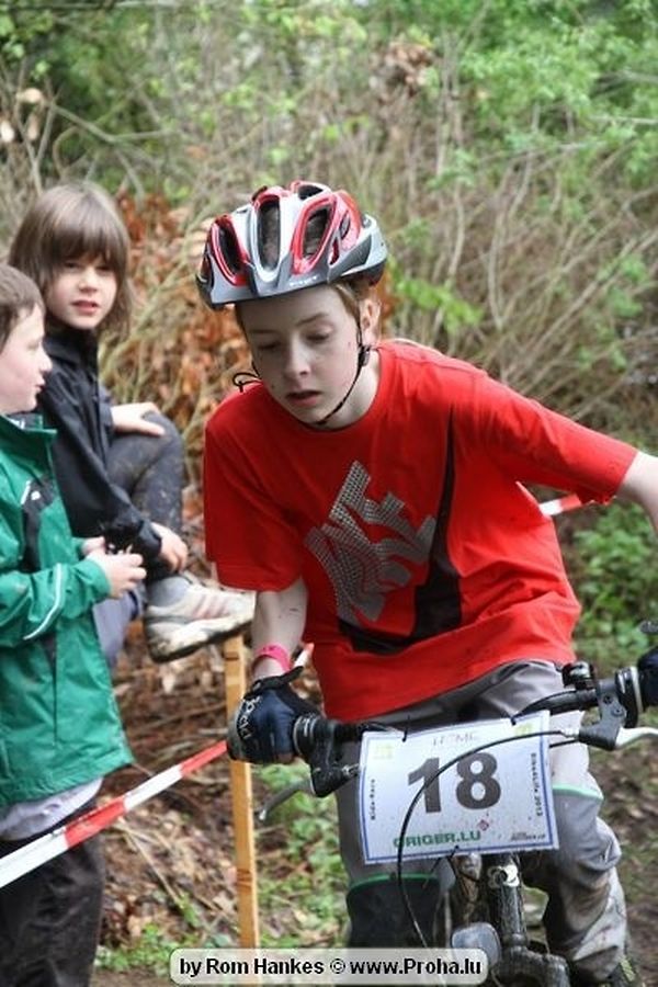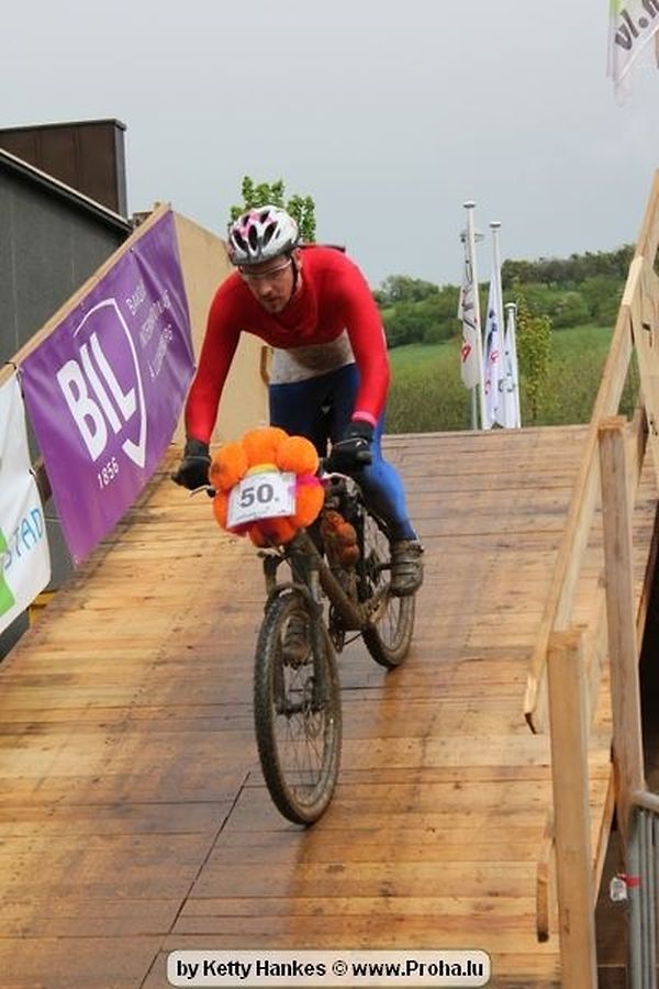 Den 5.mee war nees den Bike 4 Life dest Joer vir 4 Kéier, ausser datt Wieder net matgespillt huet war awer de Rest perfekt. Vir Iessen, Drenken an gut Stemmung war bestens gesuergt an wéi een et vun den Mennien gewinnt as huet déi ganz Organisatioun bis an de klengsten Détail geklappt. 58 Kanner waren bei de Kannercoursen um départ, 69 Teams an dorenner 13 Eenzelfuerer. En haarden Samsteg sollt op se duer komm wéi se den Départ bis gehol haaten. Moies sin d´Kanner mat vill Eifer an Spaass hier Ronnen gedréint och wann d´Wieder et net esou gutt mat hinnen gemengt huet, huet dat Kanner awer guer net gestéiert, si haaten hieren Spaass mat de Féiss duerch de Bulli ze fatzen oder mat den Turnschlappen an de Puddel ze sprangen. Me och déi, déi mam Velo do waren haaten net vill manner Spaass, et war e Genoss hinnen nozekuken wou se sech duerch de Bulli gedreckt hun an deen hinnen bis op den Helm gesprutzt huet. Si haaten hieren furri an d´Elteren hun se lanscht d´Steck richteg ungefeiert an motivéiert.