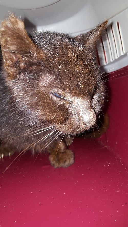 Hië muss scho laang ronderem lafen, an extrem schlechtem Zoustand, komplett ofgemoert an ausgedrechent, voll Parasiten.
