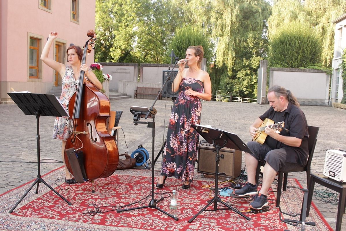 E flotten Owend hu mir gëschter mat eisem super Publik, eisen talentéierte Museker a natierlech mat perfektem Wieder am Kulturhuef um Sunset Unplugged verbruecht. D'Formatioun "Dreispiellos" hu mat hiren eenzegaartege Versioune vu Pop a Rock Lidder d'Léit begeeschtert. D'Equipe vum Bistro huet onermiddlech fir Erfrëschunge gesuergt, an d'Stëmmung ass vum Publik iwwerholl ginn. Allem an allem e perfekten Owend. Verpasst net de leschte Concert vu Sunset Unplugged, der Serie vu gratis Concert'en am Kulturhuef, nächste Mëttwoch 01.08. um 18:30 Auer am Kulturhuef zu Gréiwemaacher! Mir géingen eis freeën!