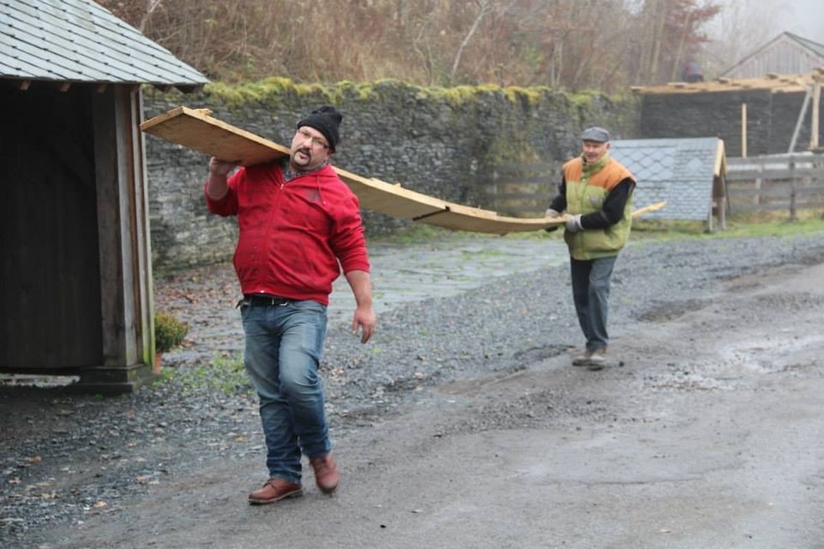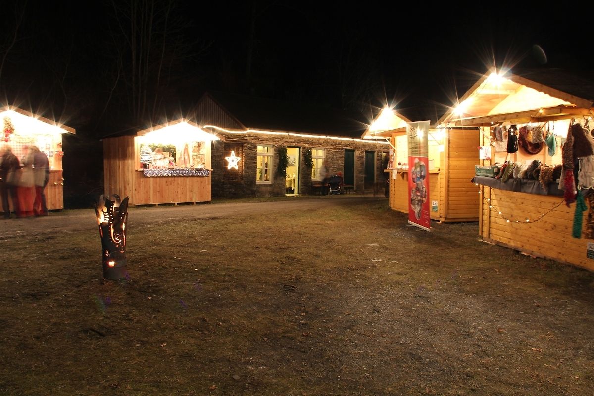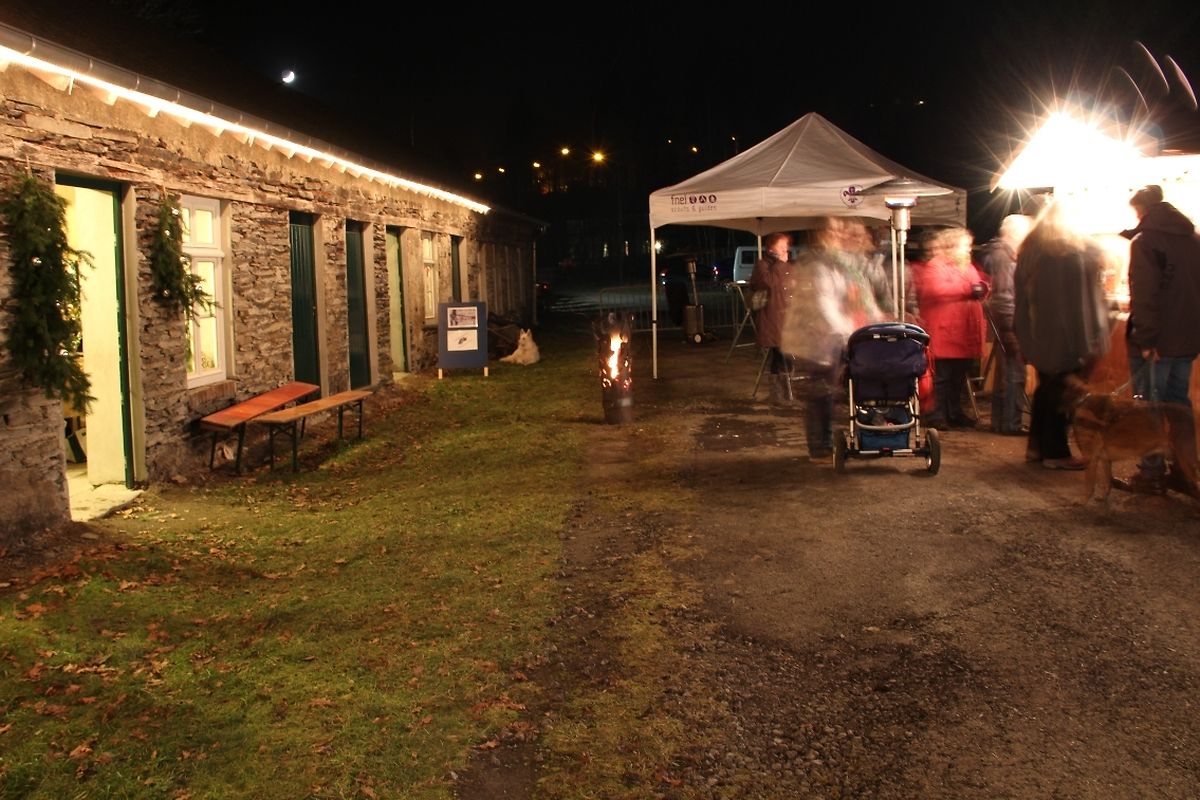Selbst gezimmerte, nordische Holzchalets, Lichterketten, geschmiedete Feuerzylinder, winterlich eingerichtete Werkstätte, Ausstellungstische, geschmückte Tannenbäume ... Unter den geschickten Handgriffen vieler freiwilliger Helferlein verändert sich in diesen Tagen das Bild des Schiefermuseums Haut-Martelange zum zweiten Mal in wenigen Monaten. Die Kulissen für den Film Colonia Dignidad sind eben erst abgetragen und schon heißt es Bühne frei für die zweite Ausgabe des Weihnachtsmarktes in den früheren Schiefergruben.