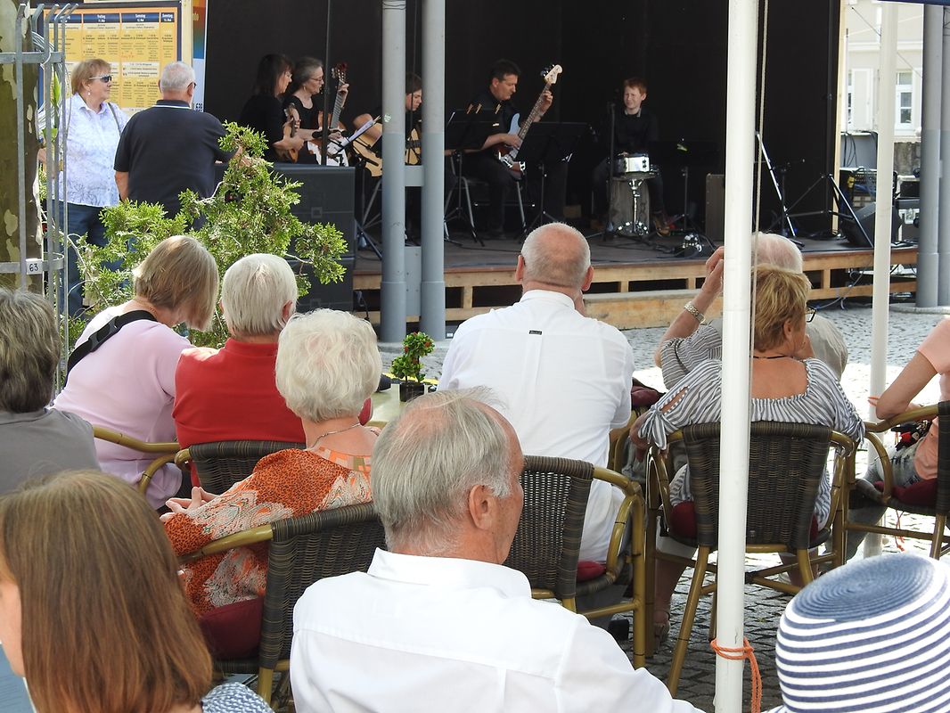 Luxemburg war bei diesem Festival mit zwei Ensembles vertreten: das Luxembourg Mandolin and Guitar Ensemble und das Musikensemble Divertimento aus Heffingen. Das 45 minütige Programm, bestehend aus Arrangements der Dirigentin und Präsidentin des Ensembles Isabelle Merlevede, fand grossen Anklang bei den zahlreichen Zuhörern, die bei herrlichem Sommerwetter vor der Open-Air Bühne in der Fussgängerzone die gekonnten Darbietungen mit viel Applaus quittierten. Grossen Anspruch fanden insbesondere El Condor Pasa, Marry You, Flasdance, Let Your Love Flow, Fernando, Lambada, Perfect, Suspicious Minds, Chiquitita, Pretty Woman. Ein Programm, das optimal auf das internationale Publikum angepasst war.
