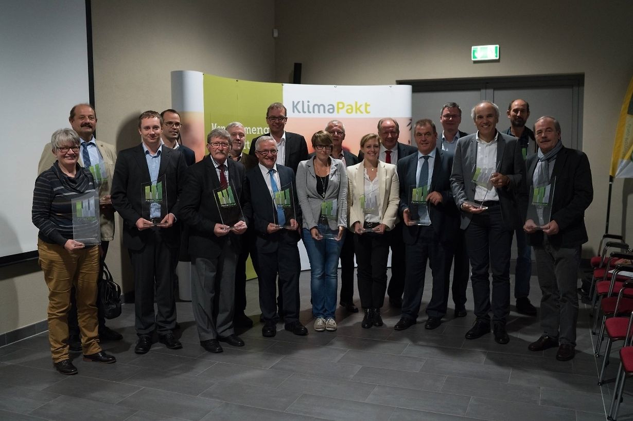 Am 14. Oktober 2015 organisierte myenergy zusammen mit dem Ministerium für nachhaltige Entwicklung und Infrastrukturen und dem Gemeindesyndikat Naturpark Our eine feierliche Überreichung der Klimapakt Zertifizierungen für die Gemeinden, die seit Mai 2015 erfolgreich auditiert wurden. Der Staatssekretär für nachhaltige Entwicklung und Infrastrukturen, Camille Gira, überreichte in den Räumlichkeiten des Naturpark Our die Zertifizierungen an 16 Gemein-den, so dass nun insgesamt 42 Gemeinden zertifiziert werden konnten. Erstmalig wurden in Luxemburg auch vier Gemeinden mit dem European Energy Award® Gold ausgezeichnet. Hierbei handelt es sich um die Gemeinden Beckerich, Parc Hosingen, Tandel und Schifflange.