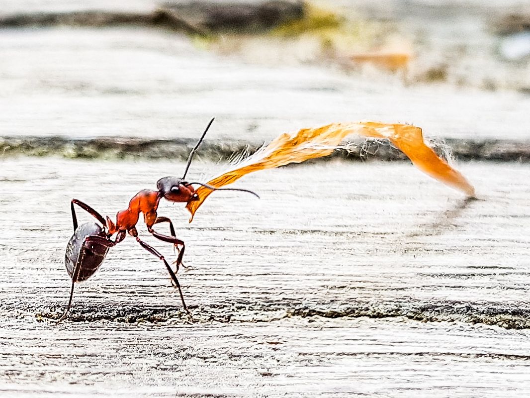 I followed this little fella, with my mobile phone, from when he picked up the straw until reaching the antmill. There was a lot of hurdles along the way like major cracks in the road, robbers trying to steal the straw but also ants who kept company along the way.