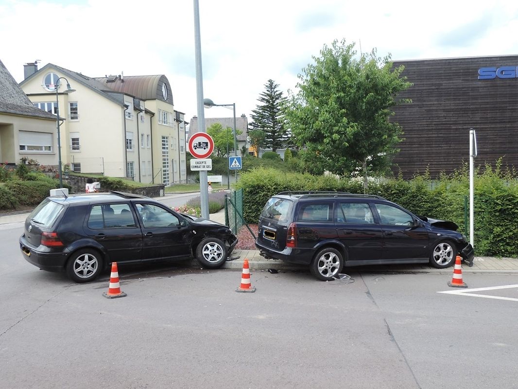 Zu einem Verkehrsunfall kam es heute Mittagg gegen um 15:00 Uhr in Junglinster in der rue Rahm. Ein PKW Fahrer hatte ein Vorfahrtszeichen missachtet und stiess gegen ein anderes Fahrzeug. Durch die Wucht des Aufpralls wurden die Fahrzeuge stark beschädigt. Ebenfalls wurde ein Lichtmast so stark in Mitleidenschaft gezogen, das er von der Feuerwehr abgeschnitten werdne musste, da dieser umzustürzen drohte.