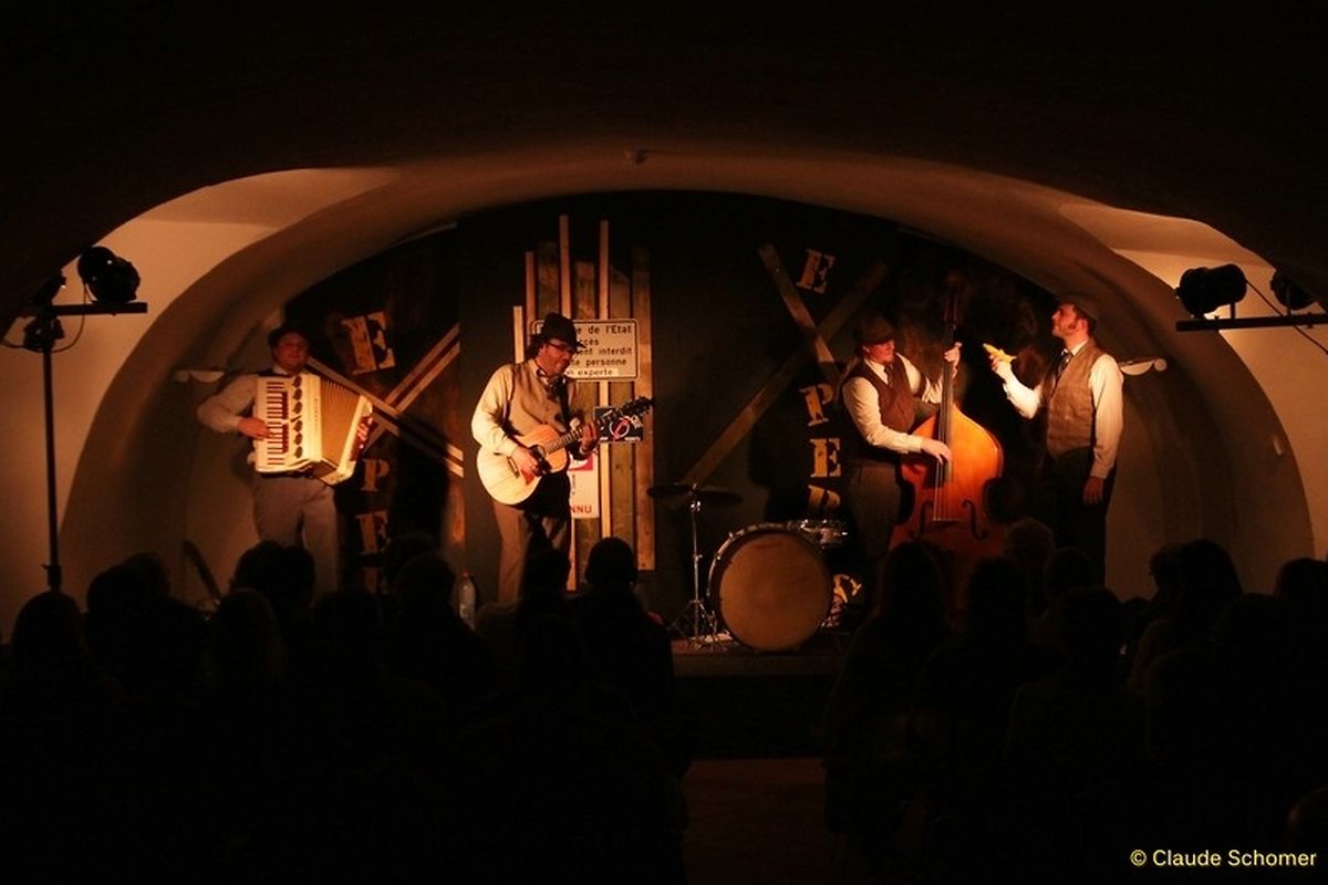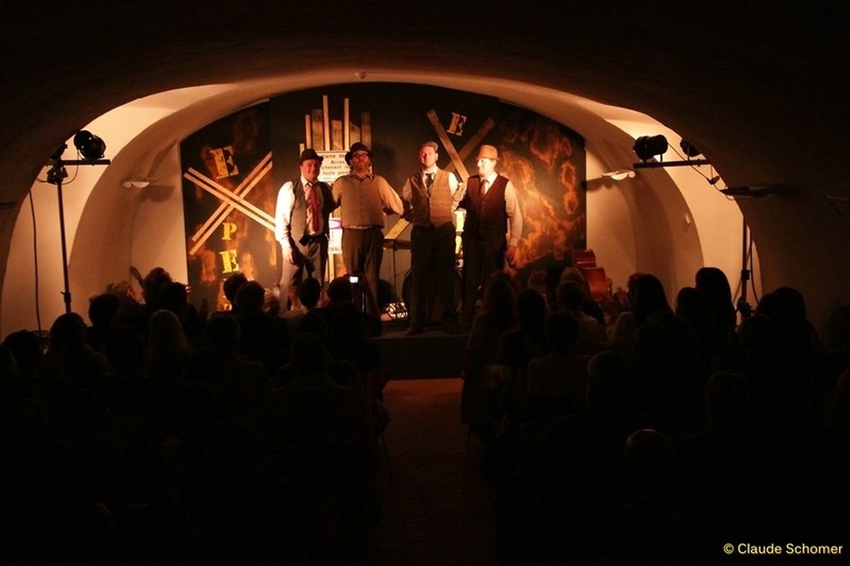 Alte Kellergewölbe vermitteln oft etwas Beklemmendes, Bedrohliches. Sie lassen erschaudern, beim geringsten Geräusch zusammenzucken, während das Auge verzweifelt im Halbdunkel etwas zu erkennen sucht, und man seinem Begleiter höchstens hastig im heiseren Flüsterton ein paar Worte zuwirft. Anders jedoch am letzten Freitag (19.10) im Literaturkeller des Nationalen Literaturzentrums in Mersch. Hier herrschten ausgelassene Stimmung und vergnügliches Gelächter vor, denn an eben diesen Ort hatte es niemand Geringeren als Serge Tonnar und Legotrip auf ihrer „Bopebistro“-Tour verschlagen.