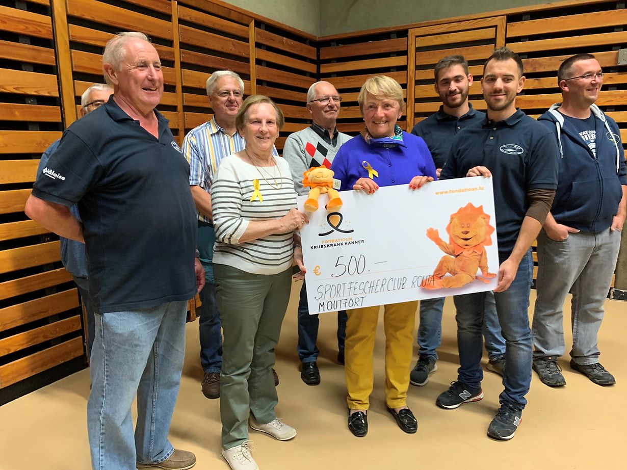 Moutfort Sports Fëscherclub Routa Moutfort spend 500.-€ un Fondatioun Kriibskrank Kanner Lydie Lenz Veröffentlicht am Mittwoch, 16. Oktober 2019 um 11:55 Mutfort, Luxemburg De Sports Fëscherclub Routa vun Moutfort huet eng Kollekte vun 500.- op hirem Fest gesammelt. Dëst Geld hunn sie der Fondatioun Kriibskrank Kanner gespend. Unpassenden Inhalt angeben Weitere Neuigkeiten von Lydie Lenz > Sangen fir den gudden Zweck 22.07.21 Mamer LHCE spend 1.000€ fir d'Fondatioun Kriibskrank Kanner 08.07.21 Esch/Alzette Once upon a knot spend 500.-€ un d'Fondatioun Kriibskrank Kanner 15.06.21 Strassen Vide Dressing by Sandy Colmant spend 316.-€ un d'Fondatioun Kriibskrank Kanner 15.06.21 Strassen The Happy Man Project iwwerreecht ee Scheck un d'Fondatioun Kriibskrank Kanner 29.04.21 Echternach
