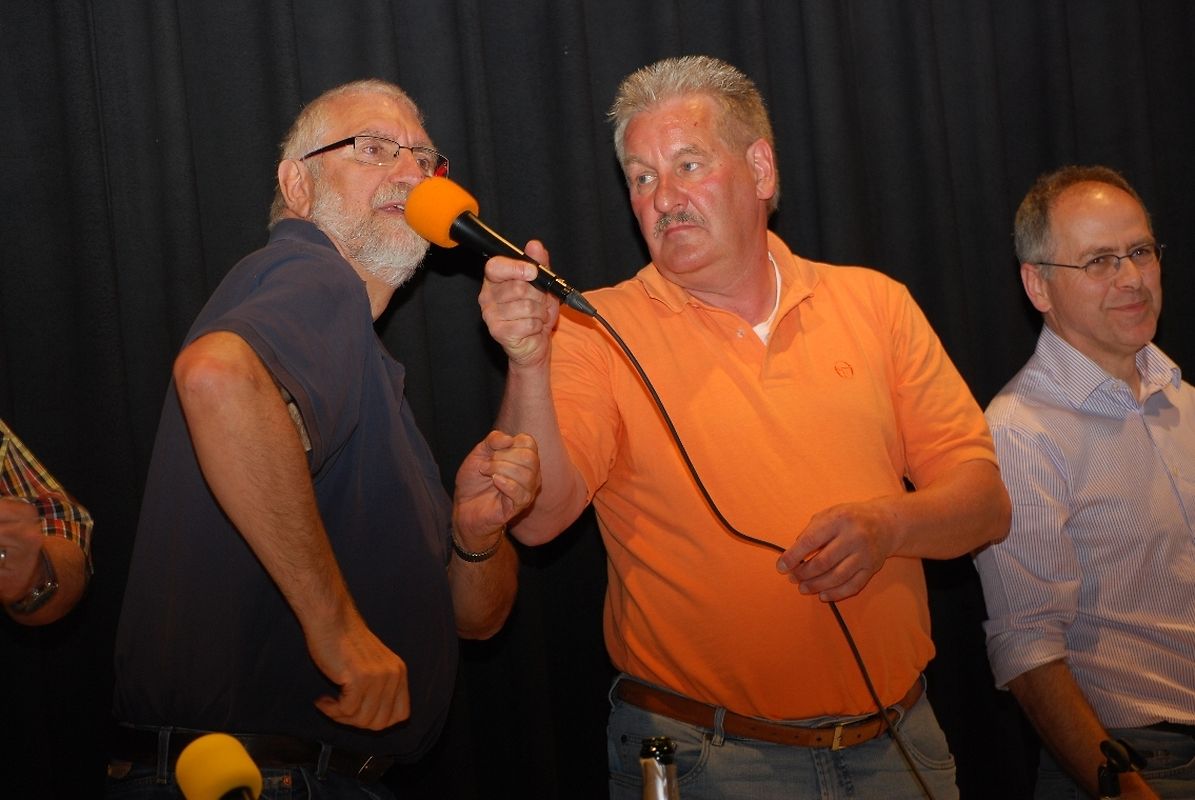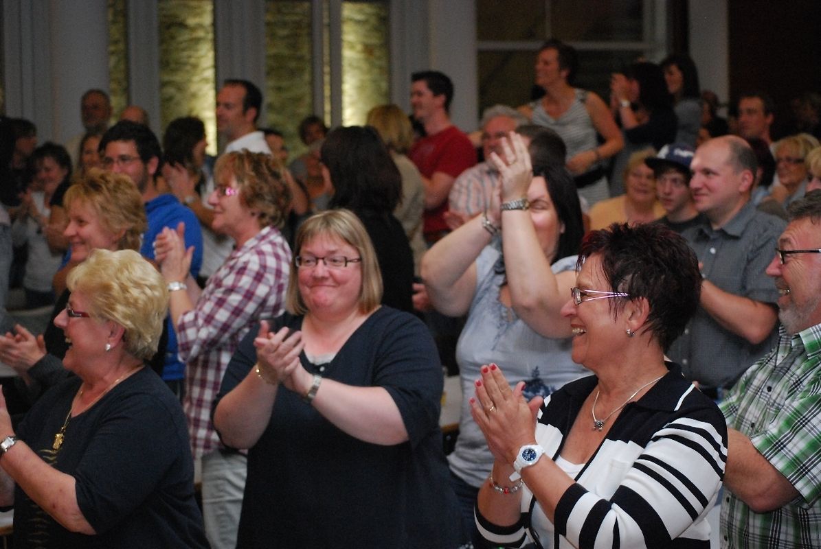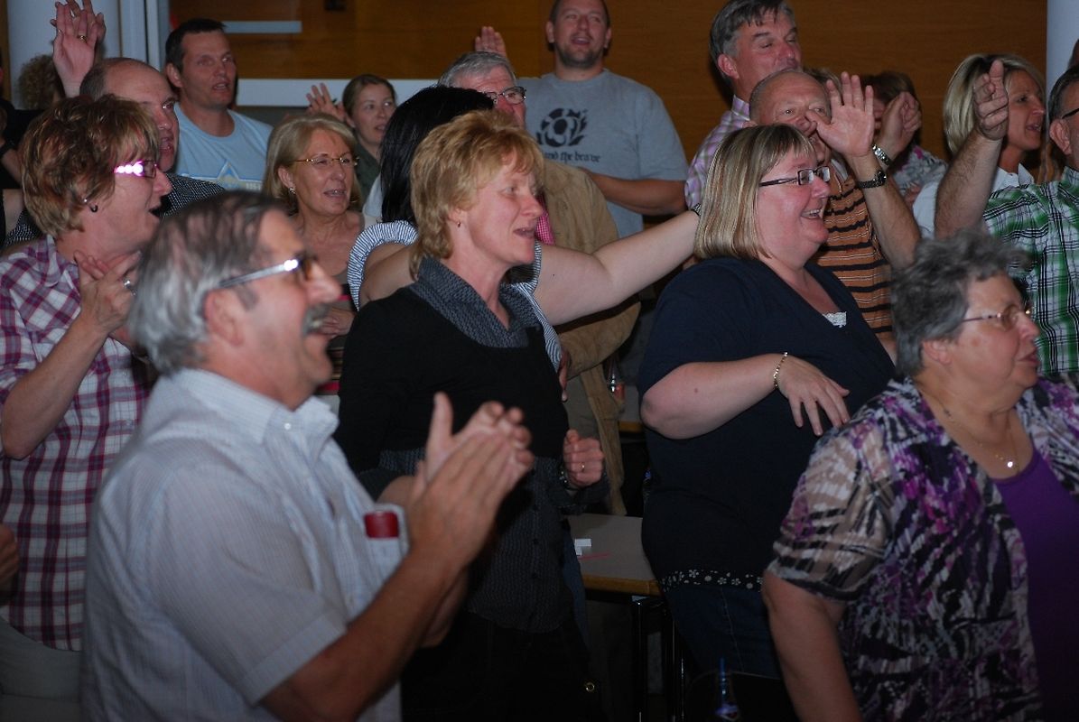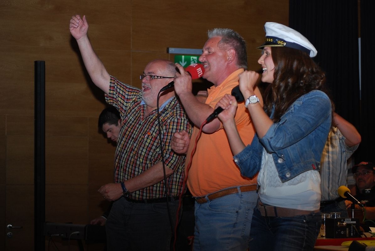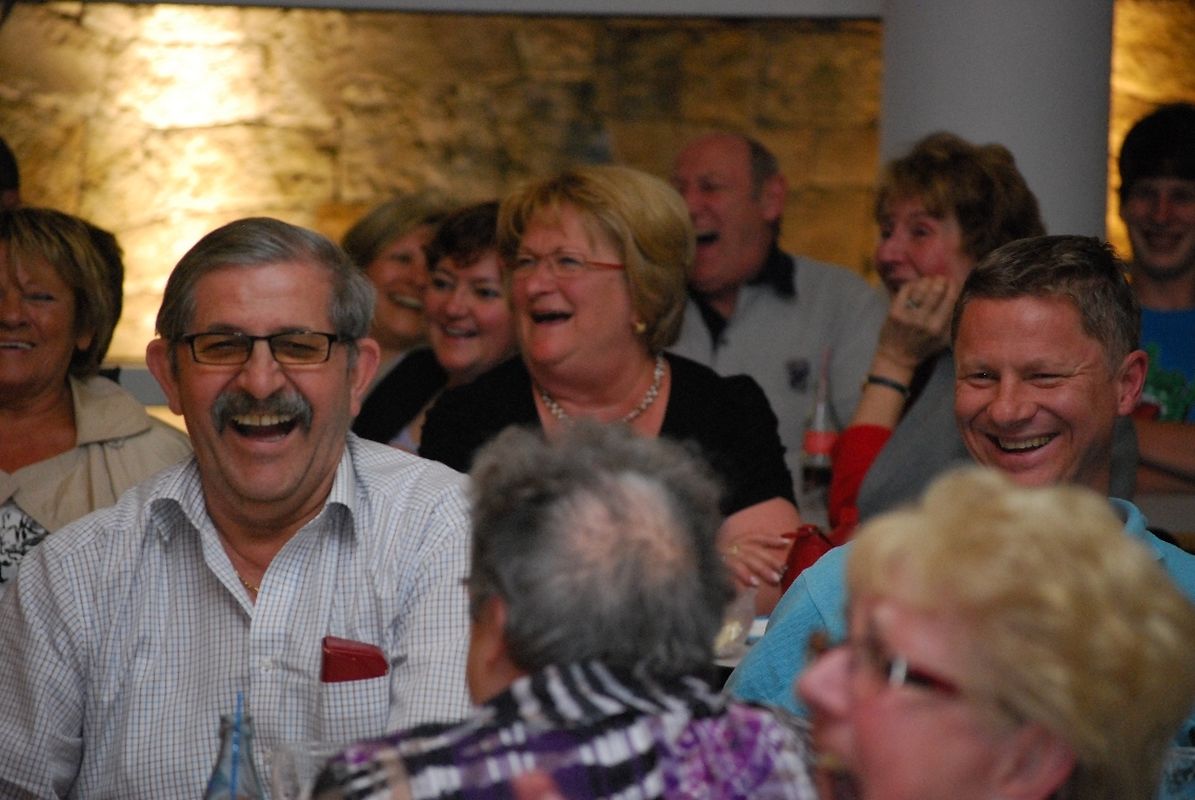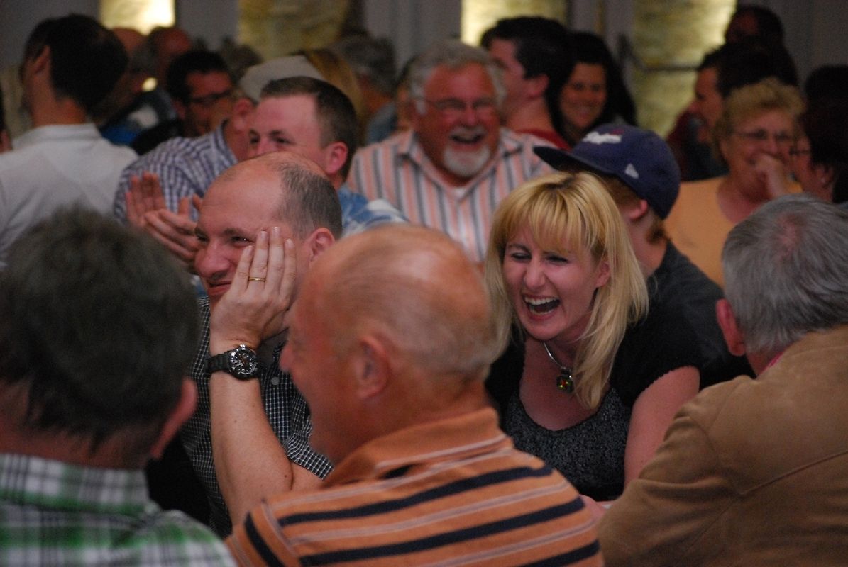 "Vill Witzer, blöd Sprëch, gescheit Froën an domm Äntwerten" , dat ass den Déckkäpp hire Leedsaz an d'Leit am Sall konnten sech dovun iwwerzeegen. Et gouf geschmunzelt, de Kapp gerëselt, gestaunt, gelaacht, gesongen a gedanzt.