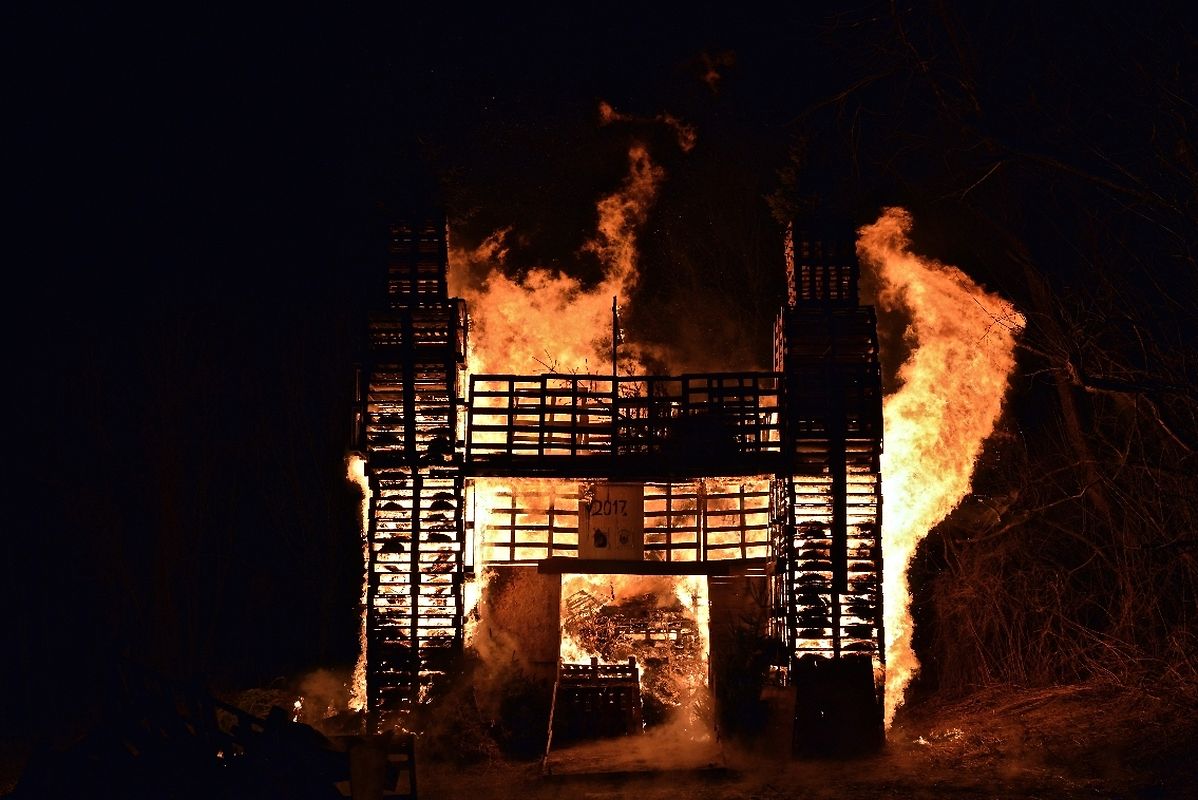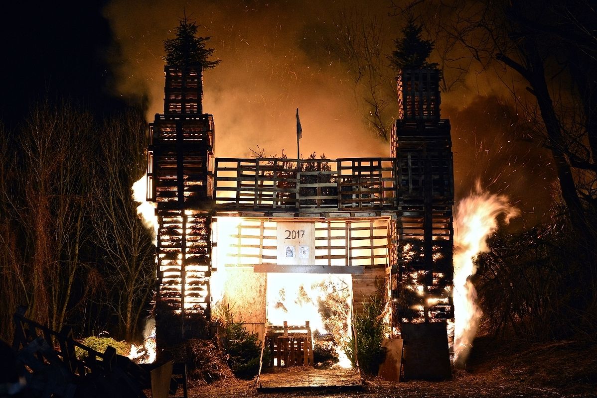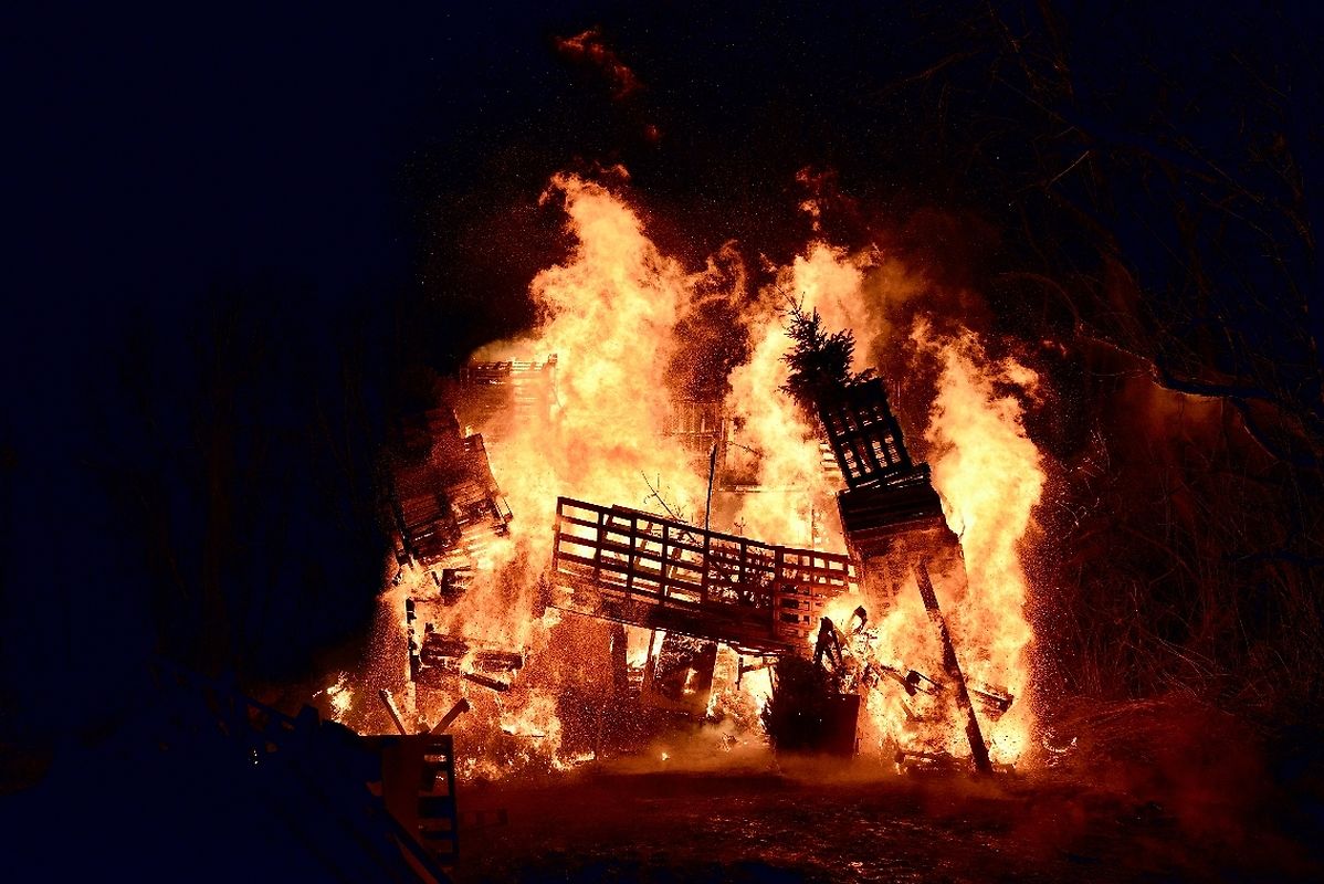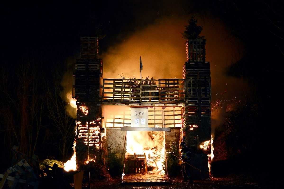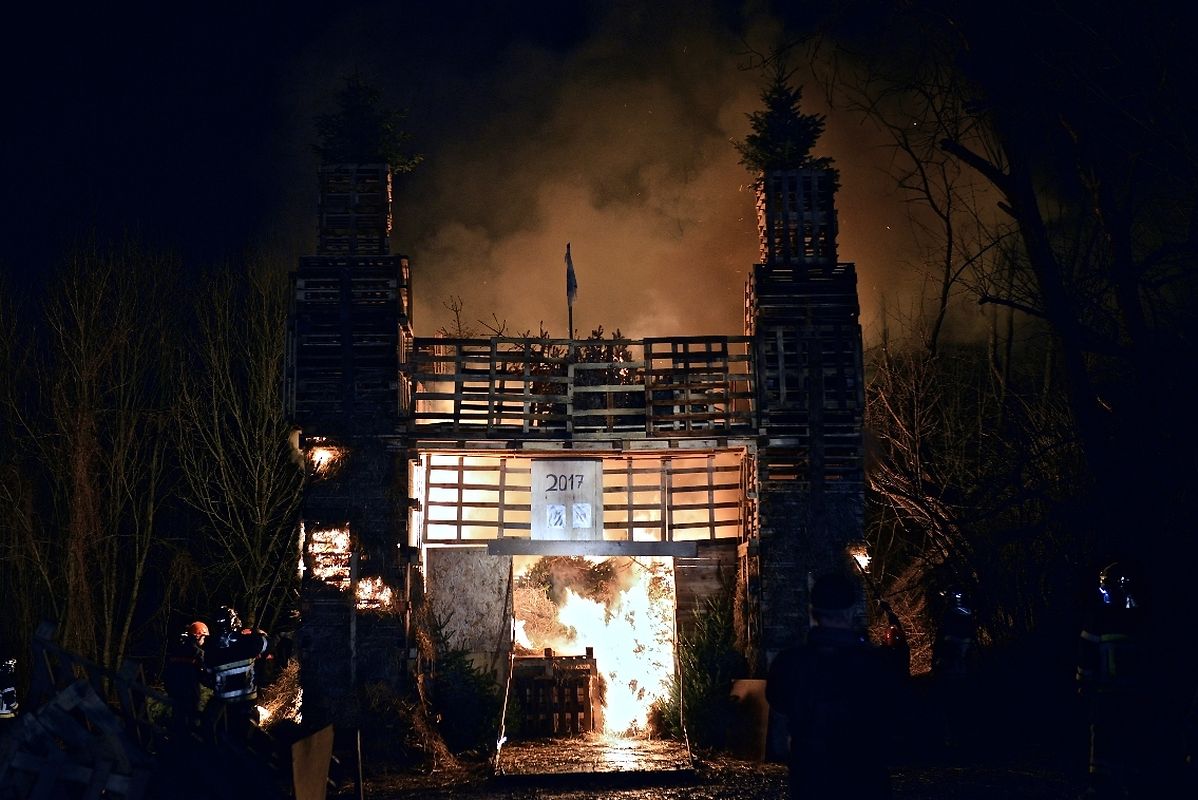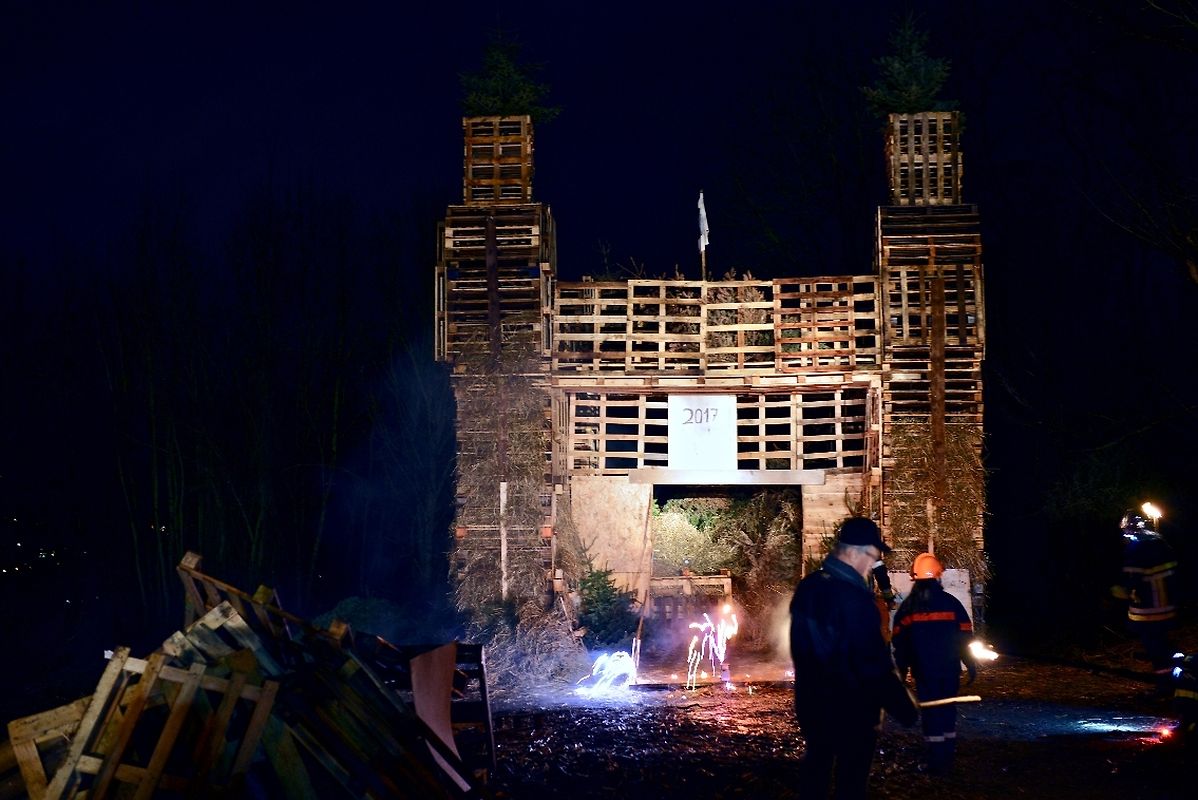 Traditionnel fir den Wanter an di beis Gëschter ze verdreiwen gouf dest Joër ennert der Leedung vum Commandant Jérôme Kayser eng Buerg a Plaaz vun engem Kräiz ugefaangen, encadreiert matt fräiem Gedrënks vun den localen Pomjëen.