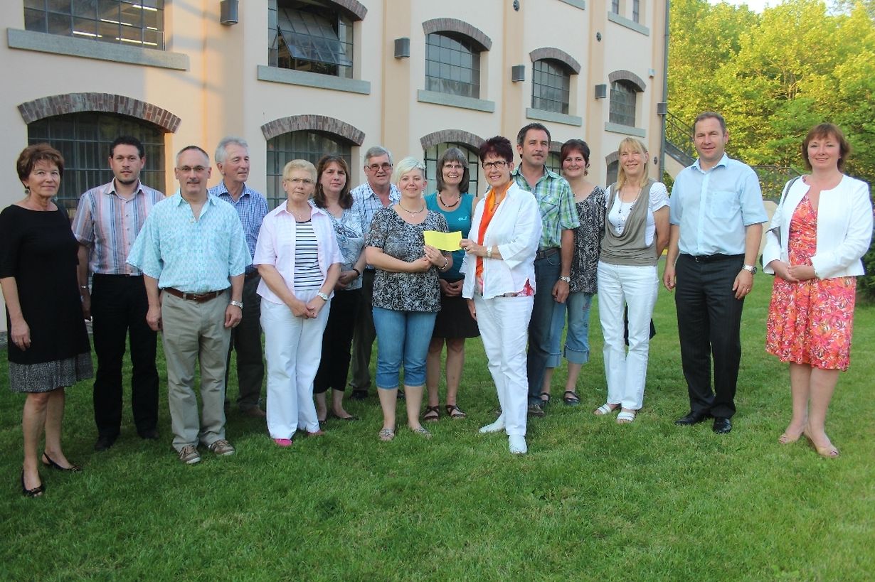 Den 26.ten Juli hate sech an der „Aler Schmelz“ zu Stengefort d’Hobbykënschtler ëm d’Chantal Clemen, zesumme mat den Vertrieder vun der Gemeng, un hierer Spëtzt den Här Buergermeeschter Jean-Marie WIRTH afond, fir an enger klenger sympathescher Feier ee Scheck vun 700 € un de Vertrieder vun „Île aux clowns“ ze iwwerreechen.