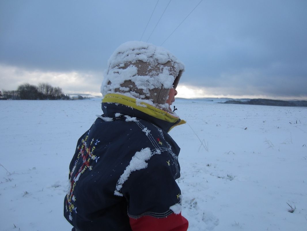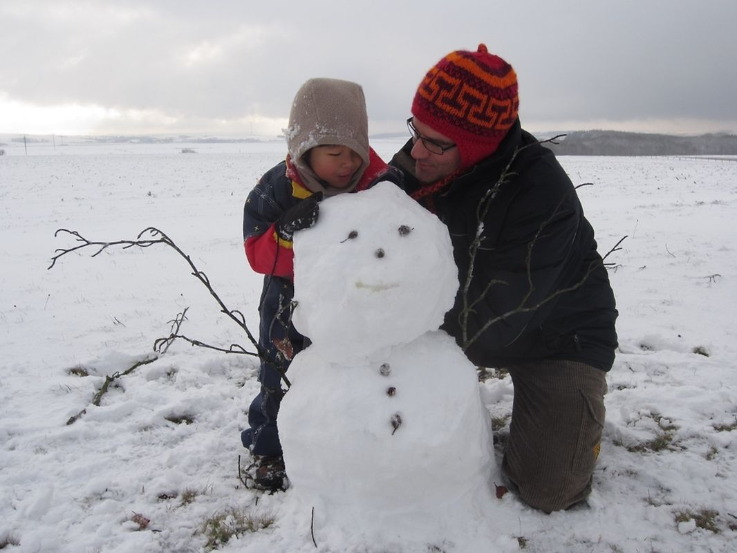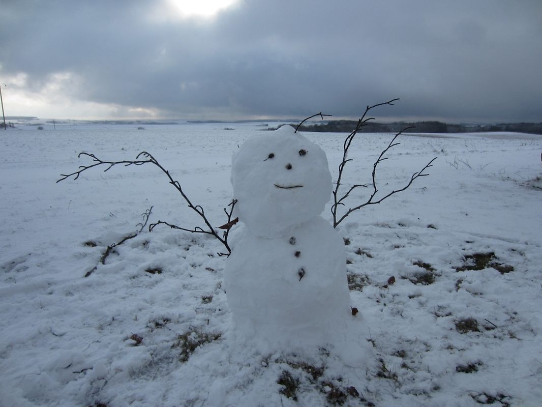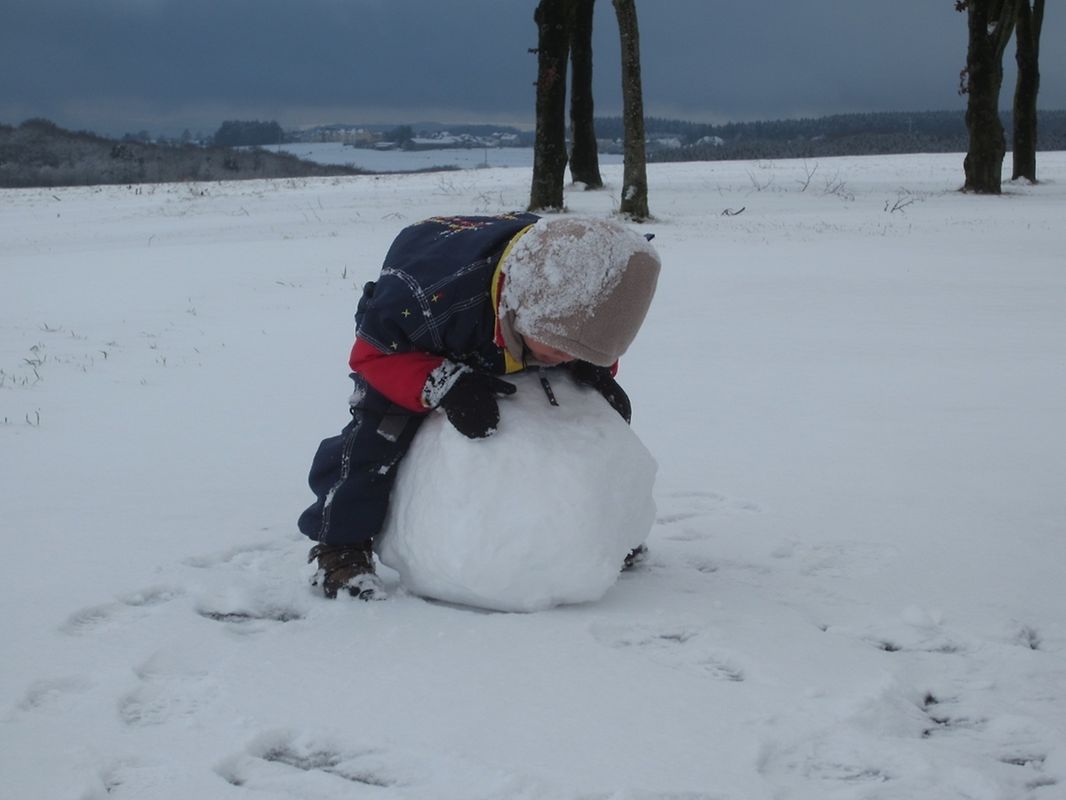 Angespornt von dem Artikel "Ab Hoscheid nur noch Schnee" eines mywort-Leserreporters (siehe Verknüpfung unten) fuhr auch ich an diesem Sonntag Morgen mit Kind und Kegel in Richtung Norden, und suchte mir ein nettes Plätzchen aus, um zusammen mit Sohnemann Simon einen lustigen Schneemann entstehen zu lassen. Gefunden haben wir das Plätzchen in Wahlhausen neben einem Trinkwasserreservoir, also auf einer echten Éislecker Kopp, wo es denn auch kalt und windig war. Unser Schneemann trotzt nun dort den Naturgewalten, und sofern es nicht allzu schnell auftauen wird, könnte der dickbauchige Mann aus gefrorenem Wasser eventuell bis Weihnachten hier ausharren.