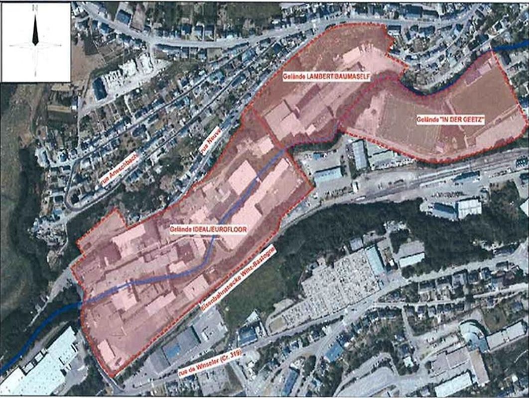 Les terrains concernés, « In der Geetz », « Lambert/Baumaself » et « Eurofloor », sont situés le long de la Wiltz et proches du centre historique de la Ville.