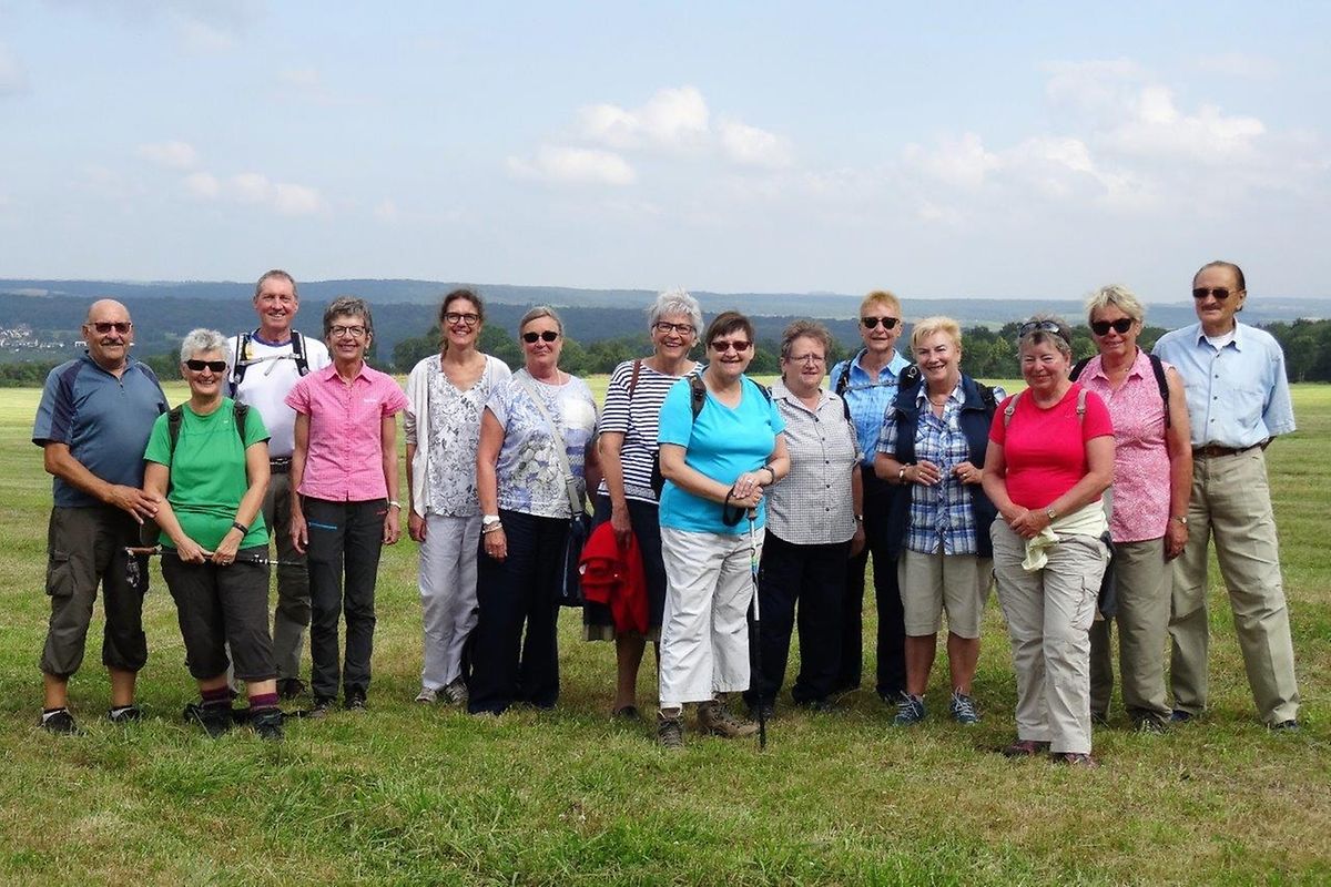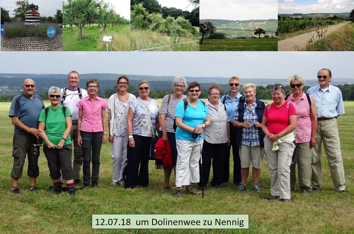 Die von Nicole, Vertreterin vom“ Muselheem“, geführte Wanderung startete unterhalb von Schloss Berg, am Eingang des Renaissancegartens in Nennig. Auf einem asphaltierten Weg ging es leicht bergauf an weiten Wiesen und Rebstöcken vorbei, bis zu einer Bank, von der man einen wunderschönen Ausbllick auf das Moseltal mit Primerbierg, Scheierbierg usw.hat. Der schattige Lateswald, indem vorgeschichtliche Hügelgräber erhalten sind; morastige Einsturzdolinen; sprudelnde Karstquellen und verwitterte Steine aus der Römerzeit, warten am Wegesrand. Der Dolinenweg führte uns außerdem durch weite Streuobstwiesen, fruchtbare Felder und längst den Kreuzweg. Erbaut wurden die 14 Kreuzwegstationen im Jahr 1866 als Dank für die Verschonung der Pfarrei Nennig vor der Cholera. Der Dolinenweg führt zurück ins Kirchdorf Nennig. In schöner Ambiente und Atmosphäre, einer kleinen aber feinen Speise- und Weinkarte, hatten alle rundum einen gelungenen kulturellen und kulinarischen Tag.