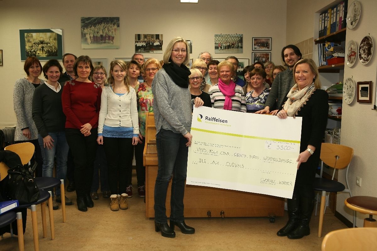 Gëschter Owend huet de Wormer Gesang, am Kader vun enger klénger Feier, der Mme Joëlle Golinski, Coordinatrice vun der Associatioun Île aux clowns e Scheck iwwer